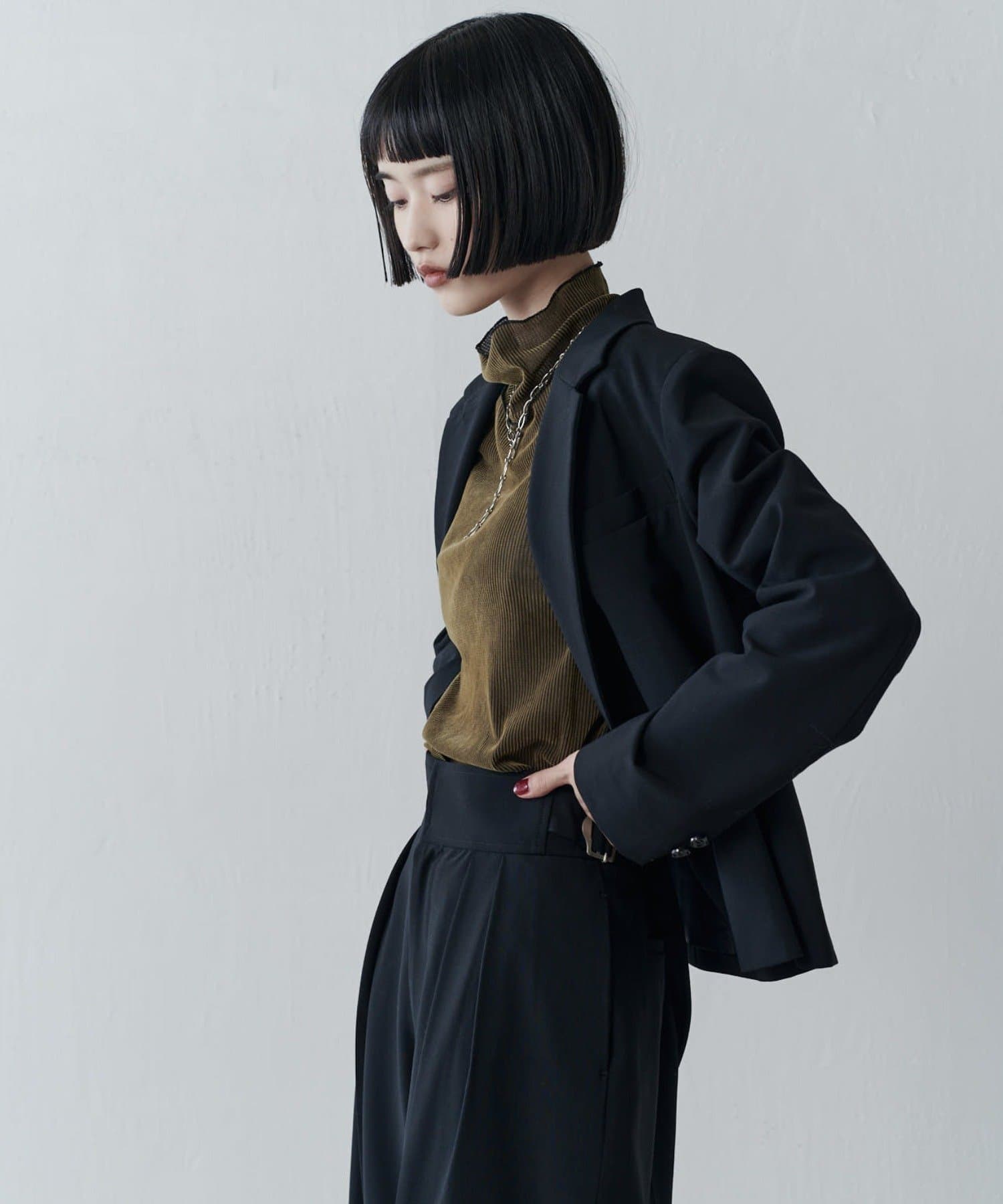 凛とした芯のある女性。 自立した、女性のワードローブをイメージ。洗練されたかっこよさの中に、女性らしさ・かわいさ・セクシーさを持つ。自分自身のスタイル(自分らしさ・個性・生き方・感覚...)を表現できるひとつの手段としての服。肩肘張らない、心地よいリラックス感のあるスタイルを上質な素材、優雅なシルエットで提案。