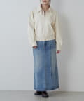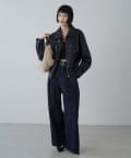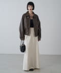ヴィンテージ感のある生地感ながら滑らかで柔らかく、ハードになりすぎないのでレディライクな印象に。