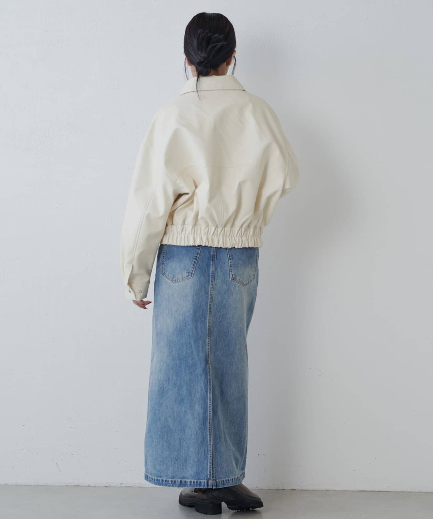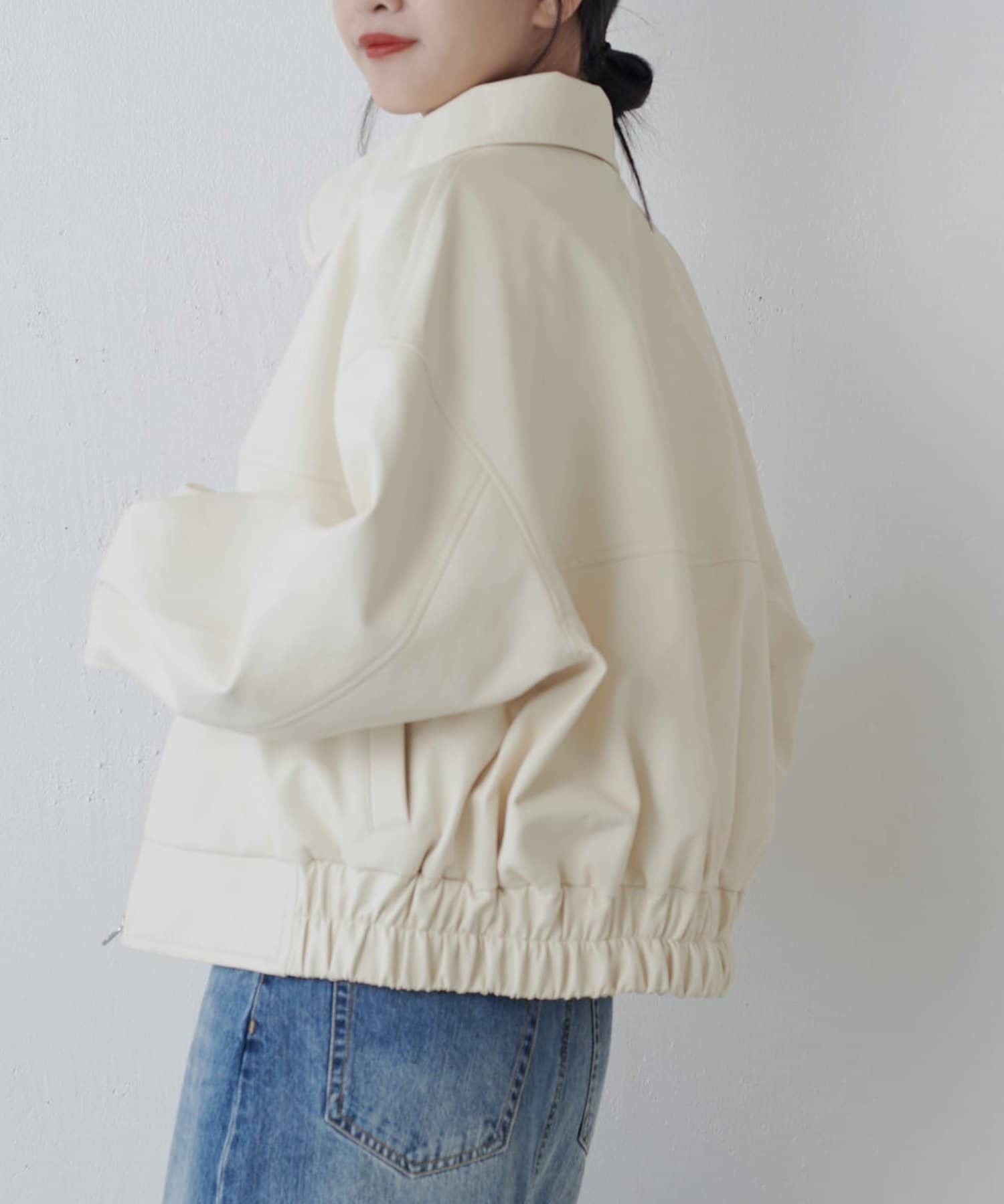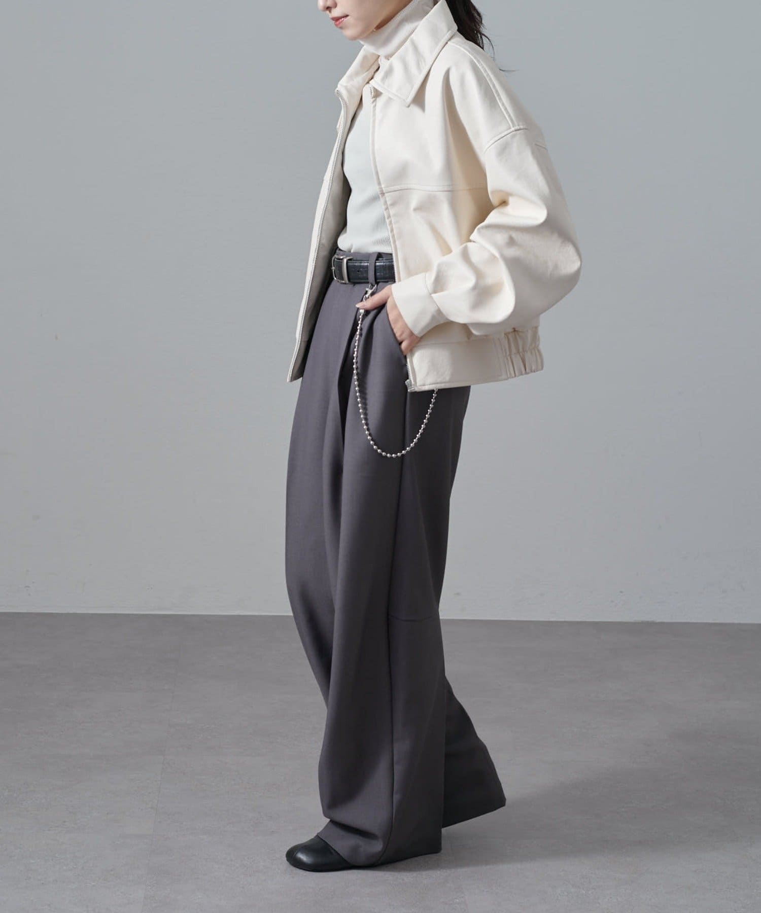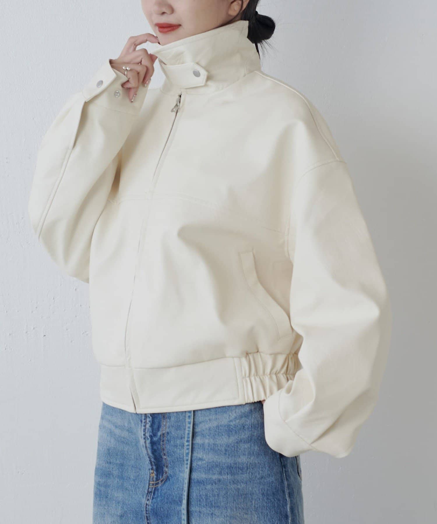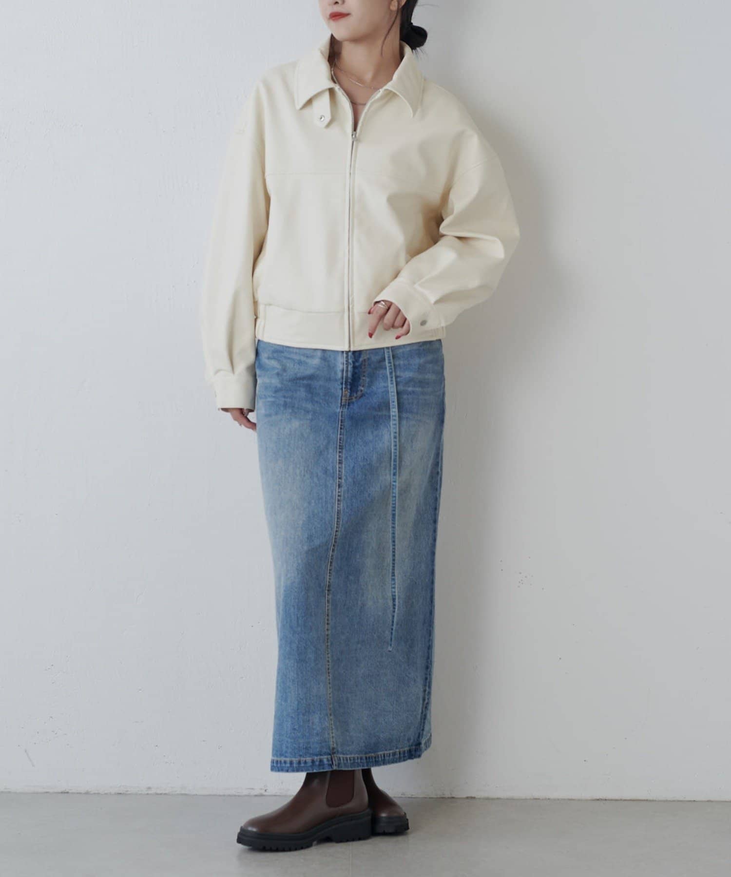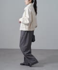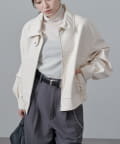 襟を立ててハイネックにして着ることもできますし、前開けでサラッと羽織るこなれ感ある着方も◎