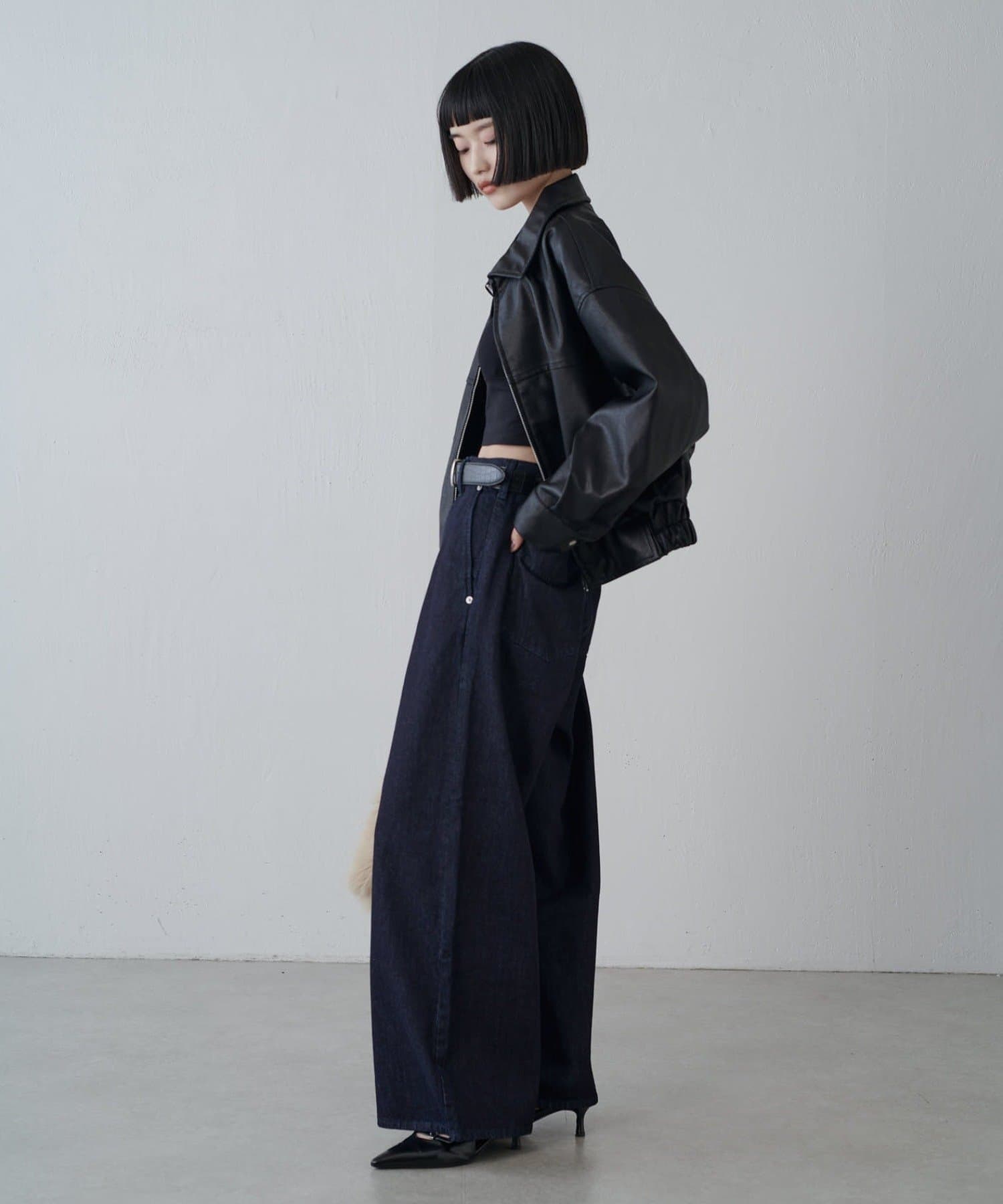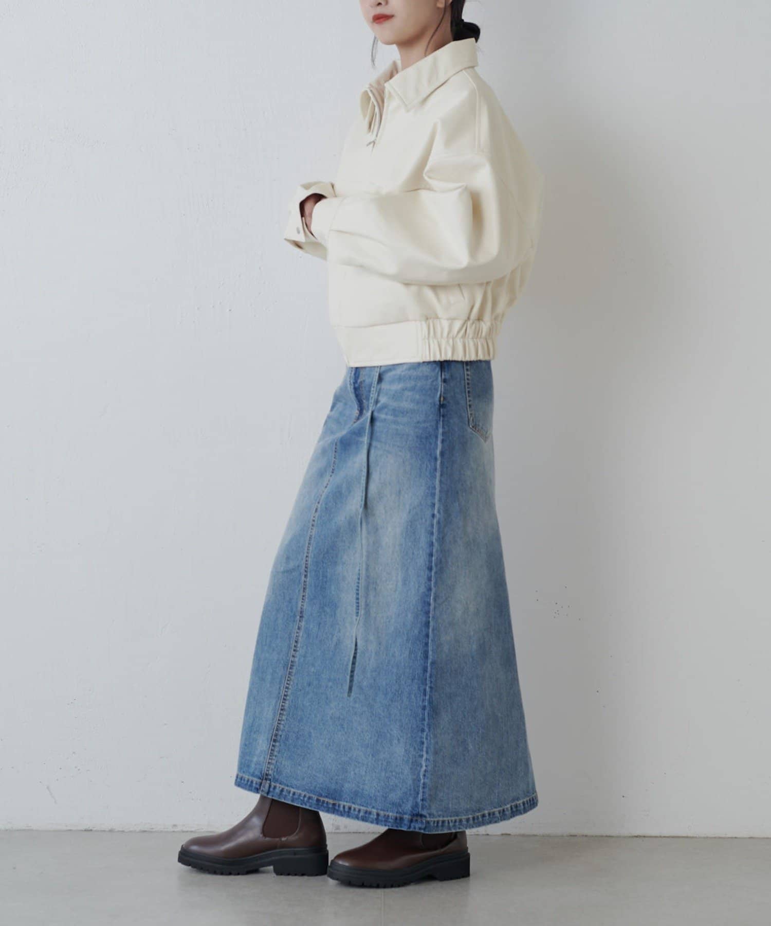 あえてフェミニンなボトムやインナーに合わせて甘辛なスタイリングにするのも◎