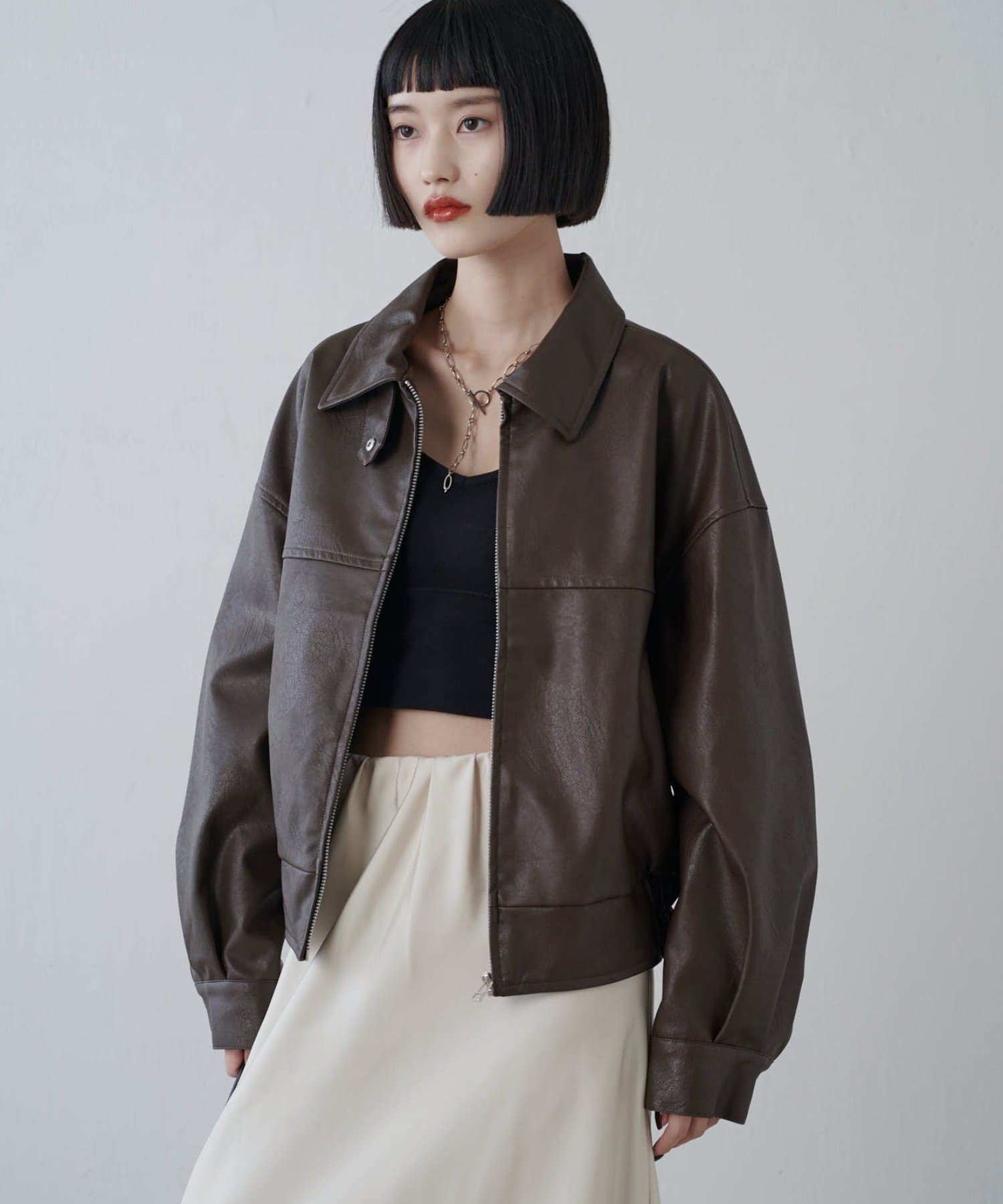 今季もトレンド間違いなしのヴィンテージライクなレザーブルゾン。