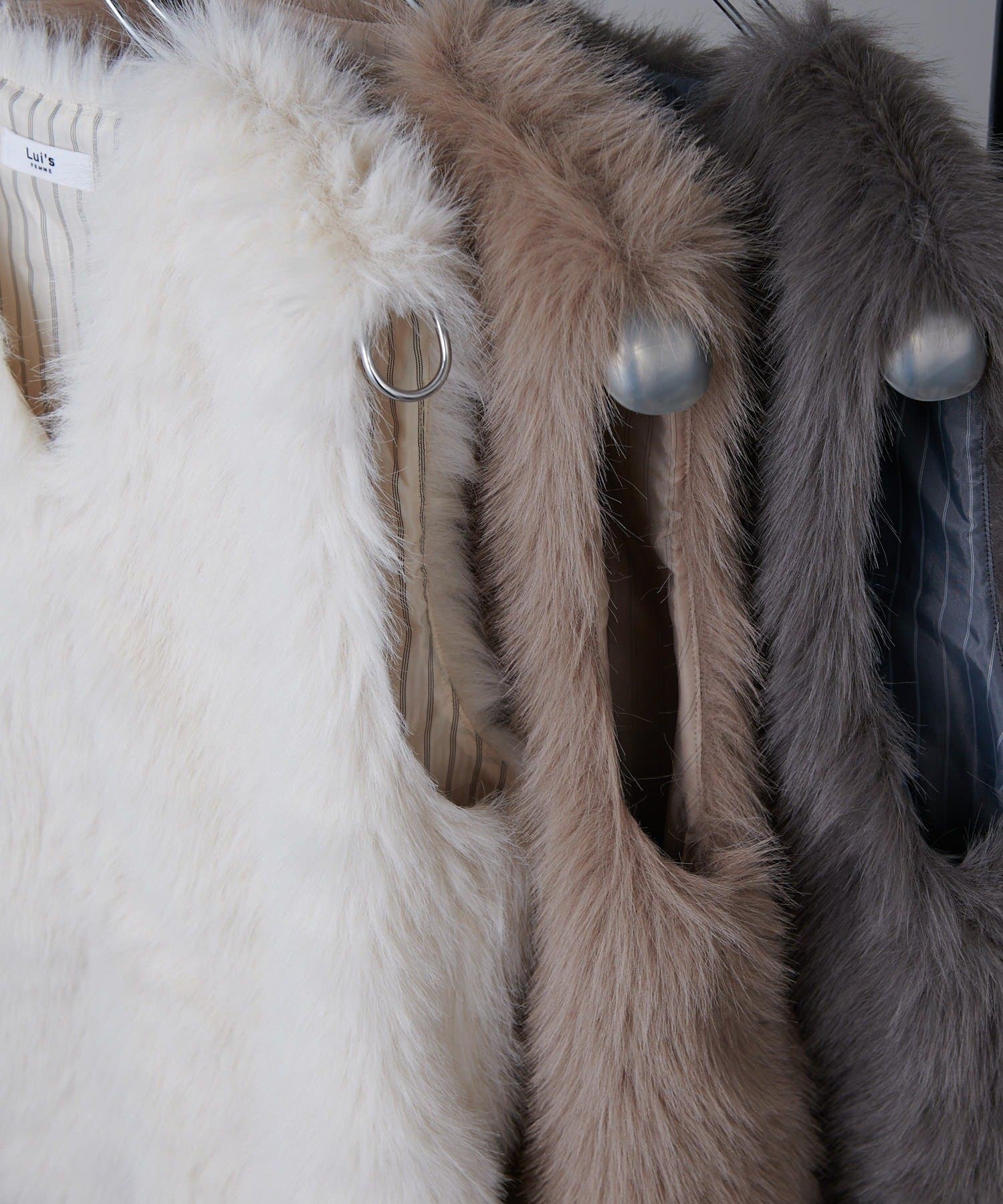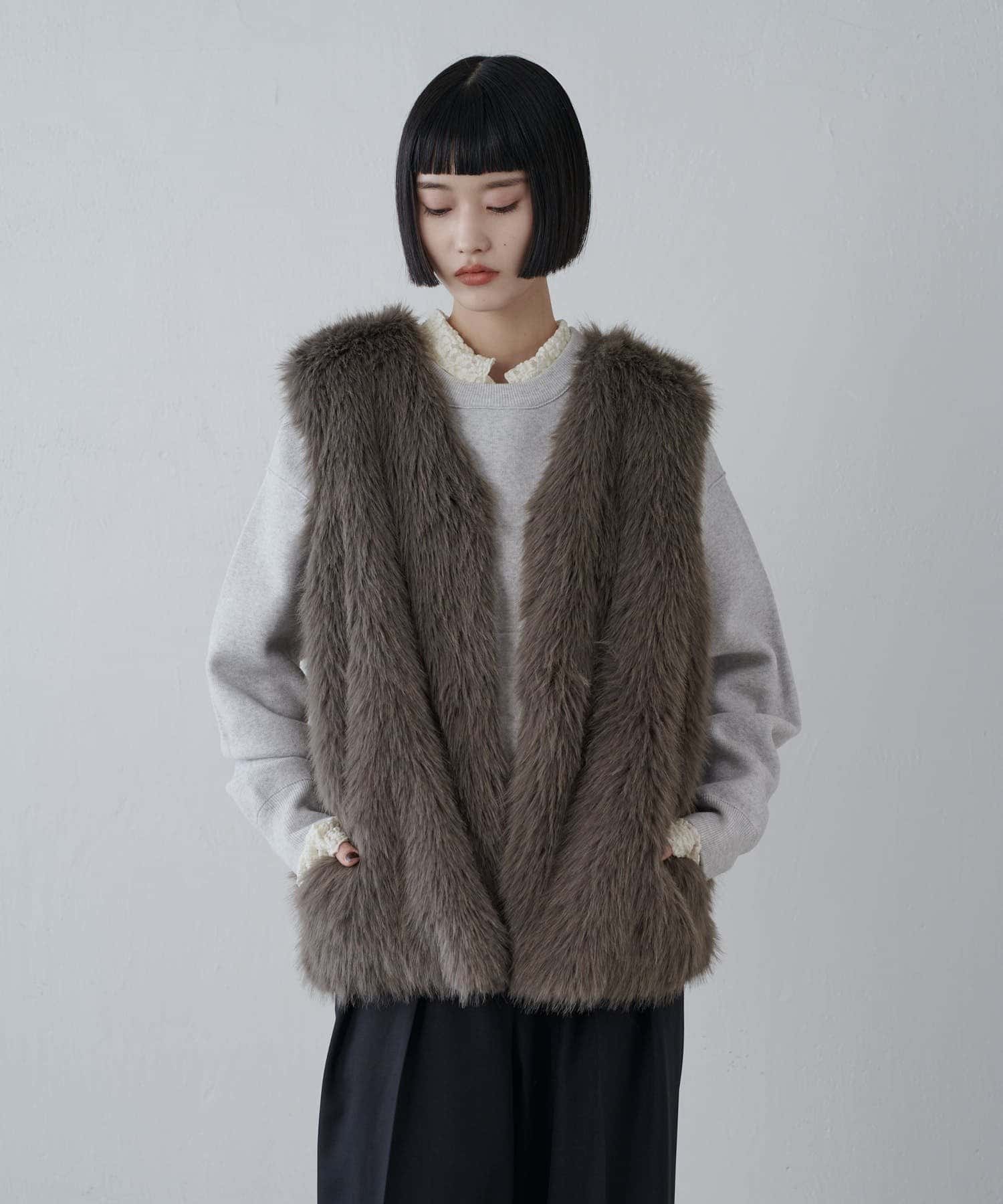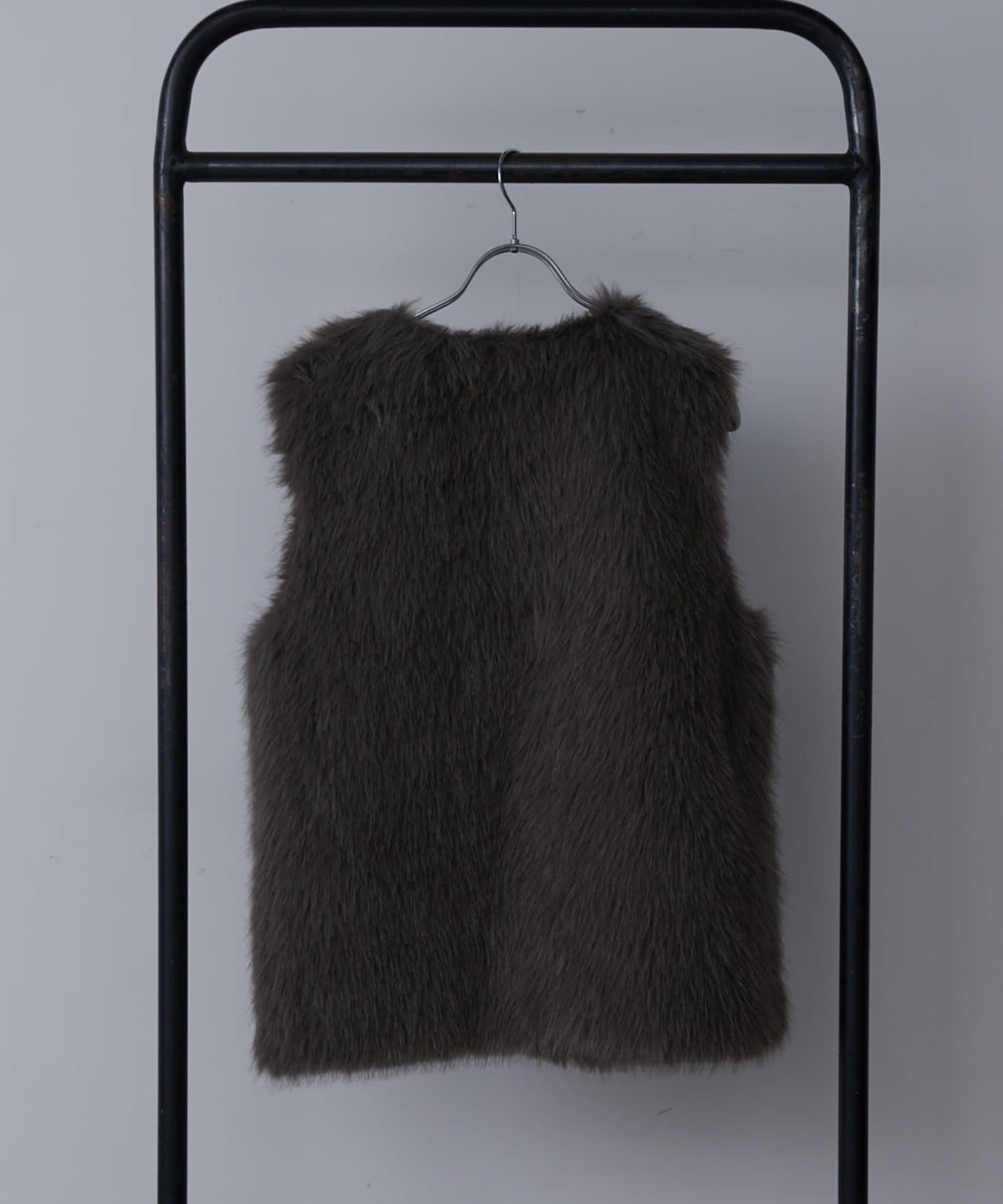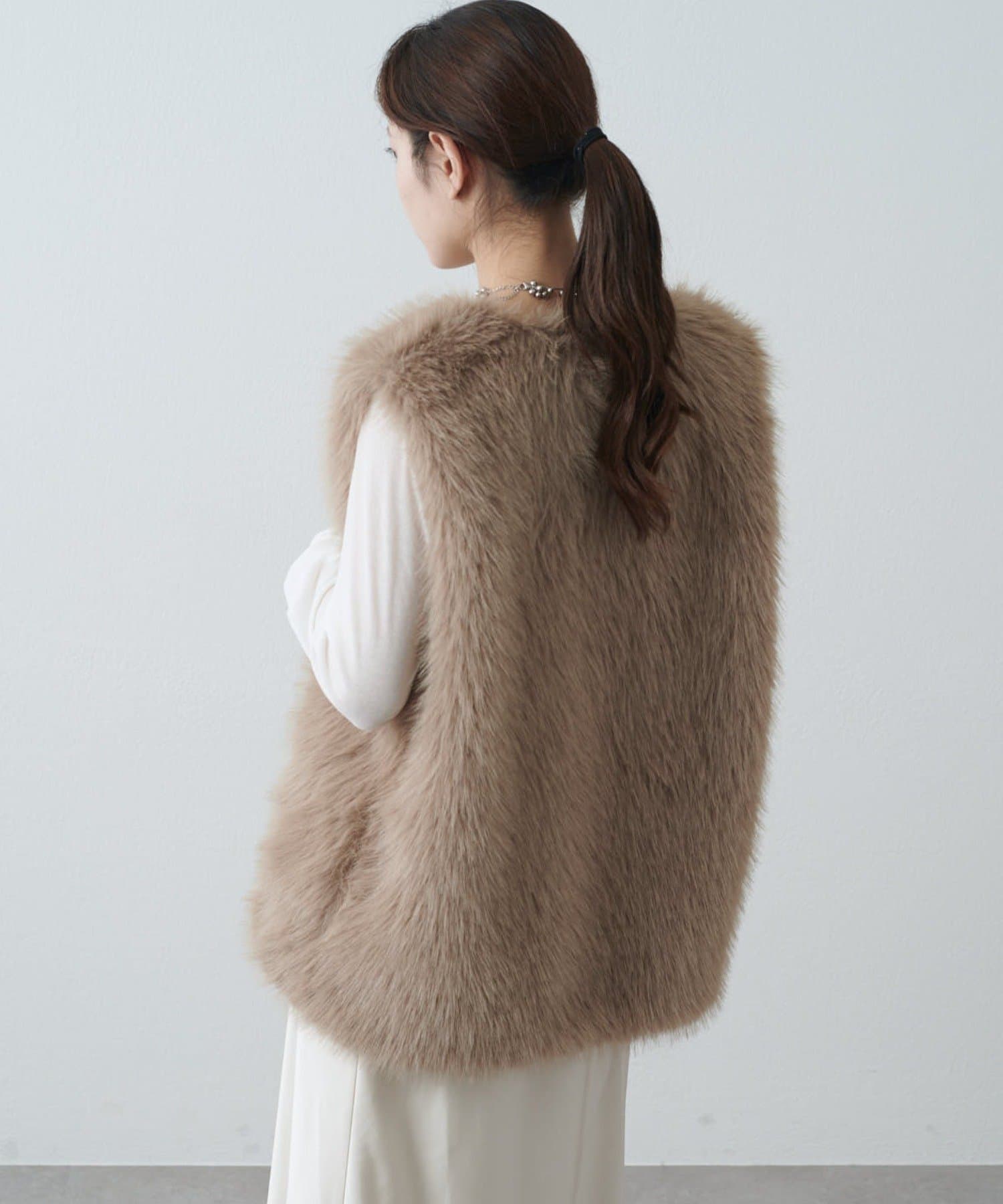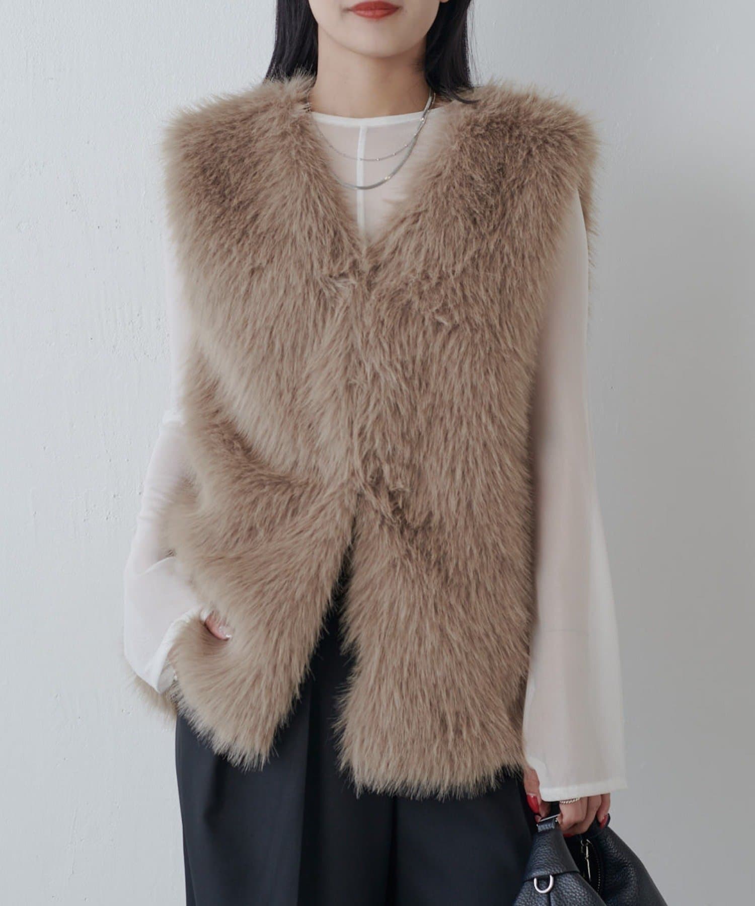シーズンムード高まるフェイクファーベスト。