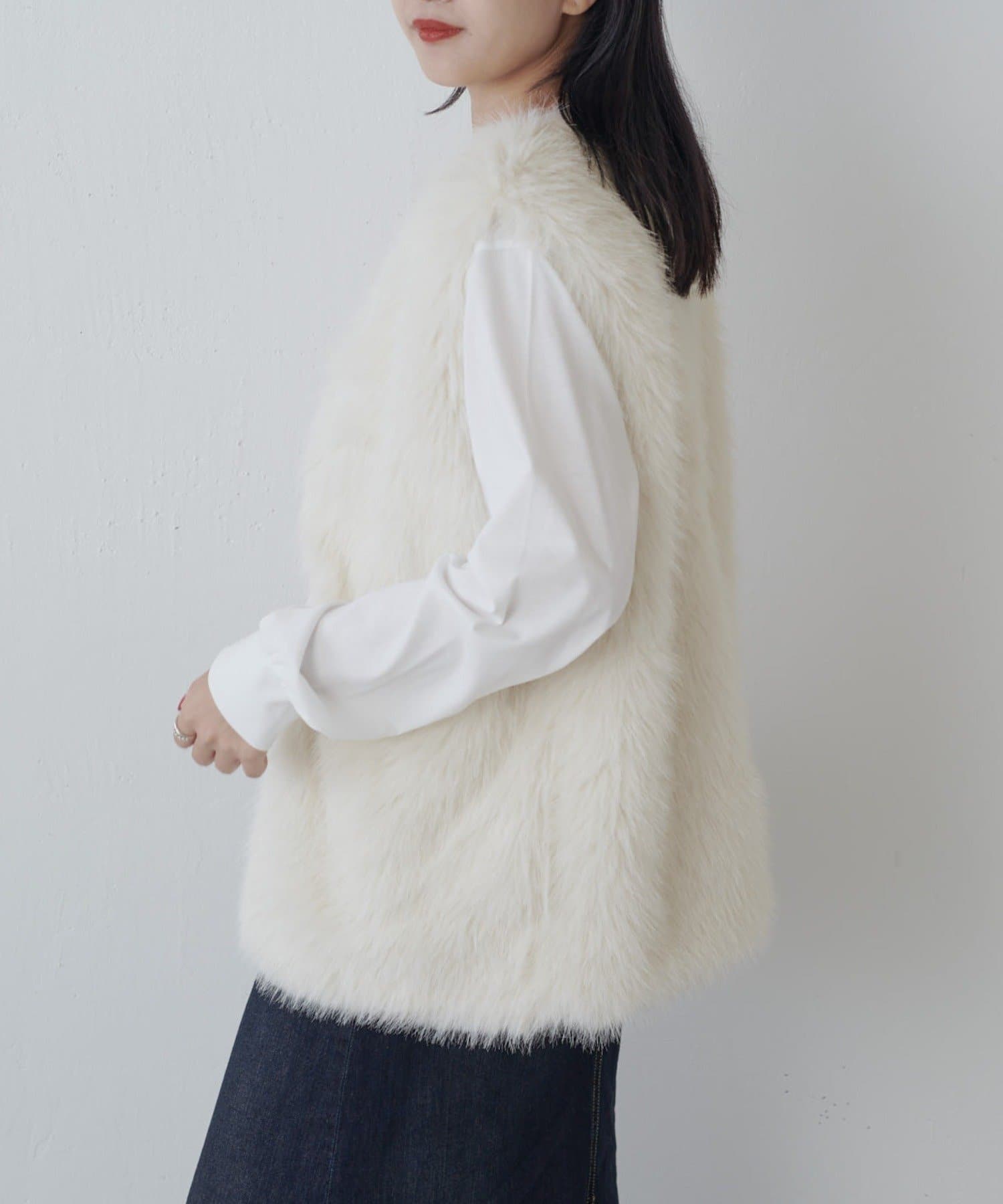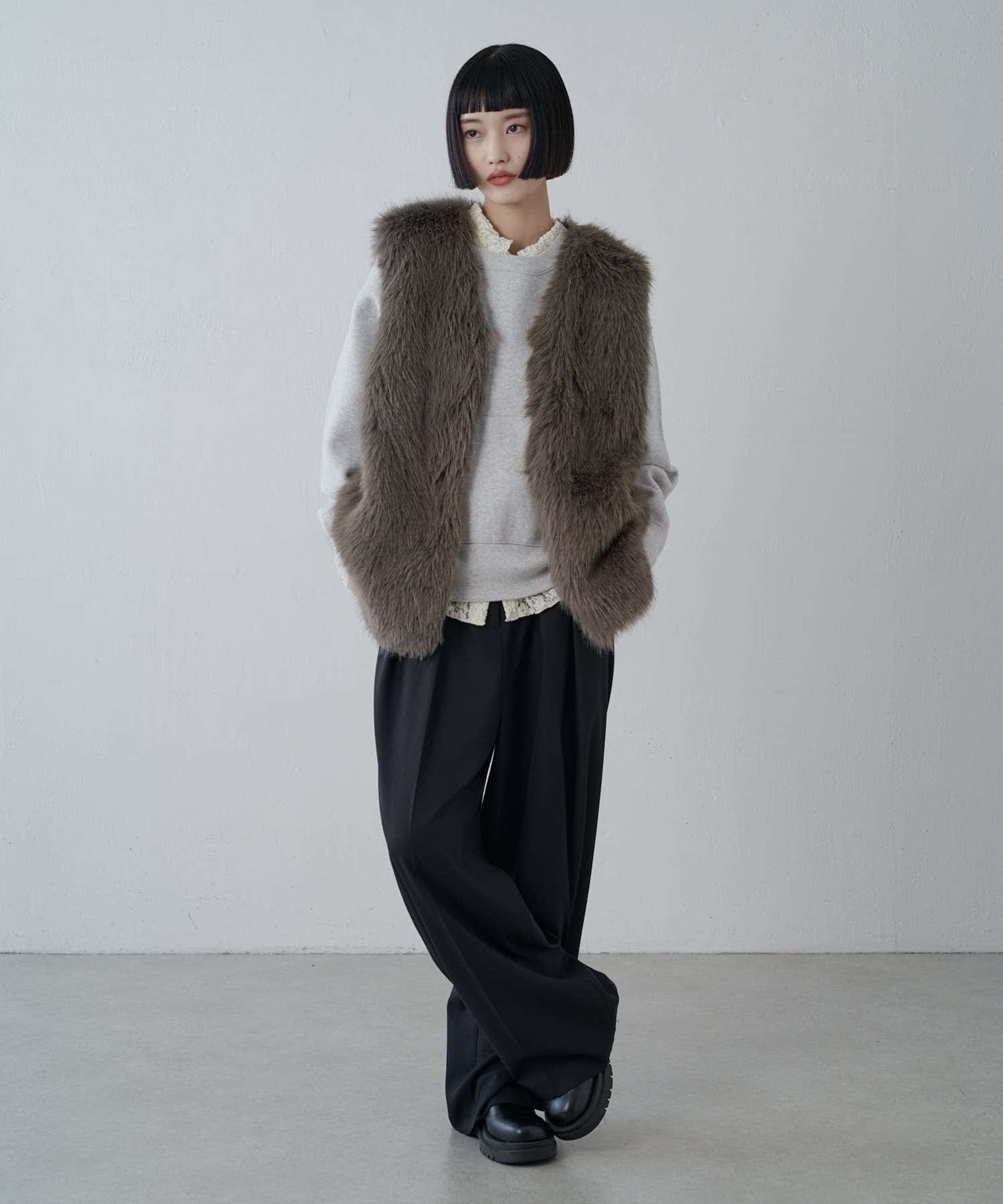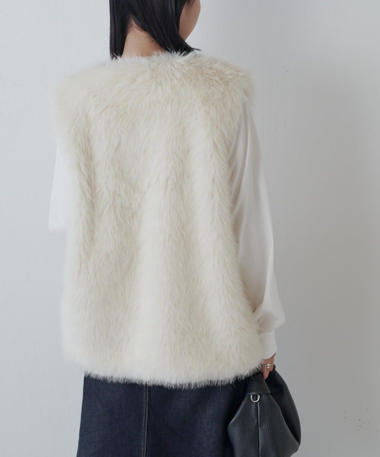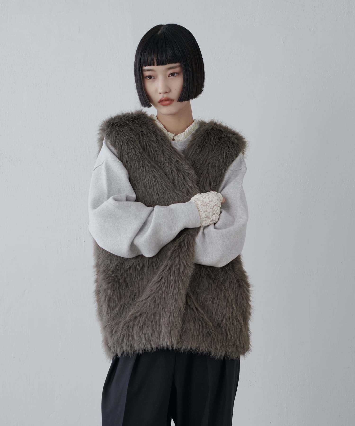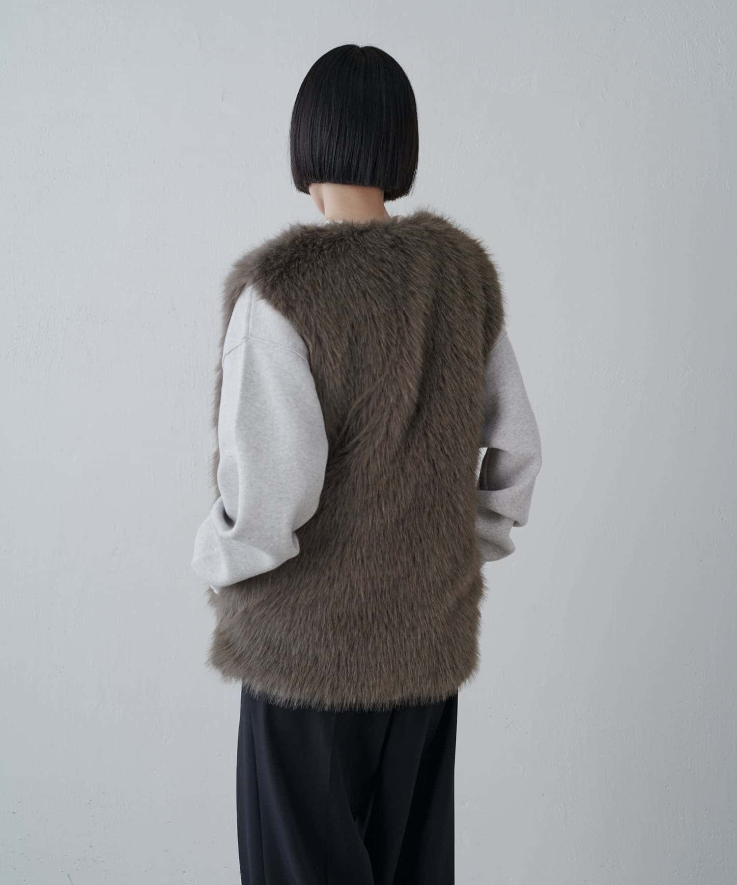 シーズンムード高まるフェイクファーベスト。