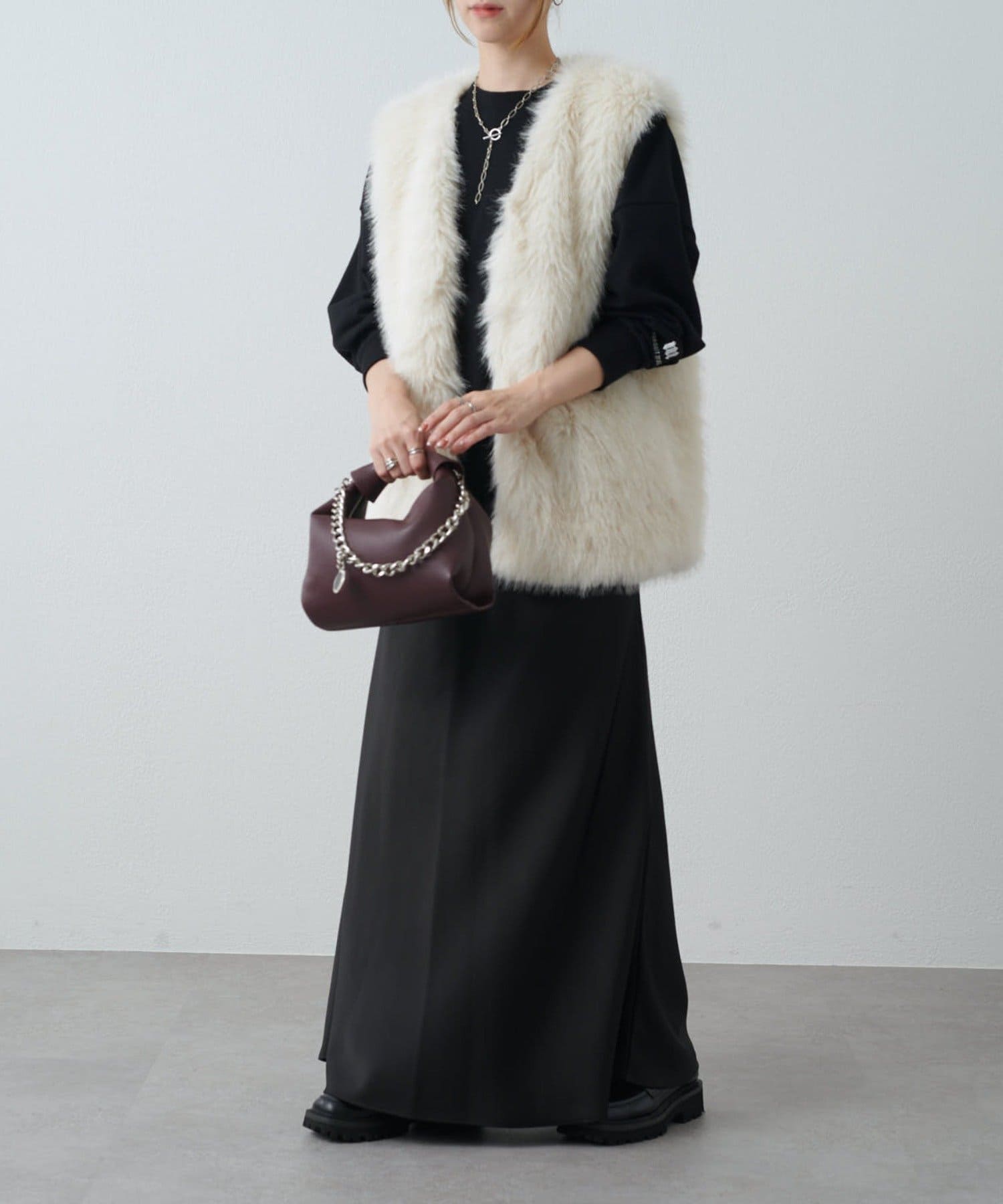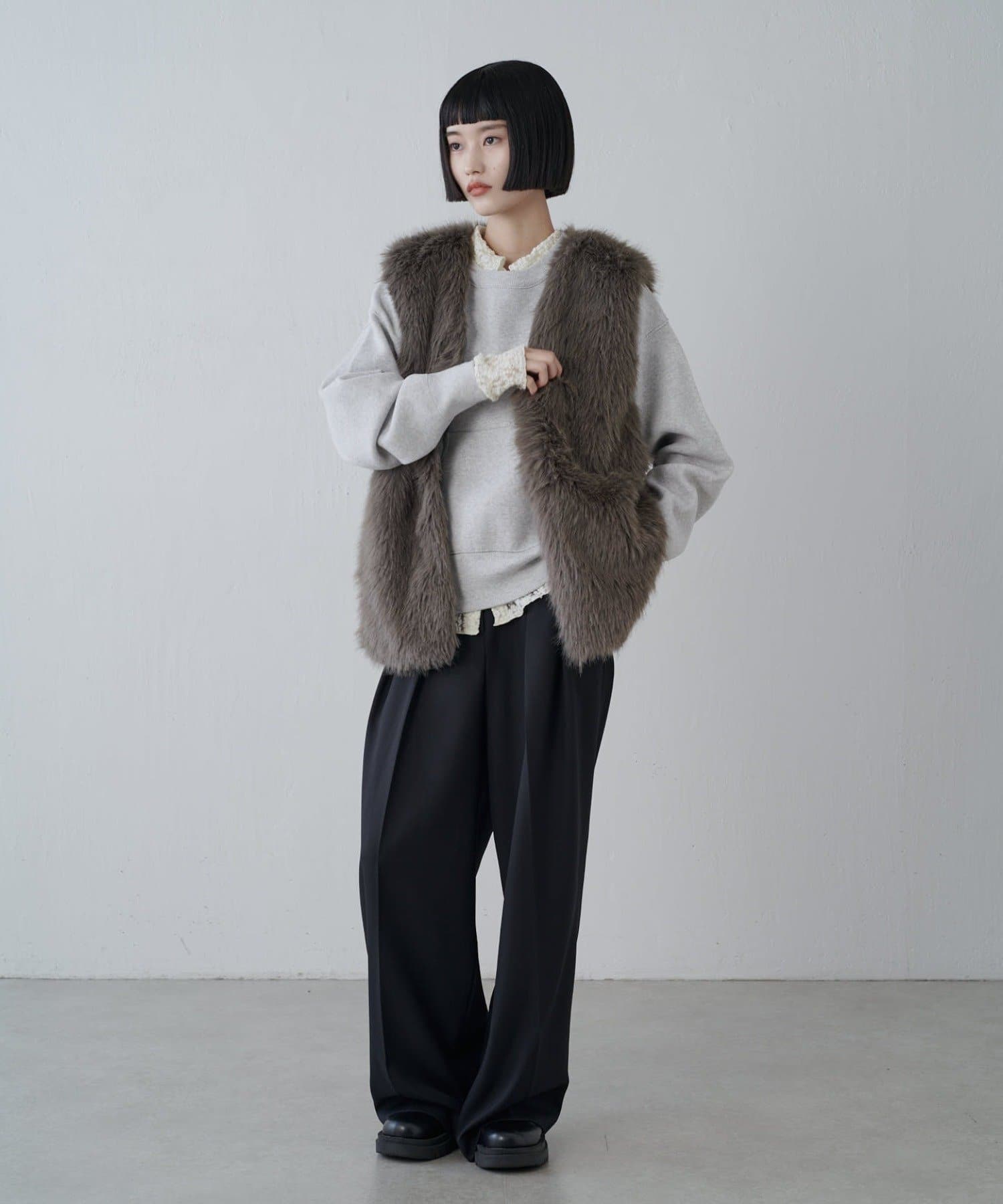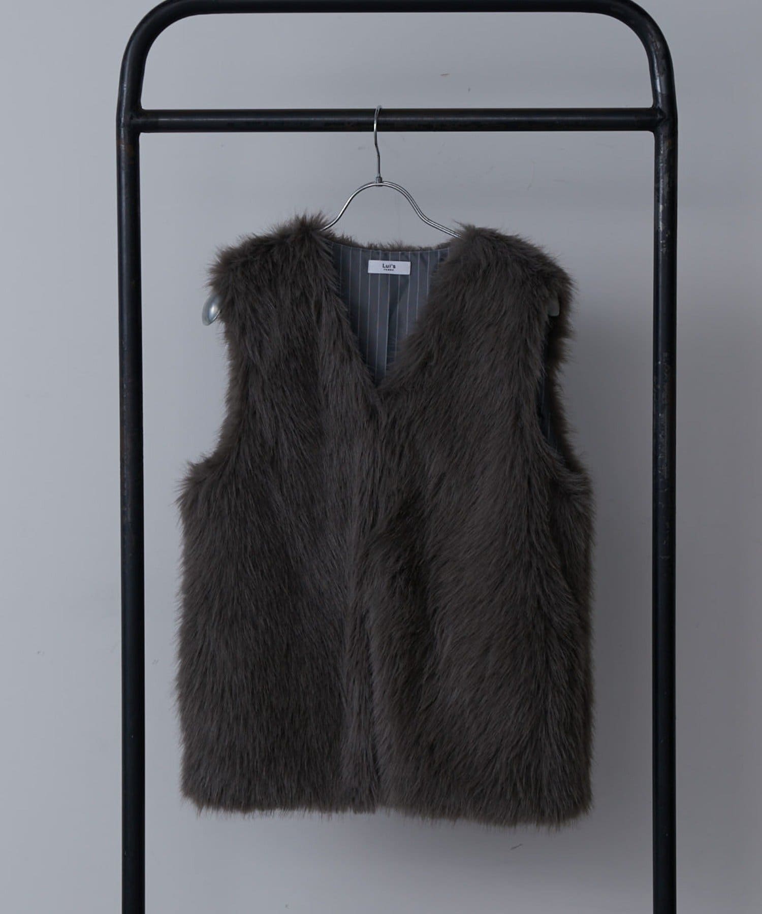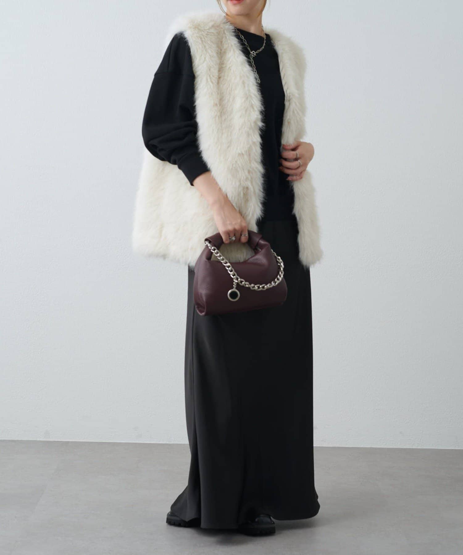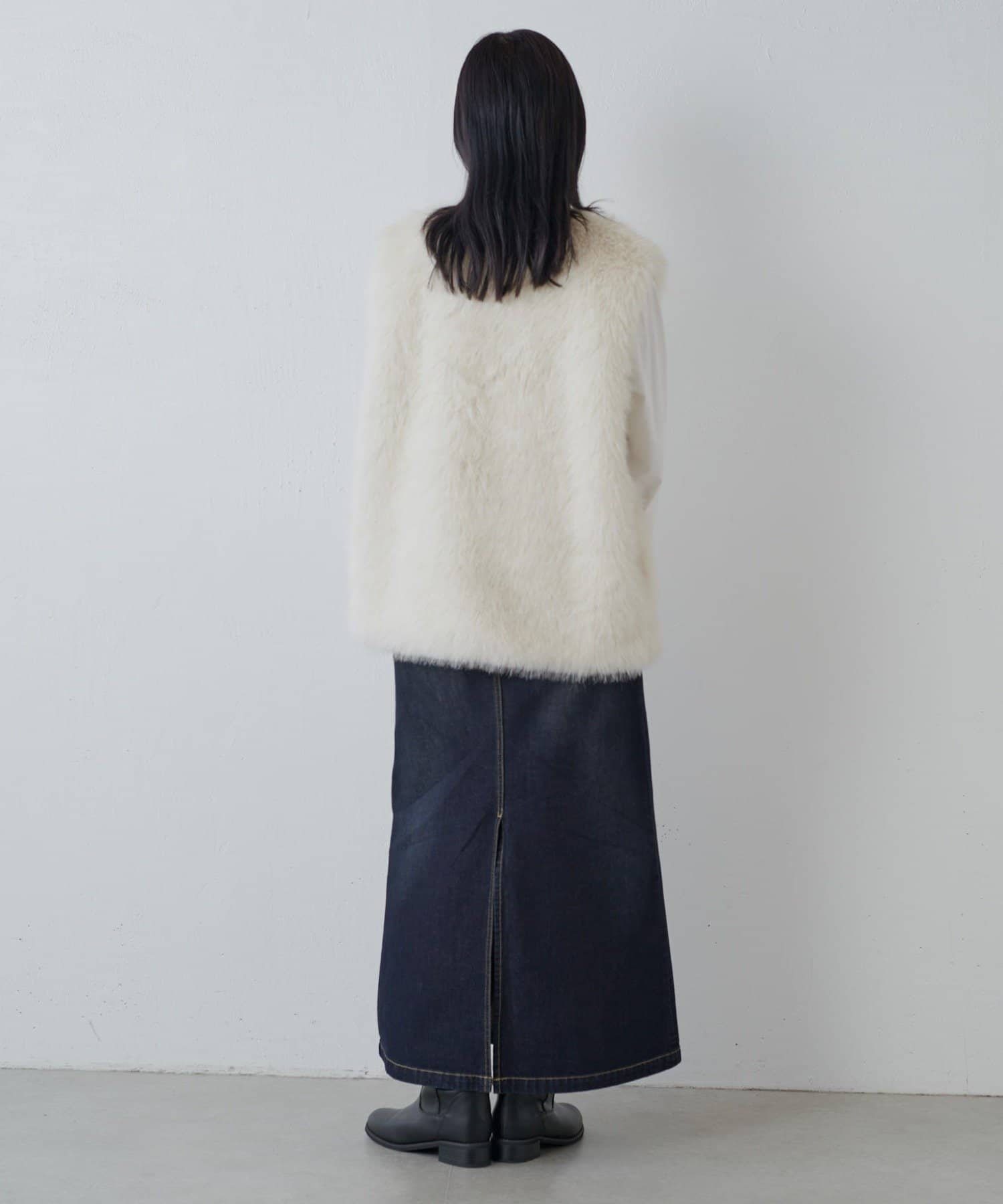 シーズンムード高まるフェイクファーベスト。