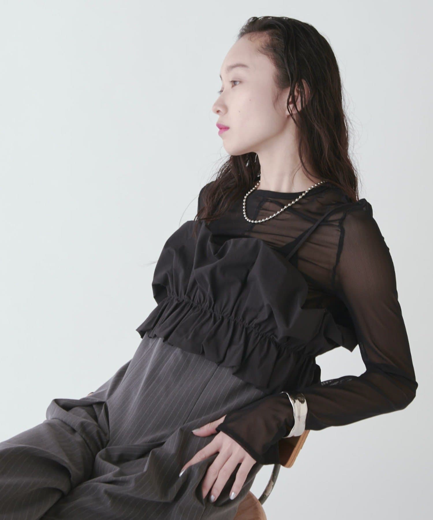 肩紐で丈の長さはが調節可能で。インナー次第でオケージョン仕様にもなります。