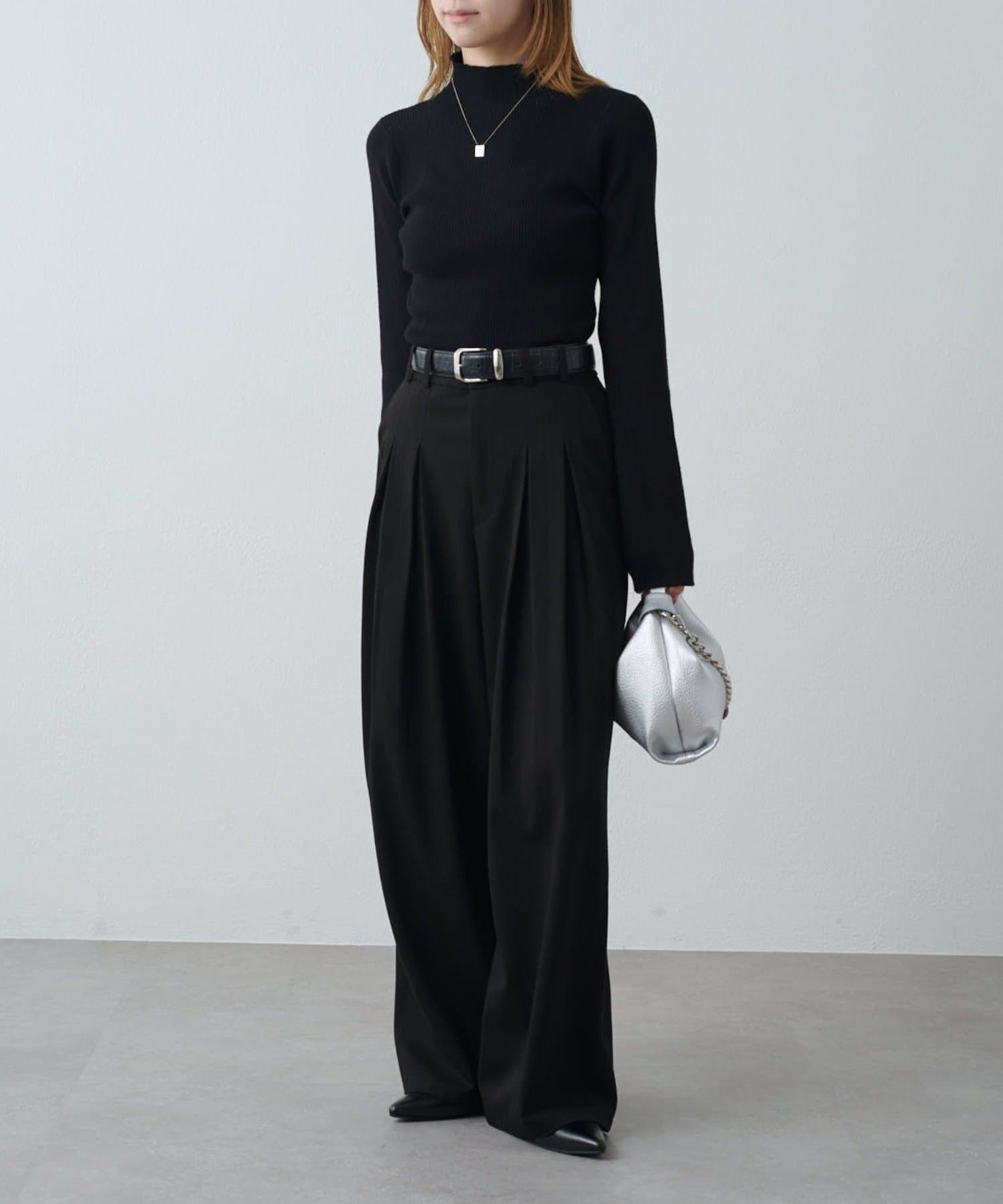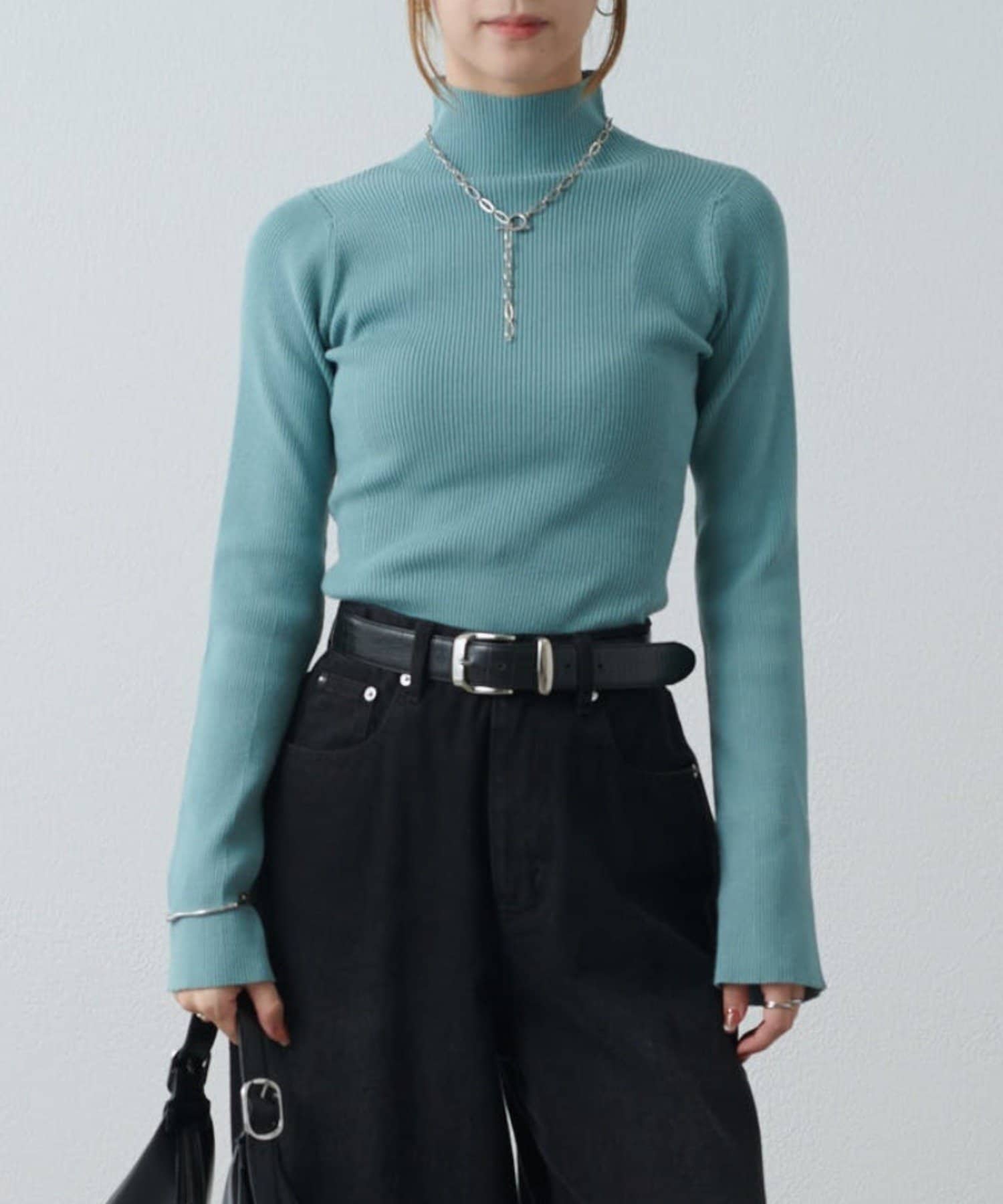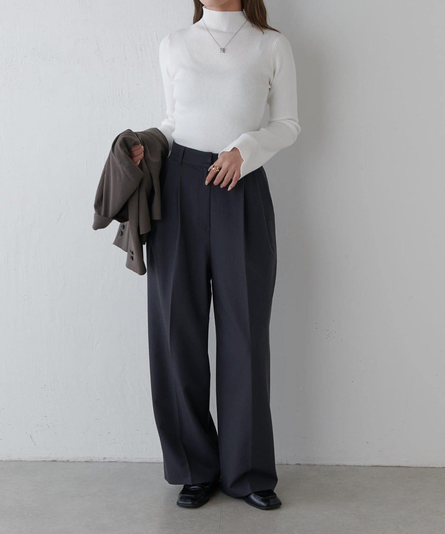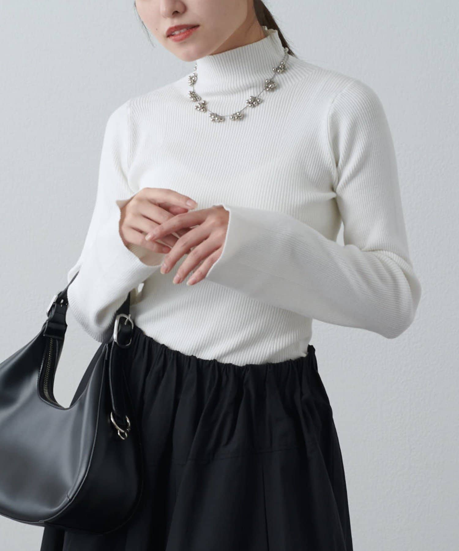 シンプルながらも大人のこなれ感を演出するタートルニットトップス。