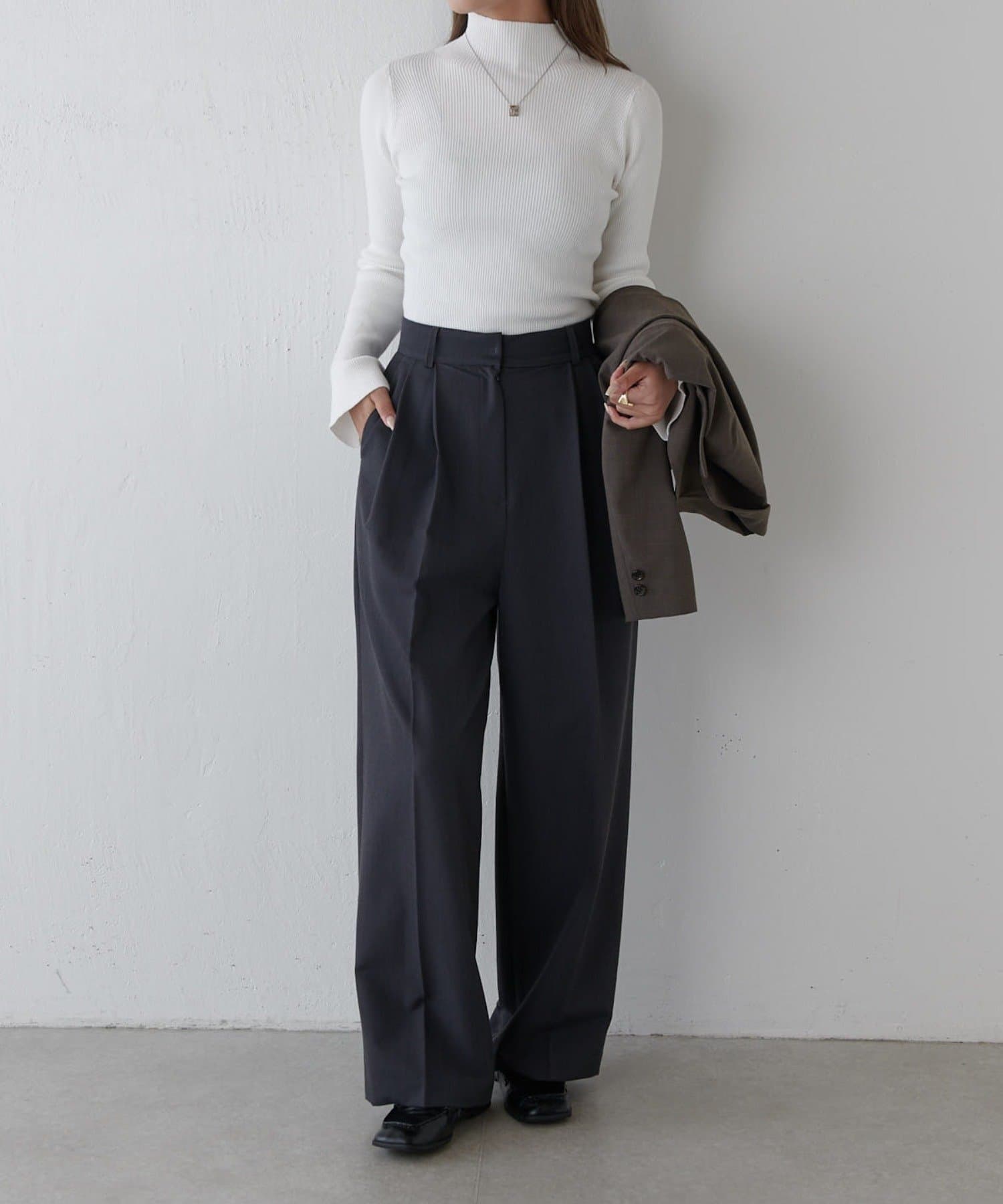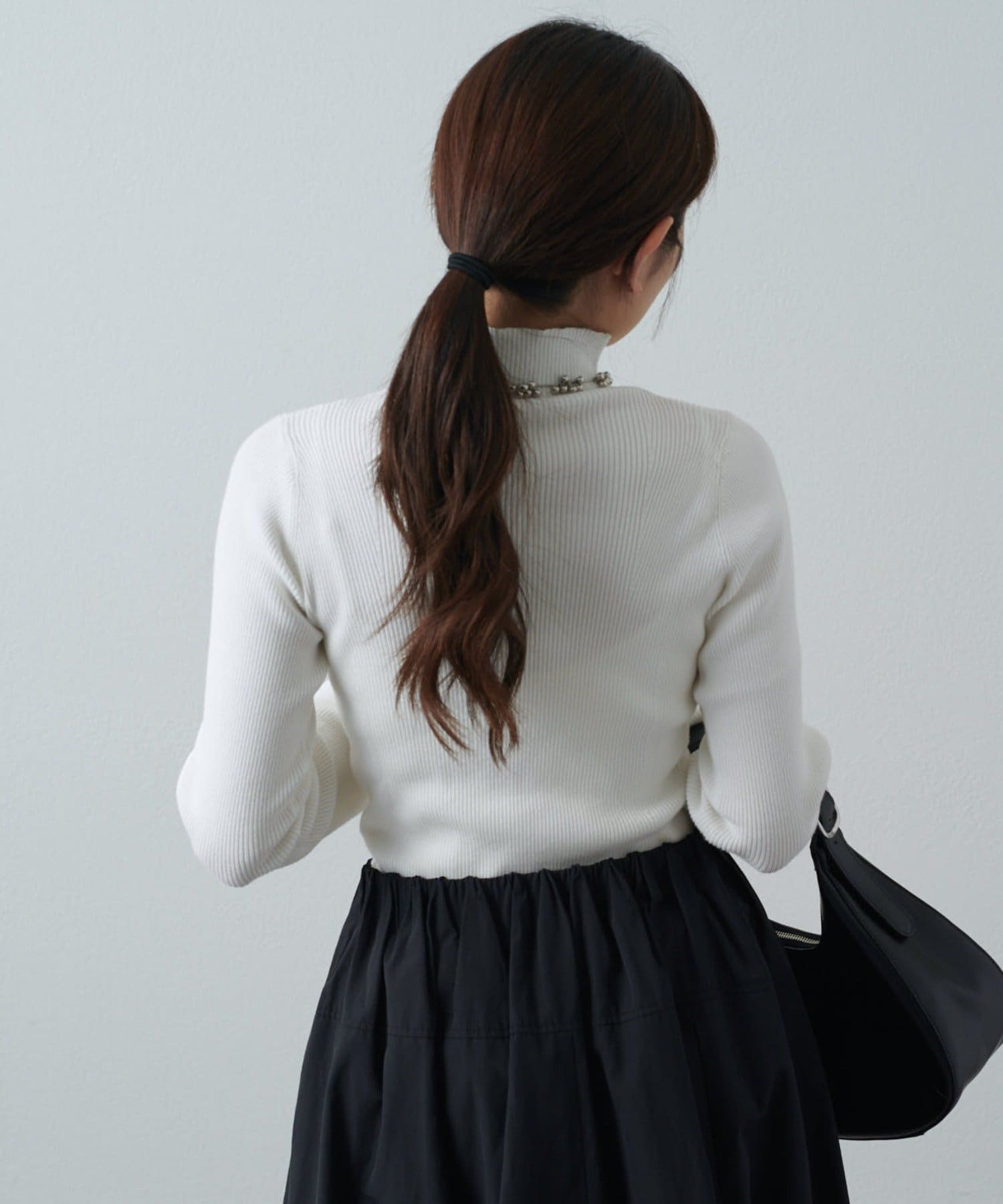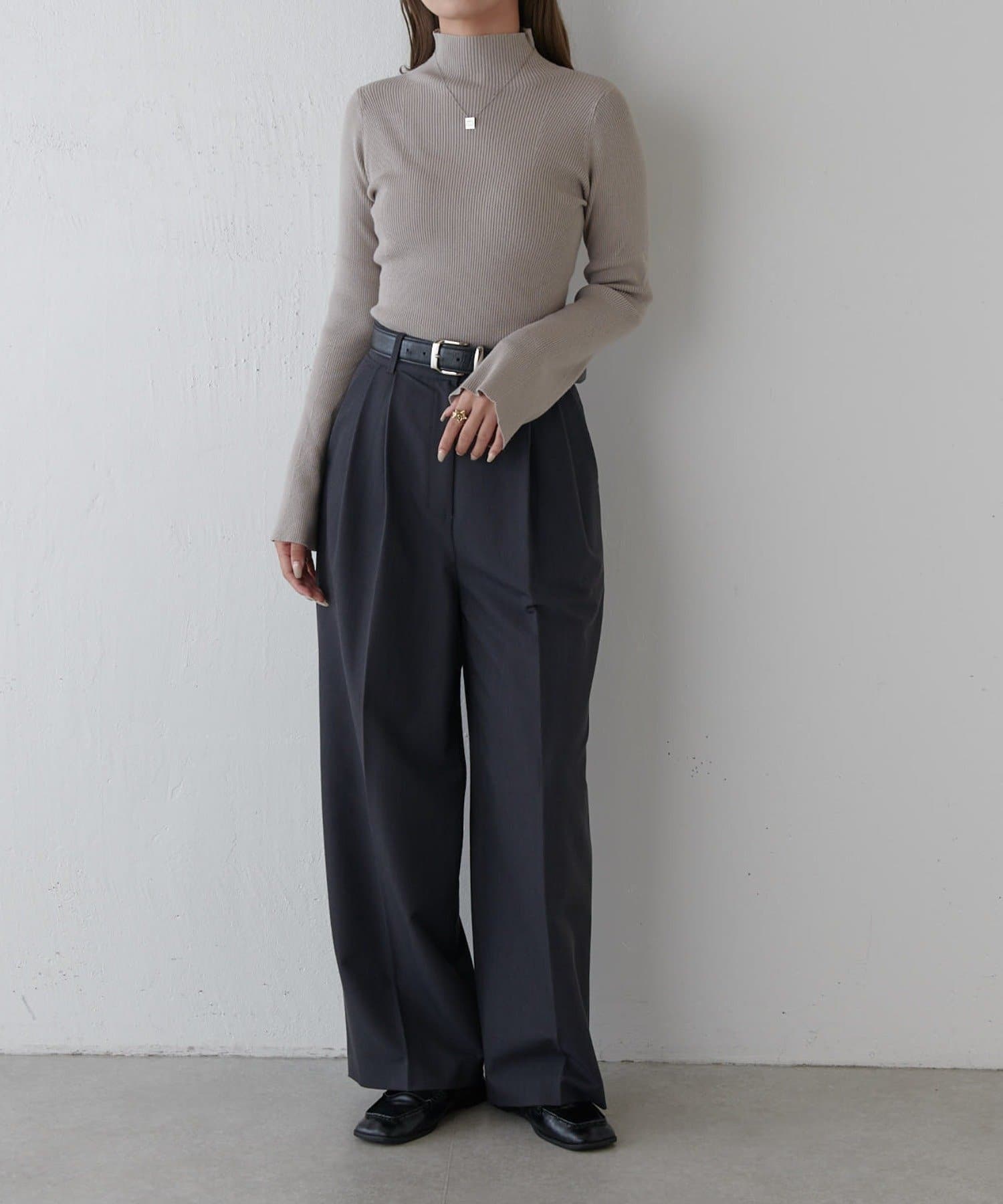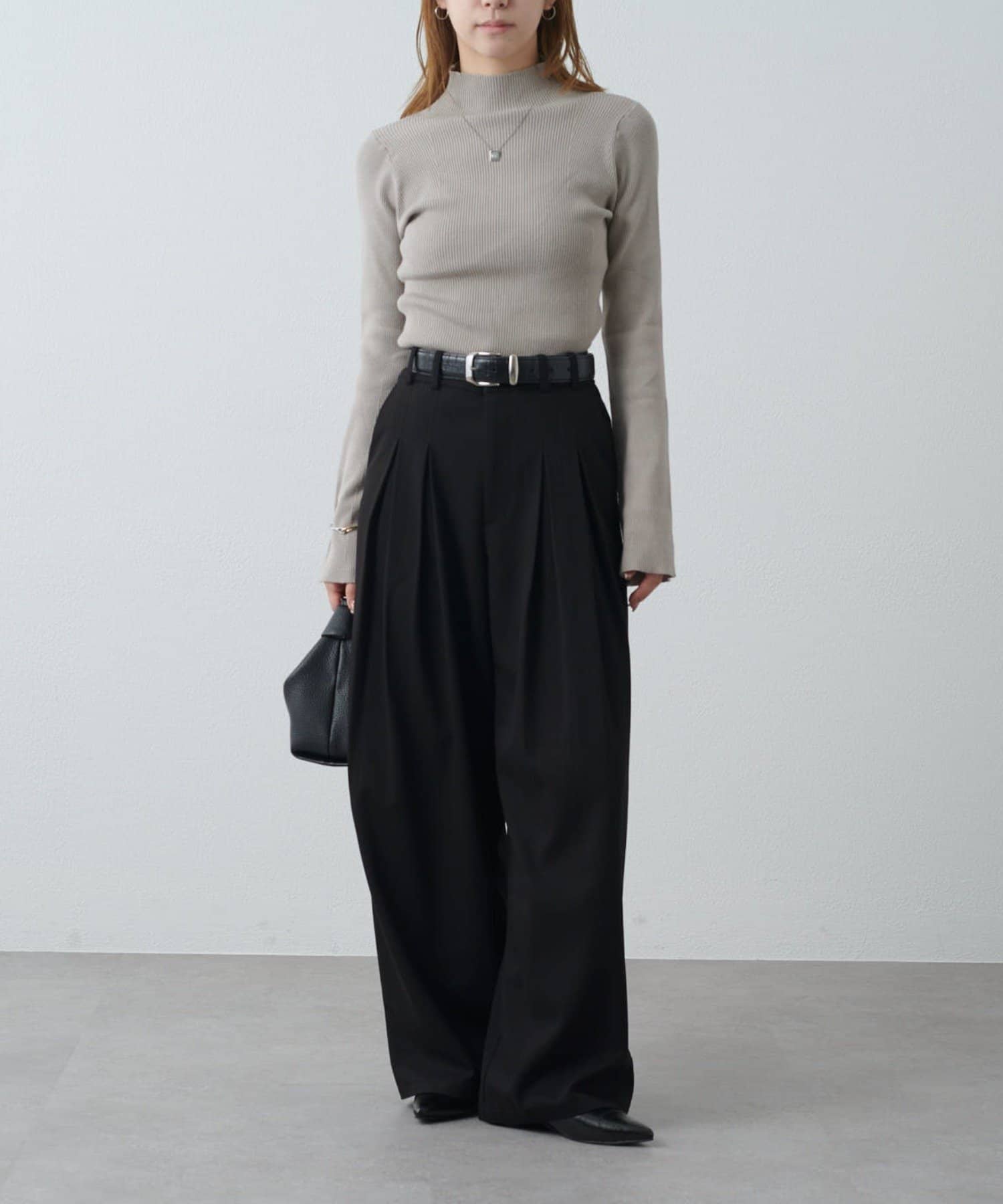 シンプルながらも大人のこなれ感を演出するタートルニットトップス。
