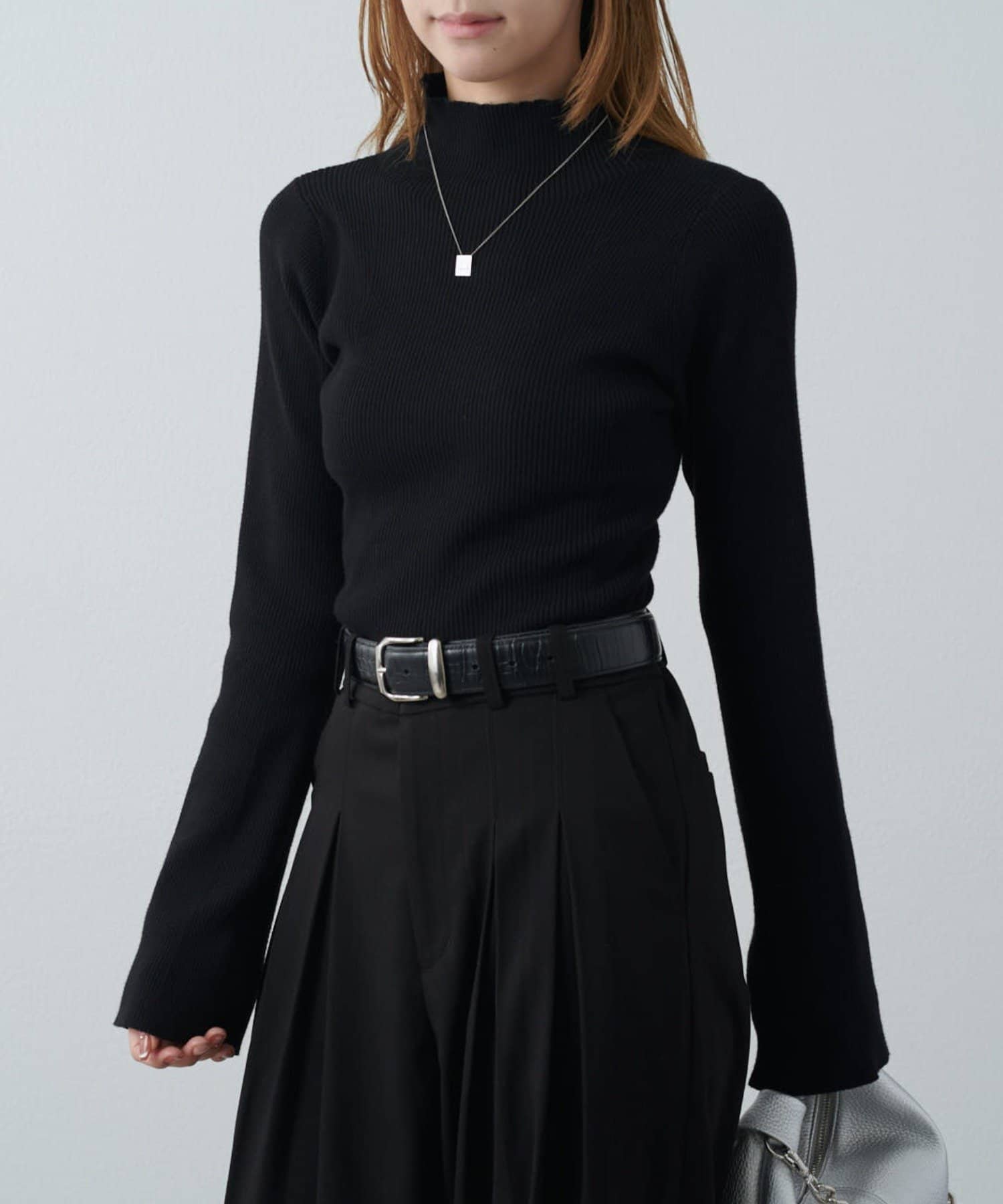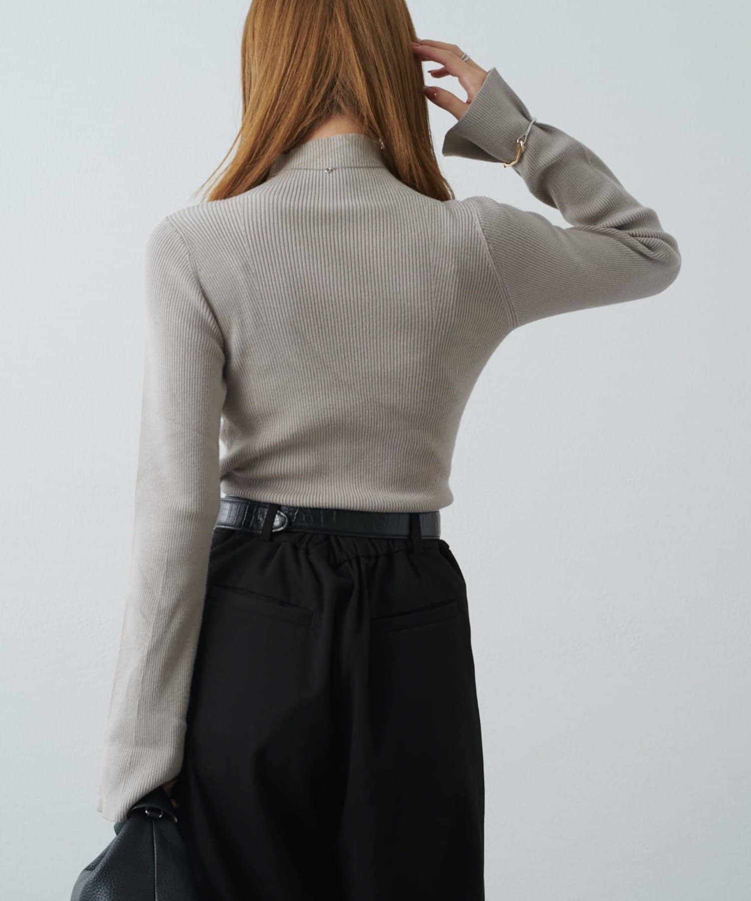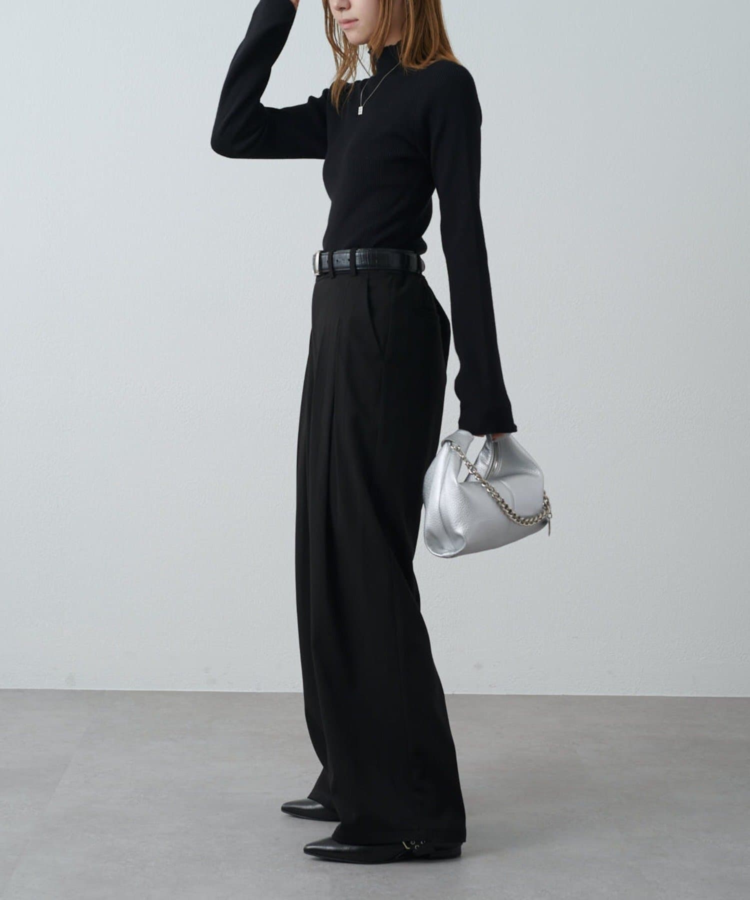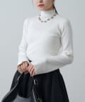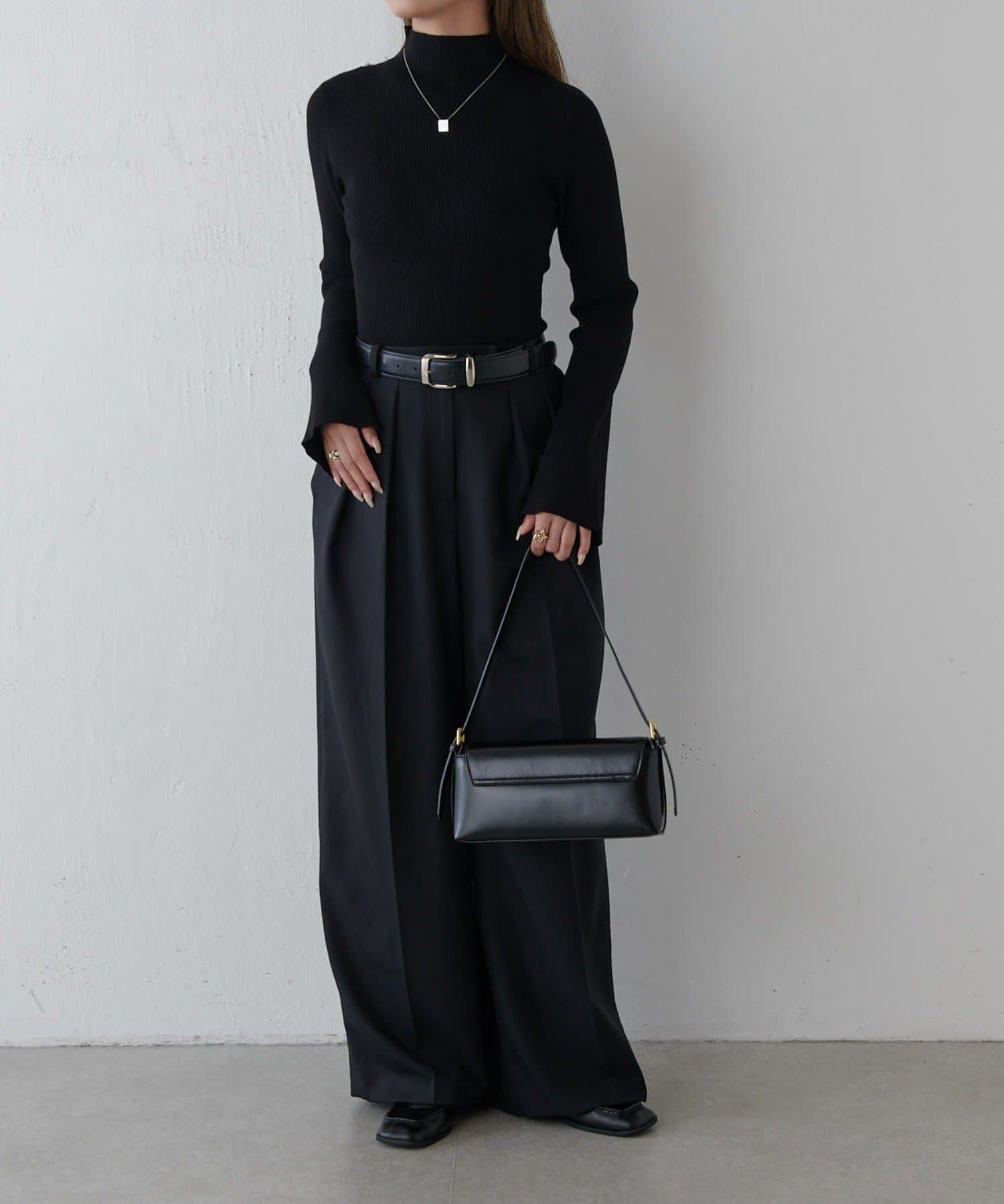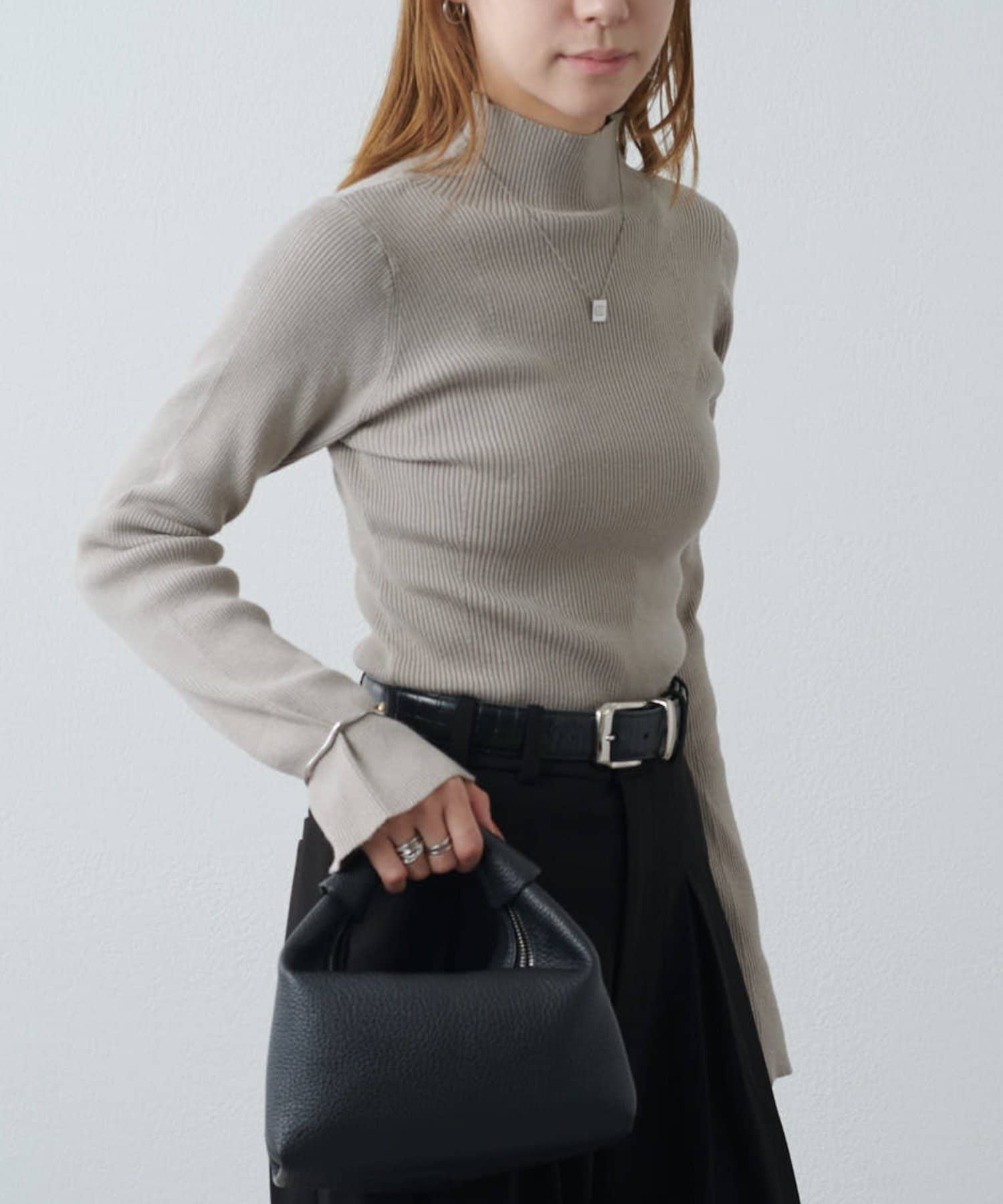 シンプルながらも大人のこなれ感を演出するタートルニットトップス。