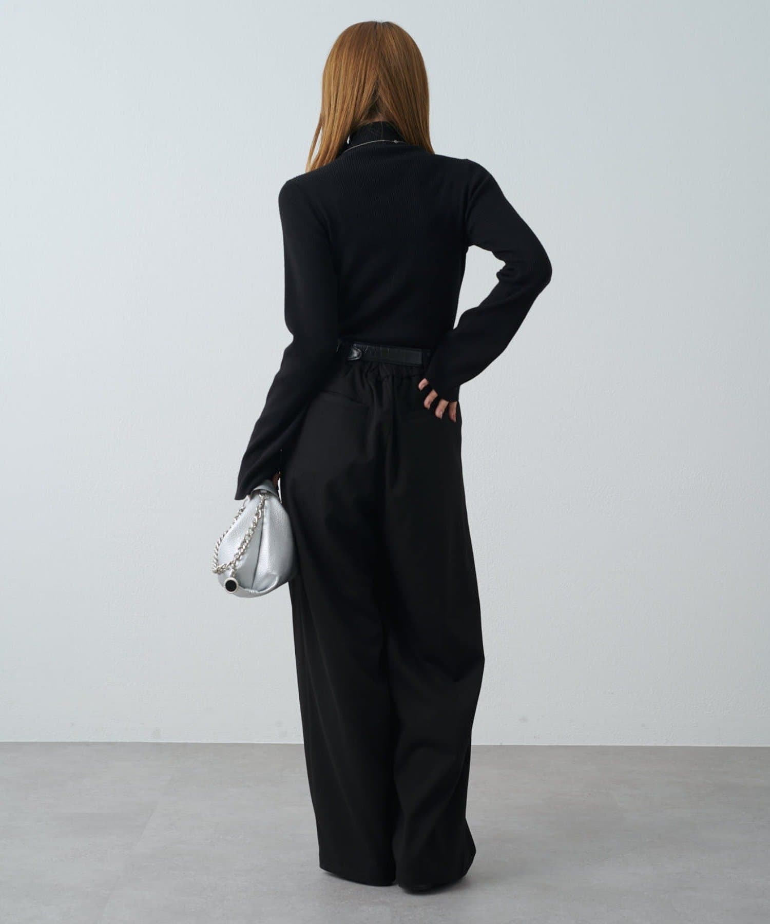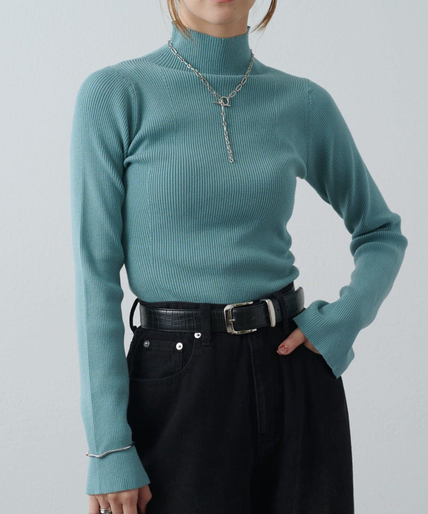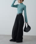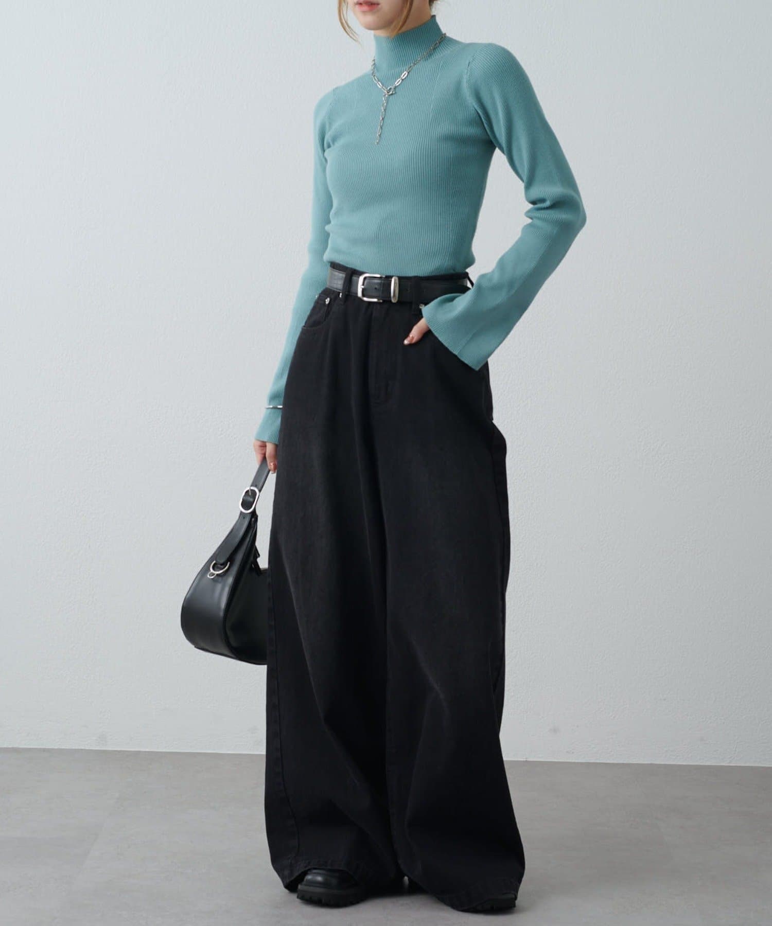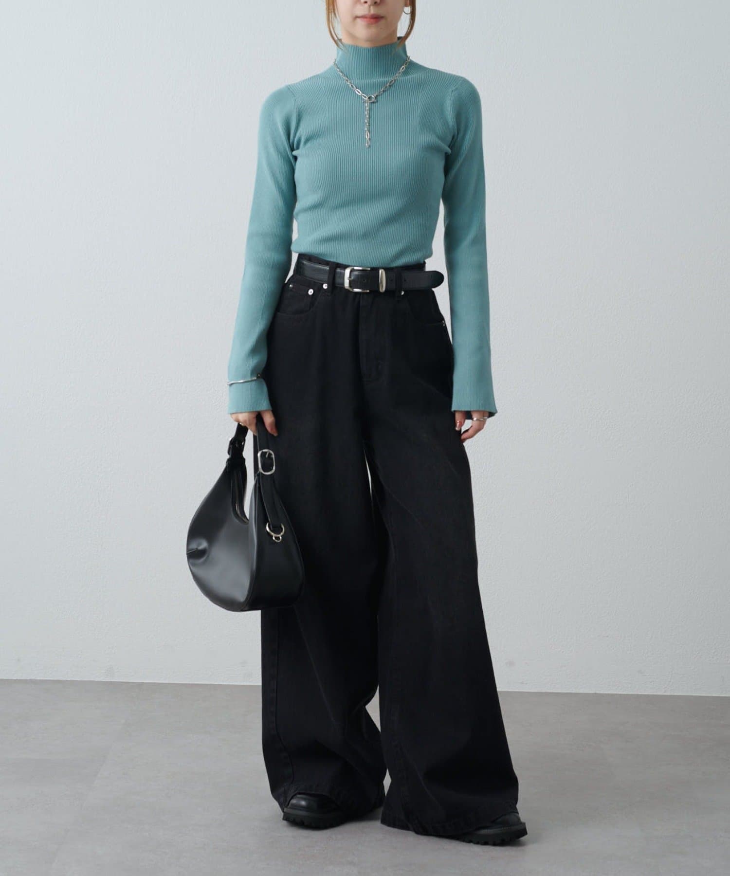 シンプルながらも大人のこなれ感を演出するタートルニットトップス。