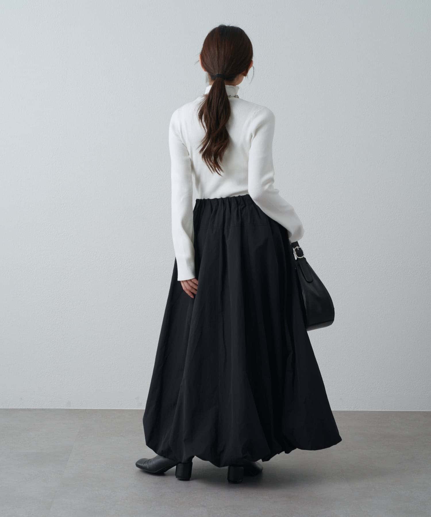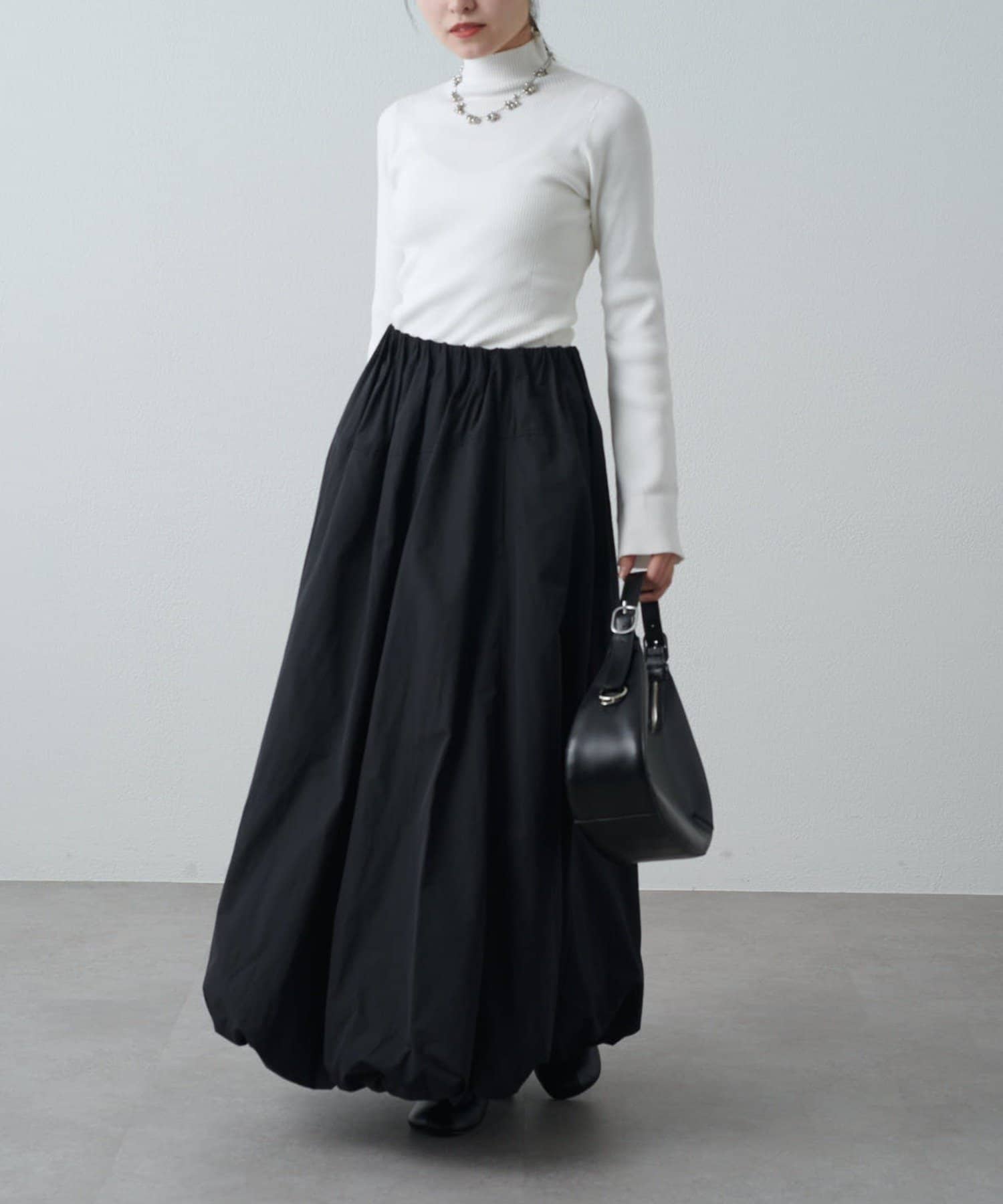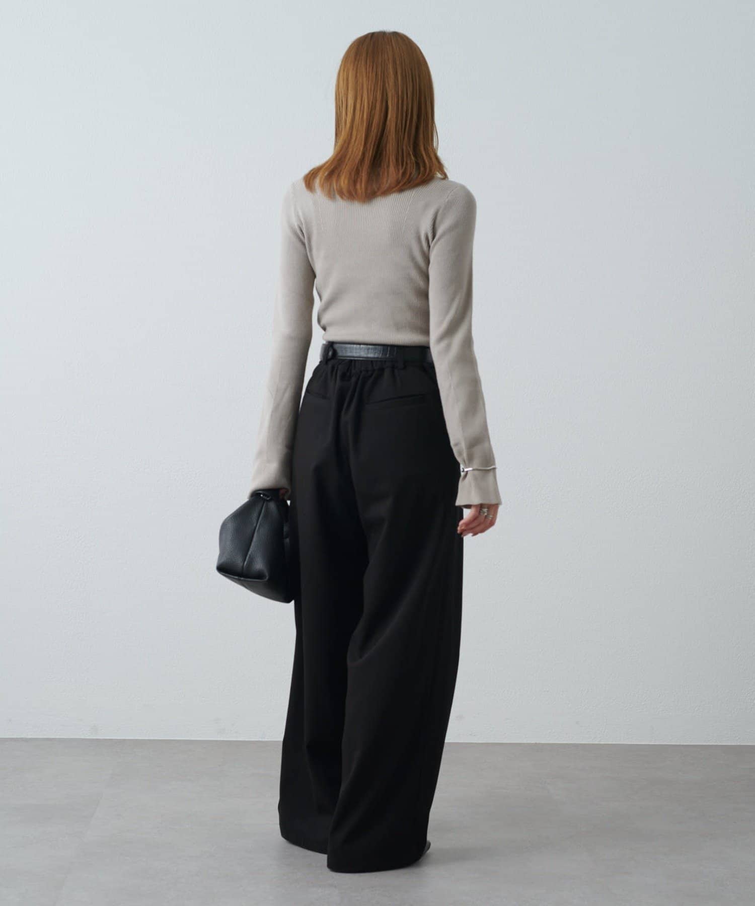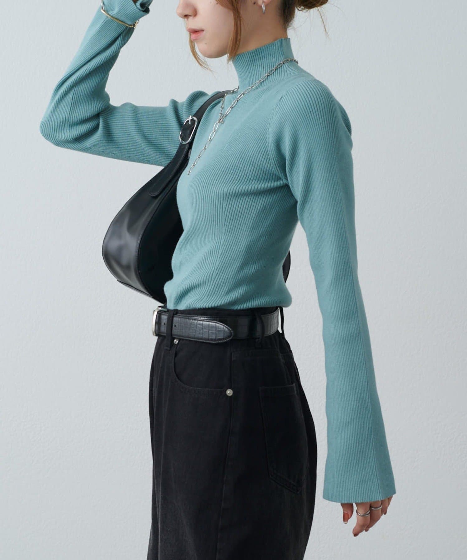 シンプルながらも大人のこなれ感を演出するタートルニットトップス。