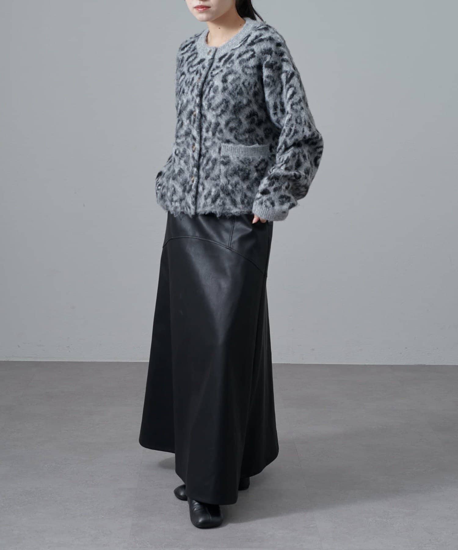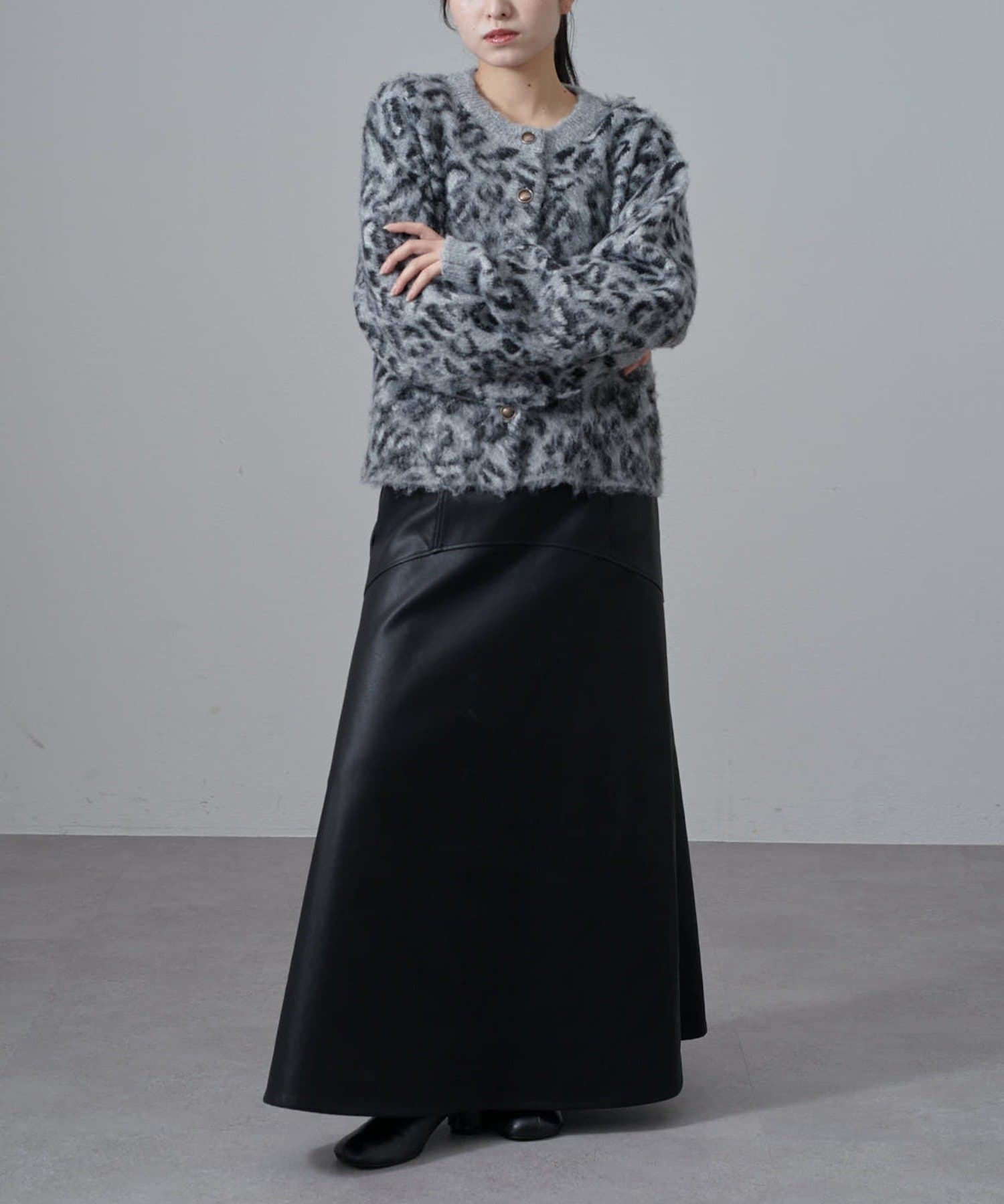 ヒョウ柄シャギージャケットカーディガン