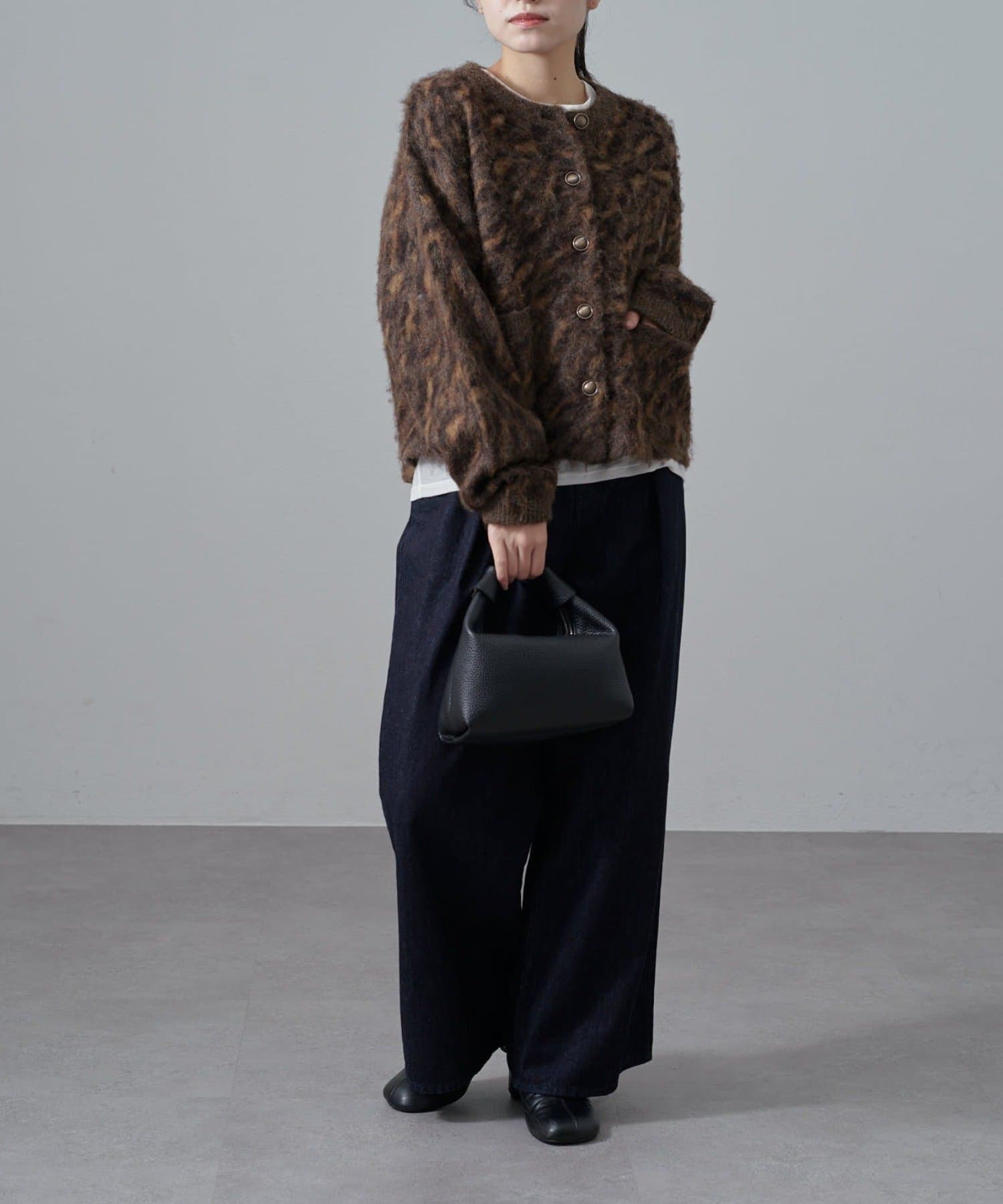 ヒョウ柄の中でも、大人っぽくキレイめに着こなしやすいような印象の色味や柄を選びました。