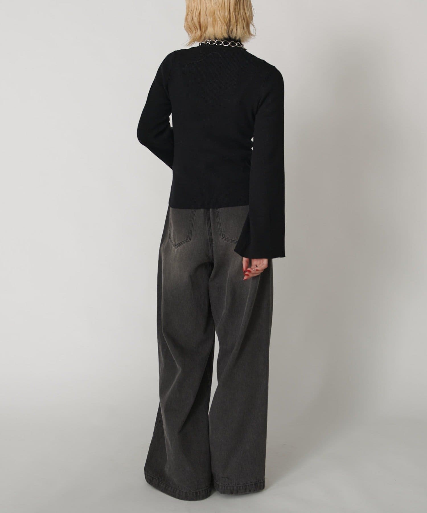 ・袖が大きく広がるフレアデザインで、上品かつきれいめなニット