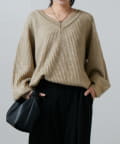 首元スッキリ見えるざっくり開いたニットなので、シンプルで華奢なネックレスをつけるのがおすすめ。