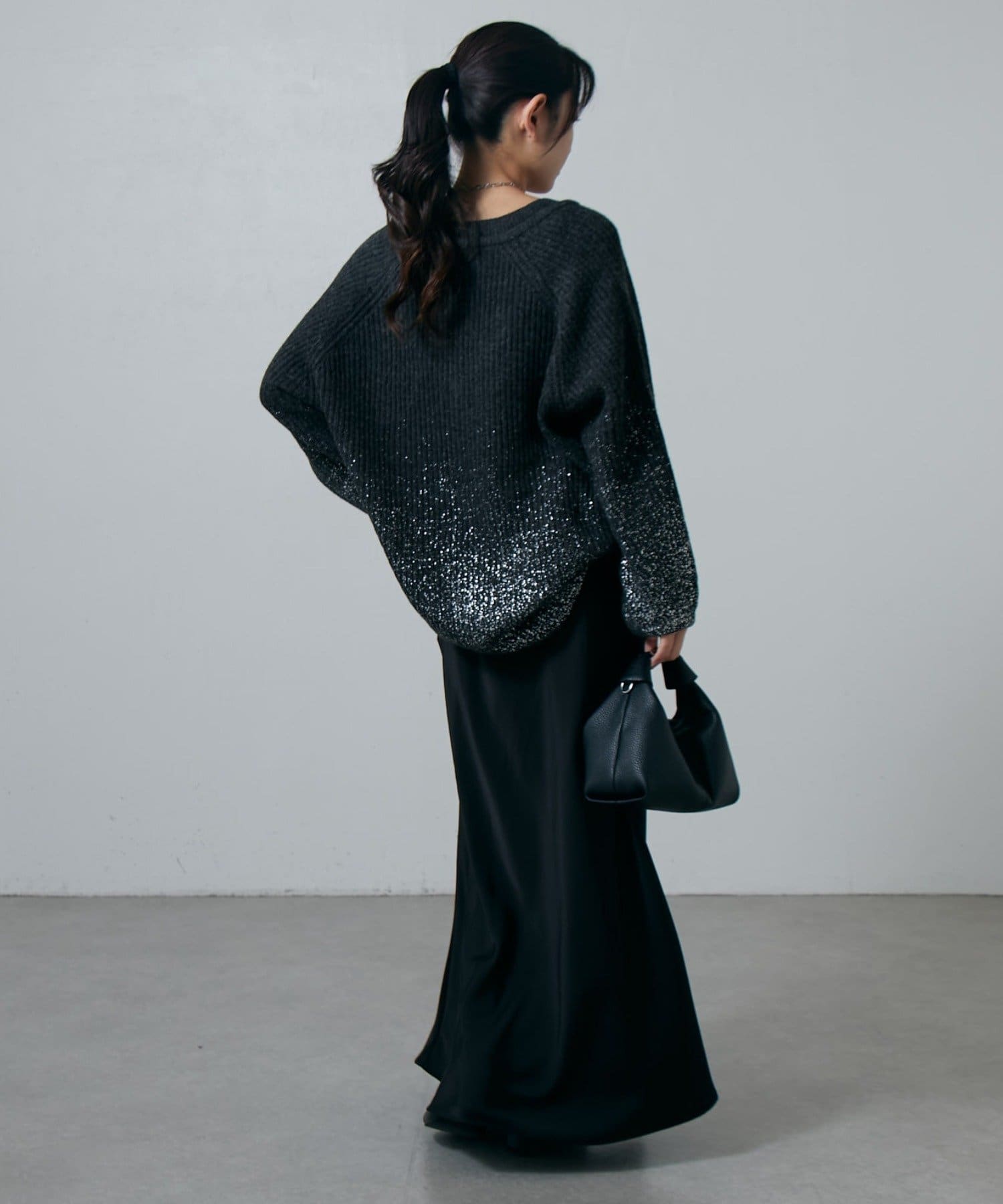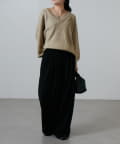ゆるっとした丈感なので、サテンスカートやナロースカートなどのシンプルなスカート合わせが特におすすめ。