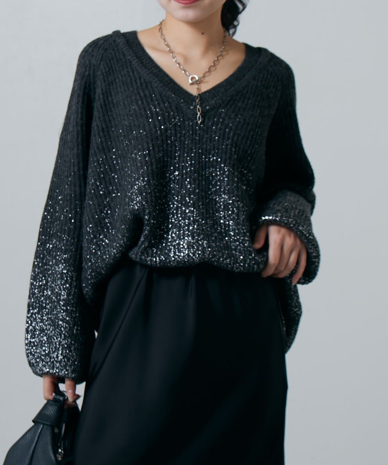 TOP > Lui's > レディース > トップス > ニット/セーター > ラメプリントVネックニットプルオーバー