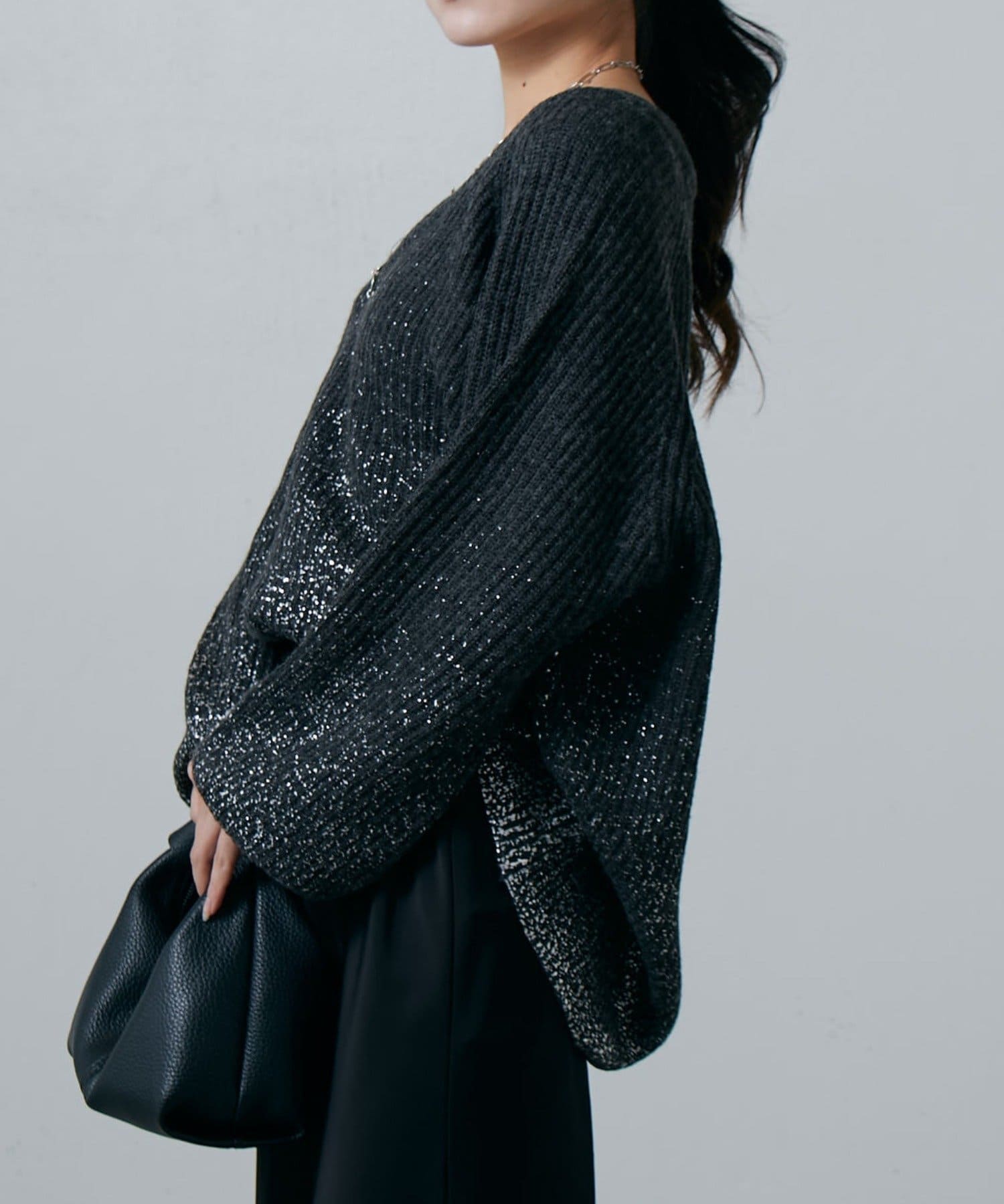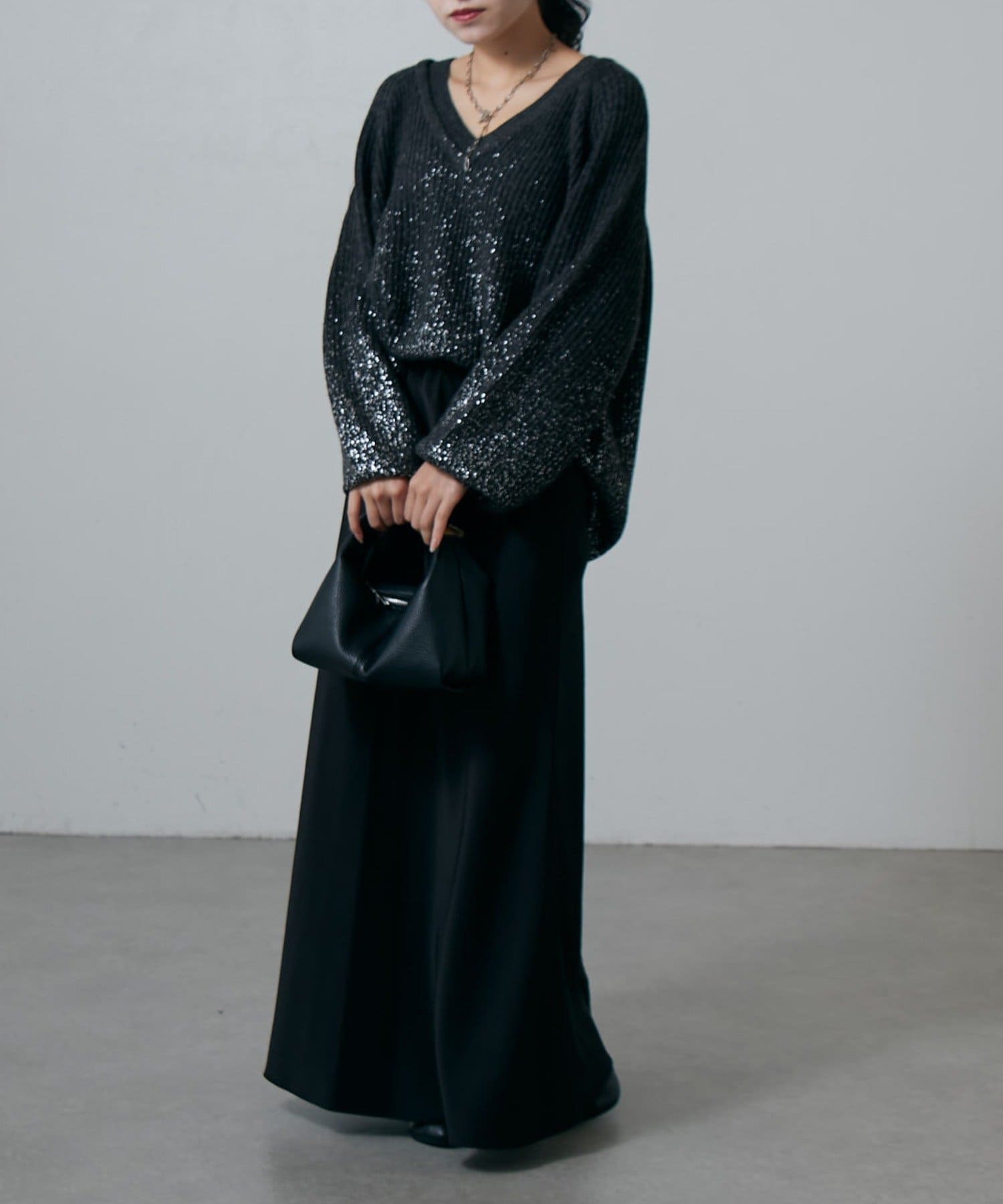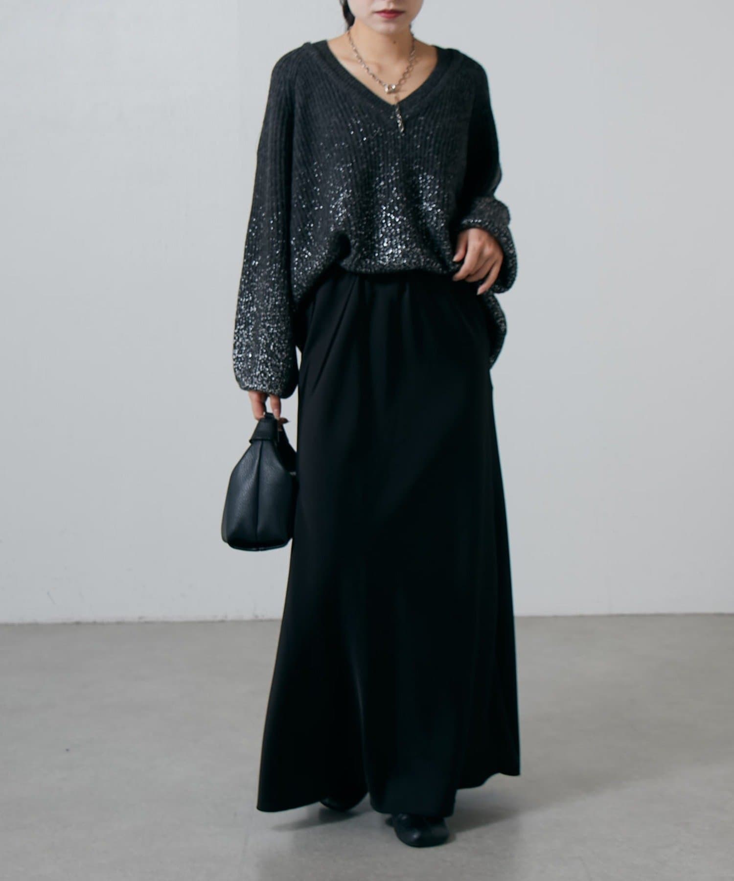 首元はスッキリ見えるデザインで、重たくなりがちな秋冬のスタイルにも取り入れるだけで抜け感が◎