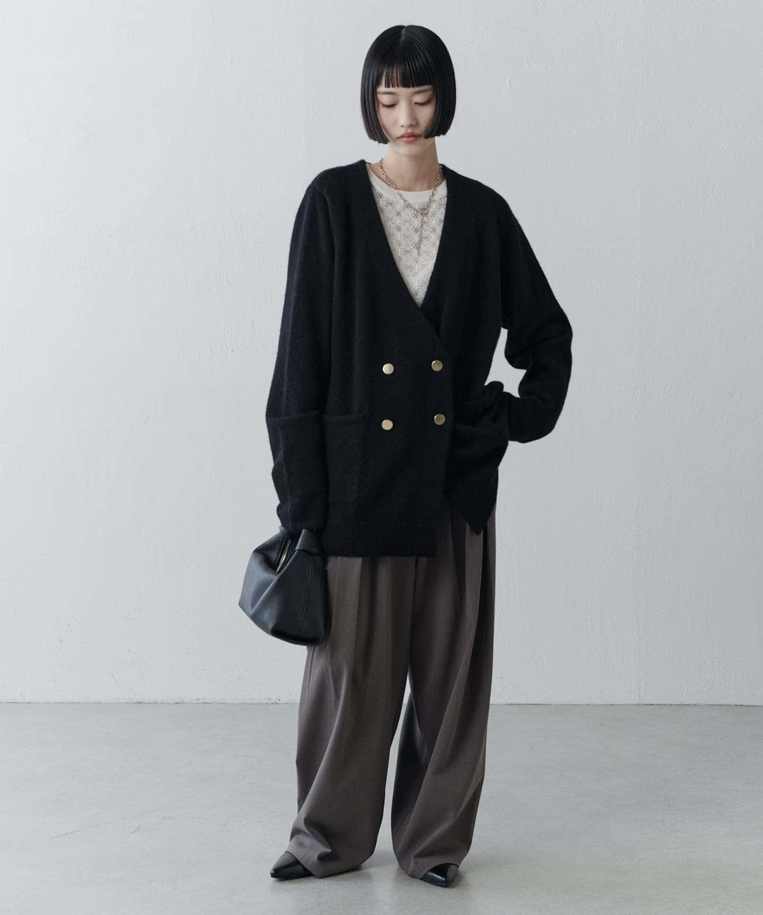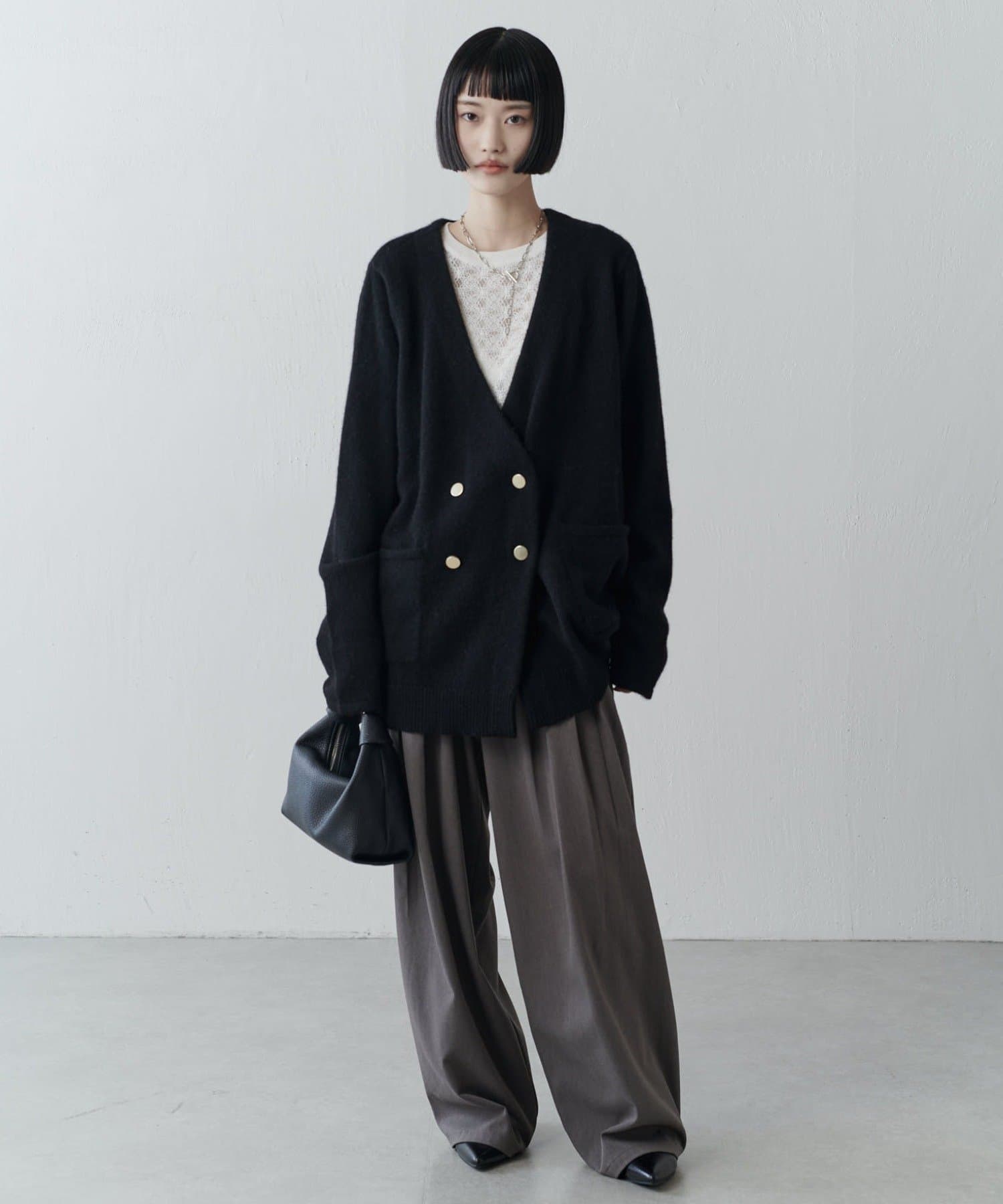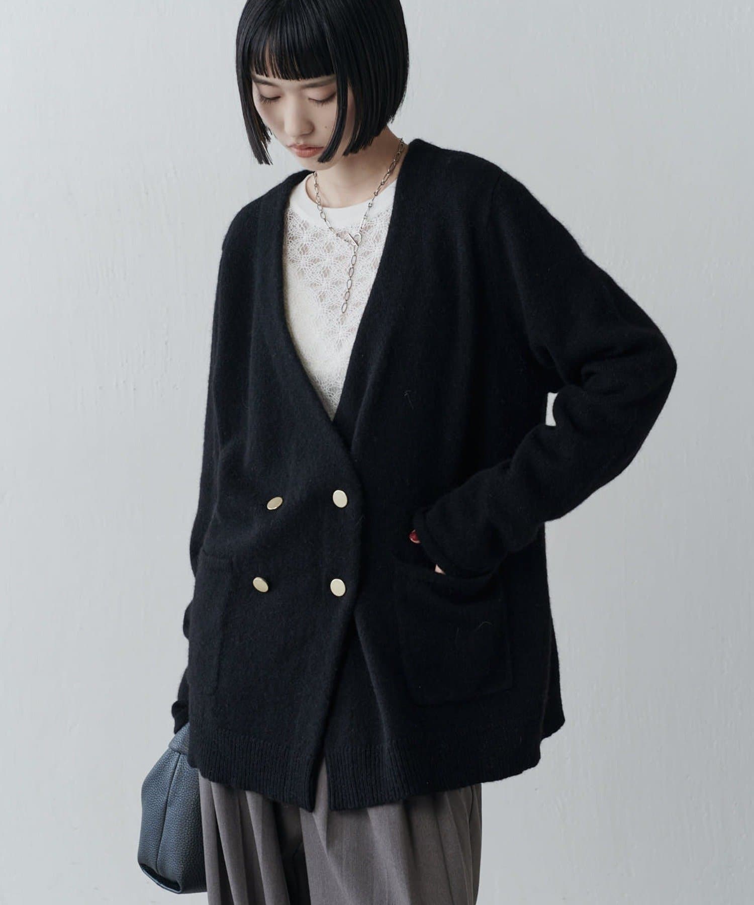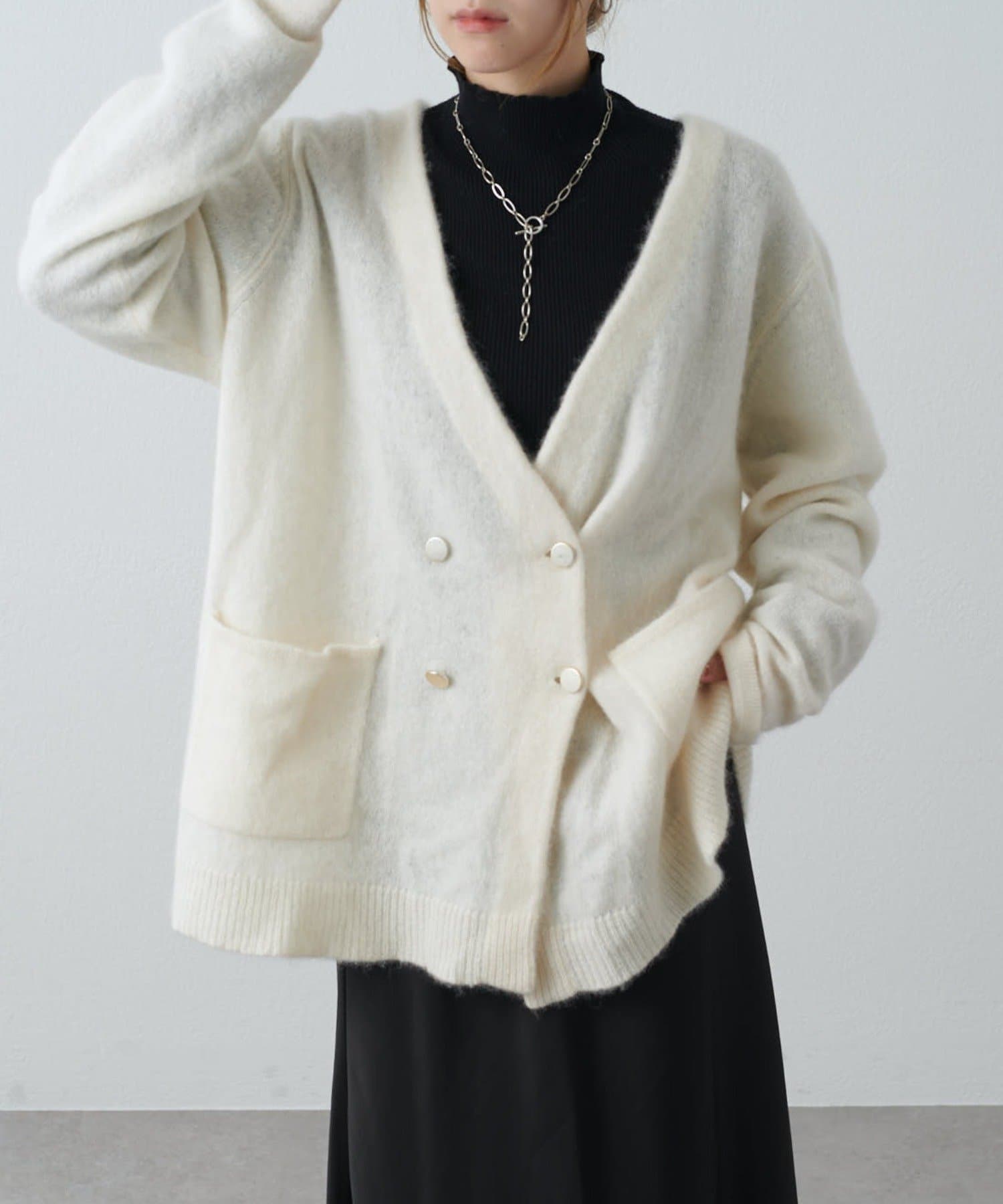 TOP > Lui's > レディース > トップス > ニット/セーター > ノーカラーヤクニットダブルジャケット