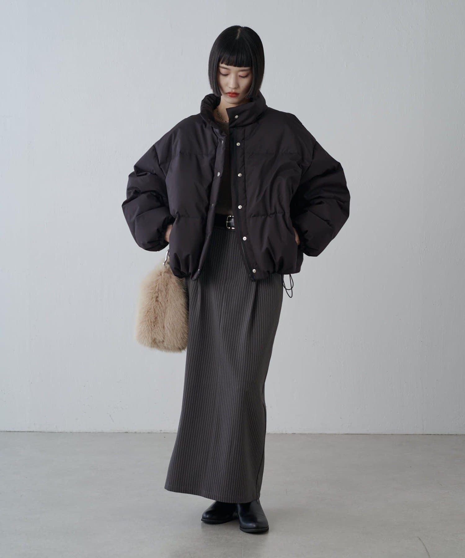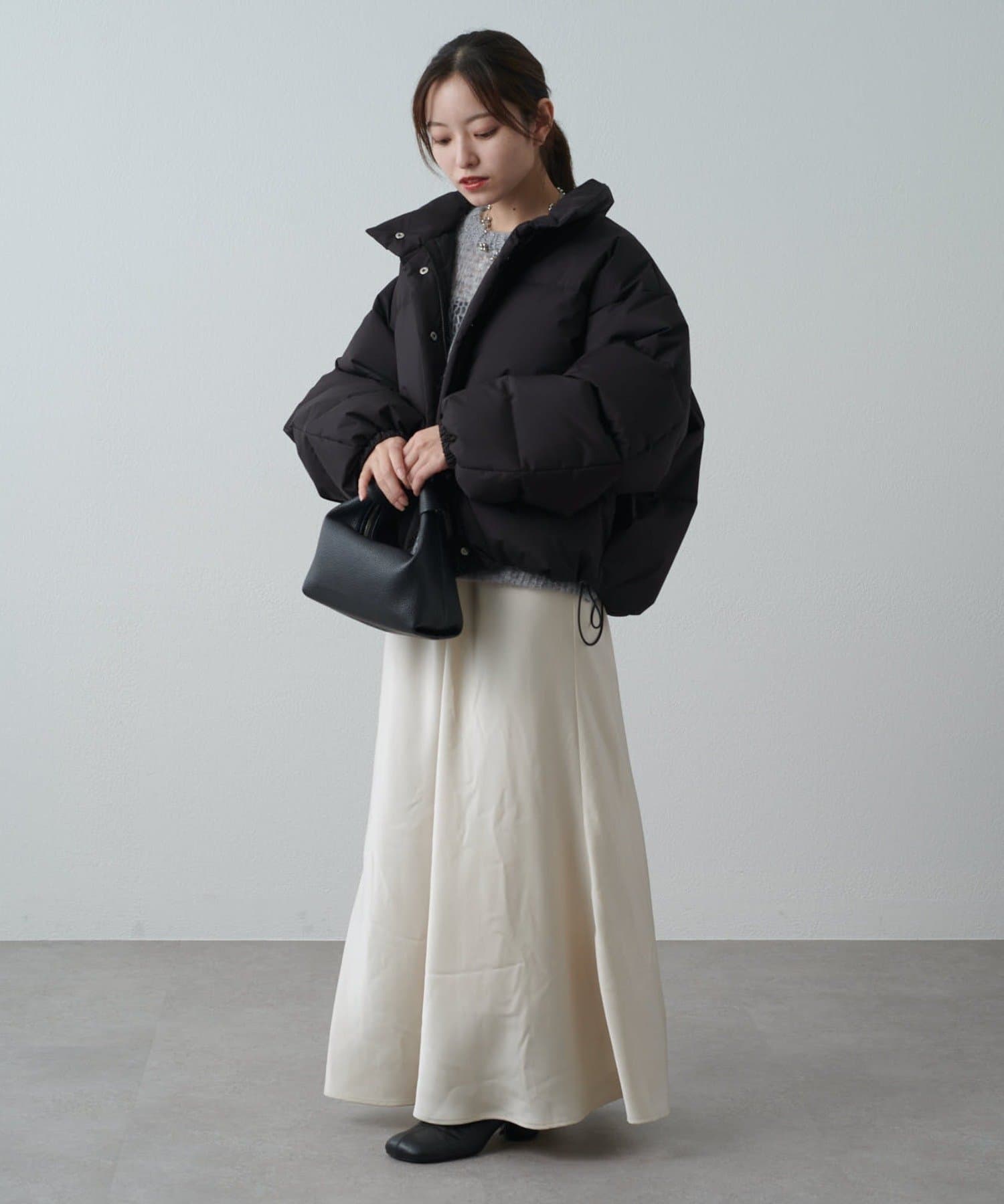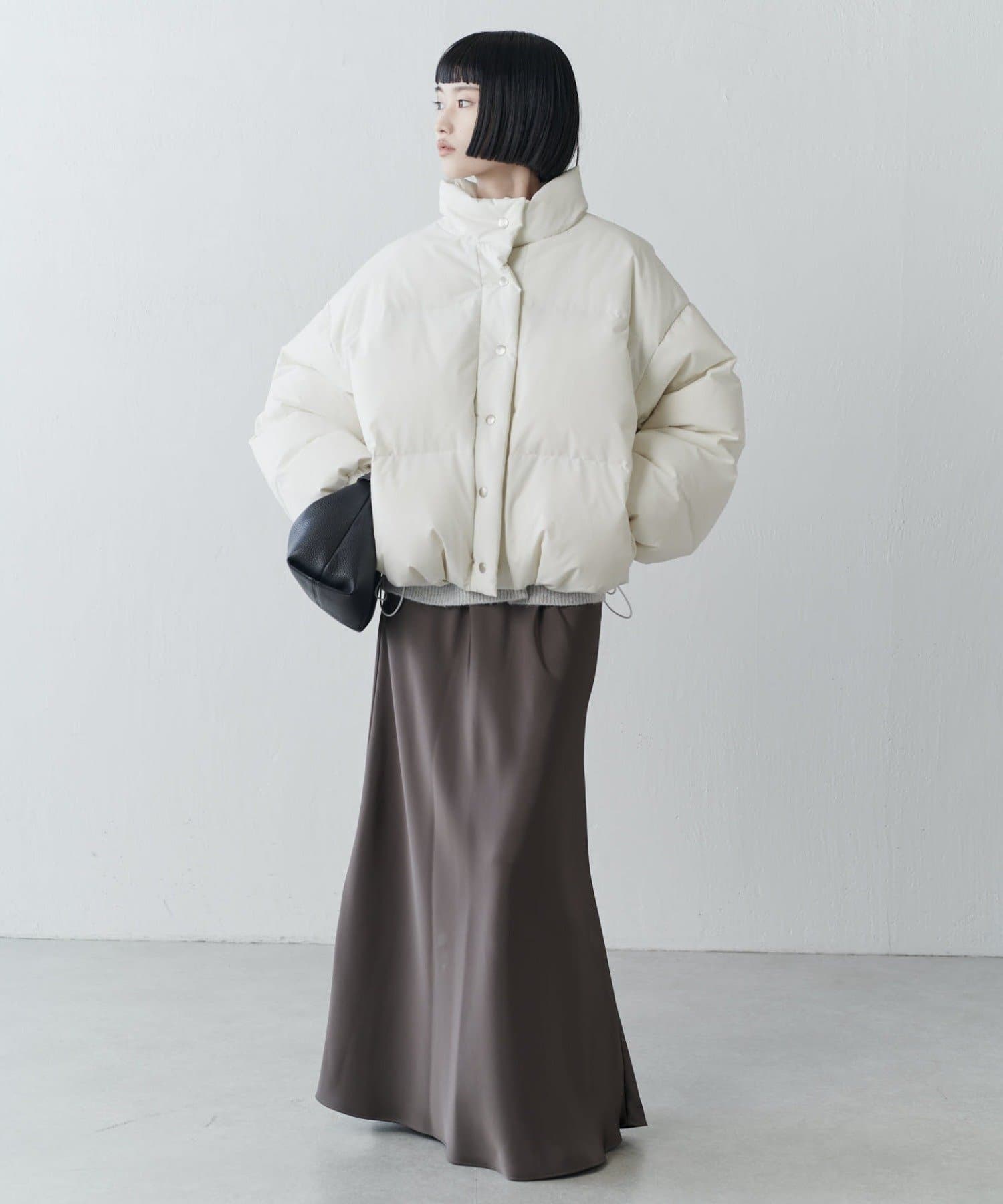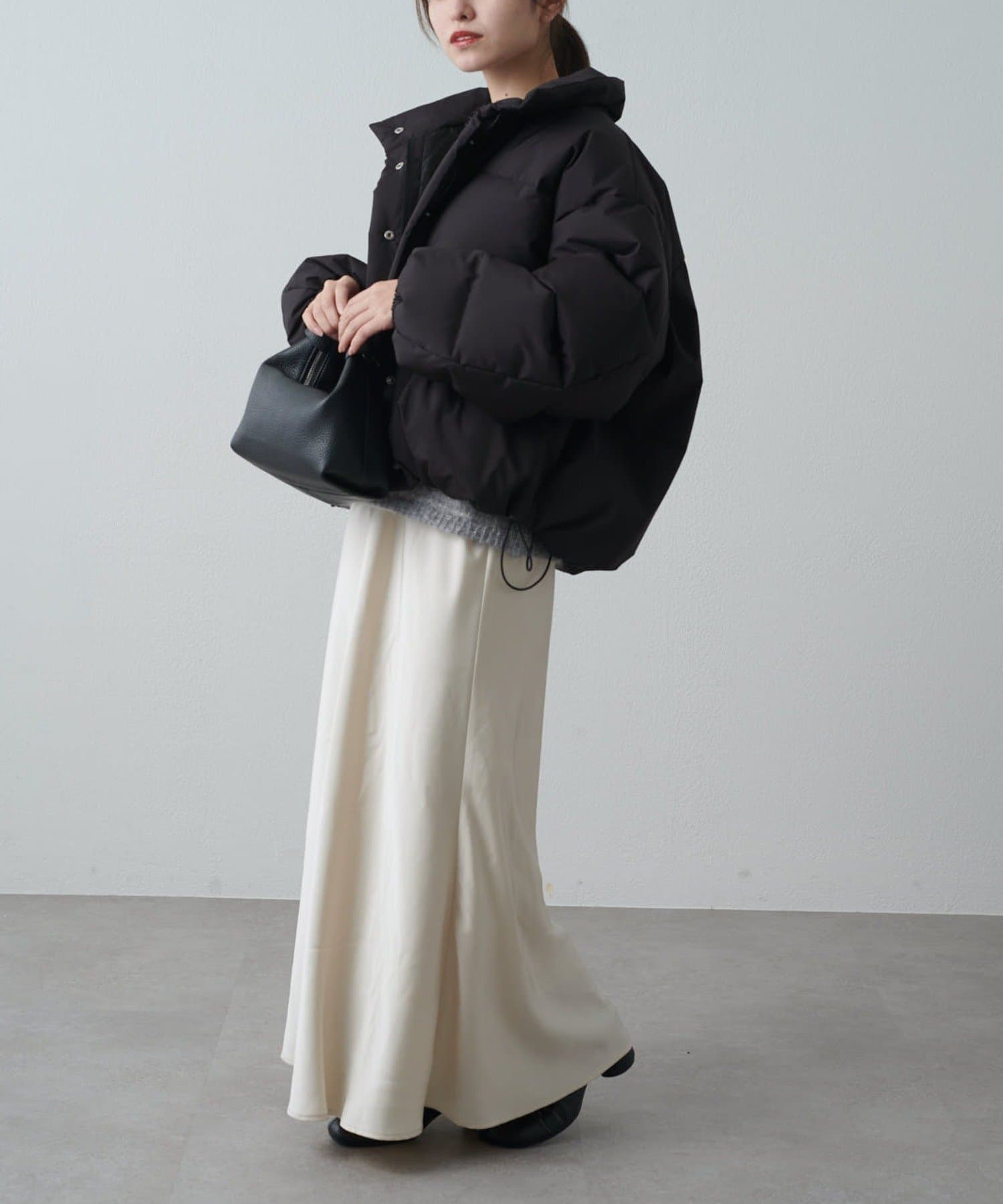 バランスの取れた丈感のダウンなので、スカートやデニム、ワイドスラックスと幅広いボトムスと相性が良いダウンとなっております。