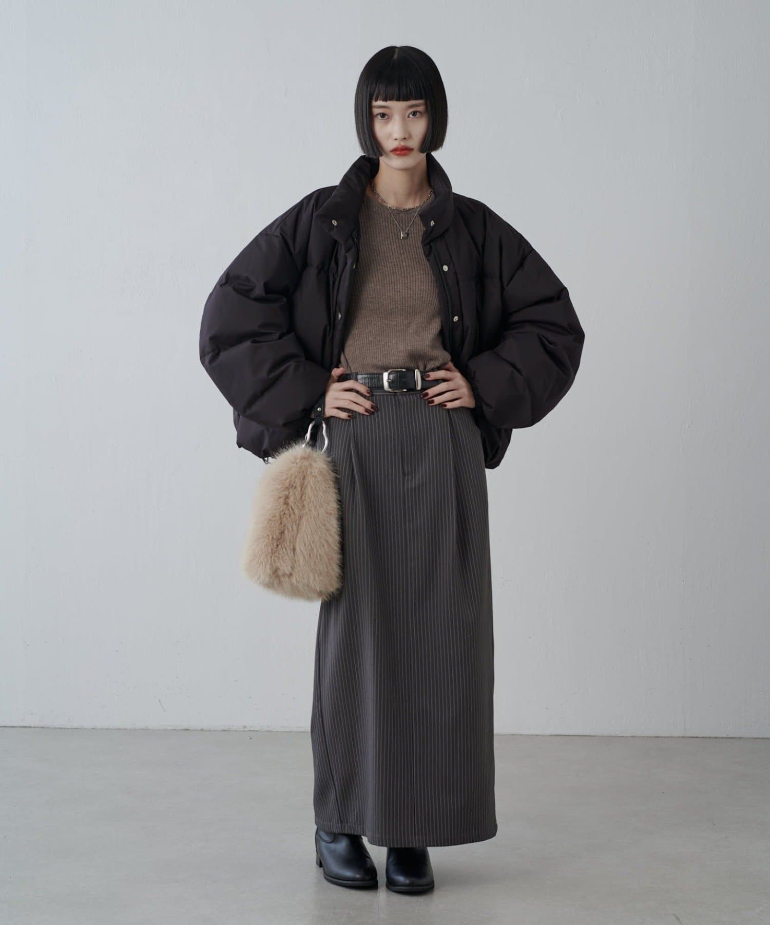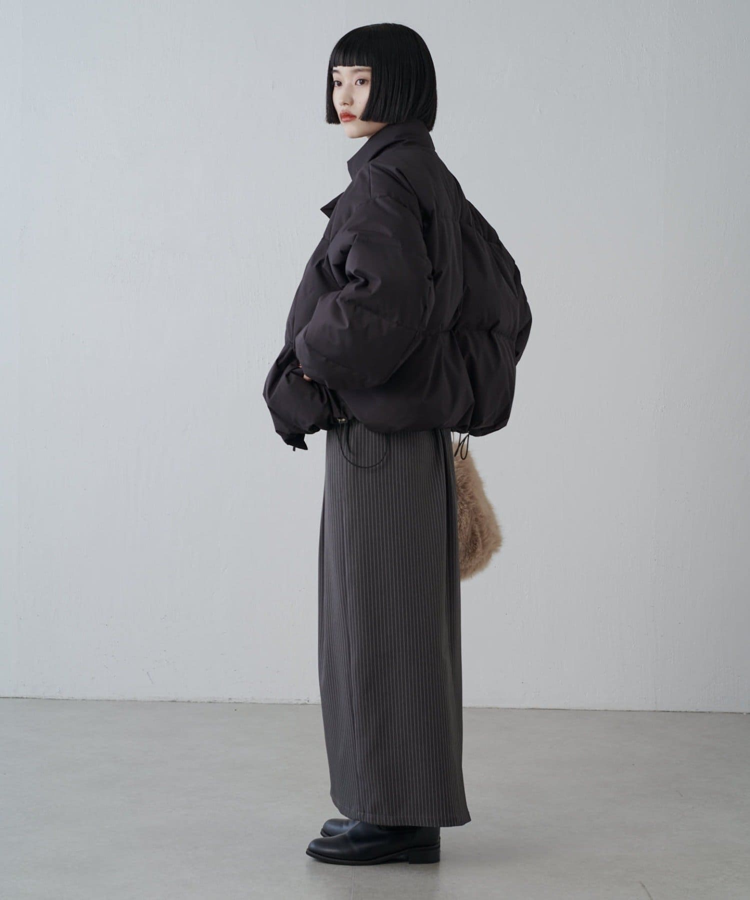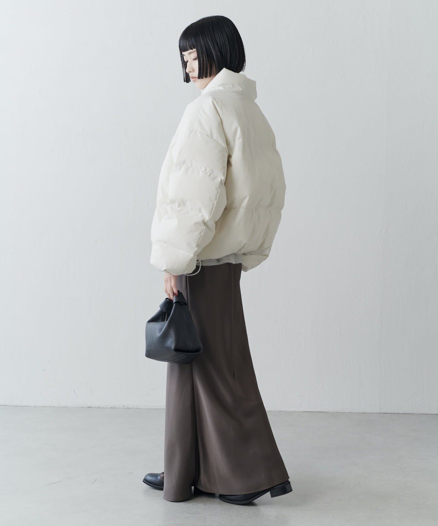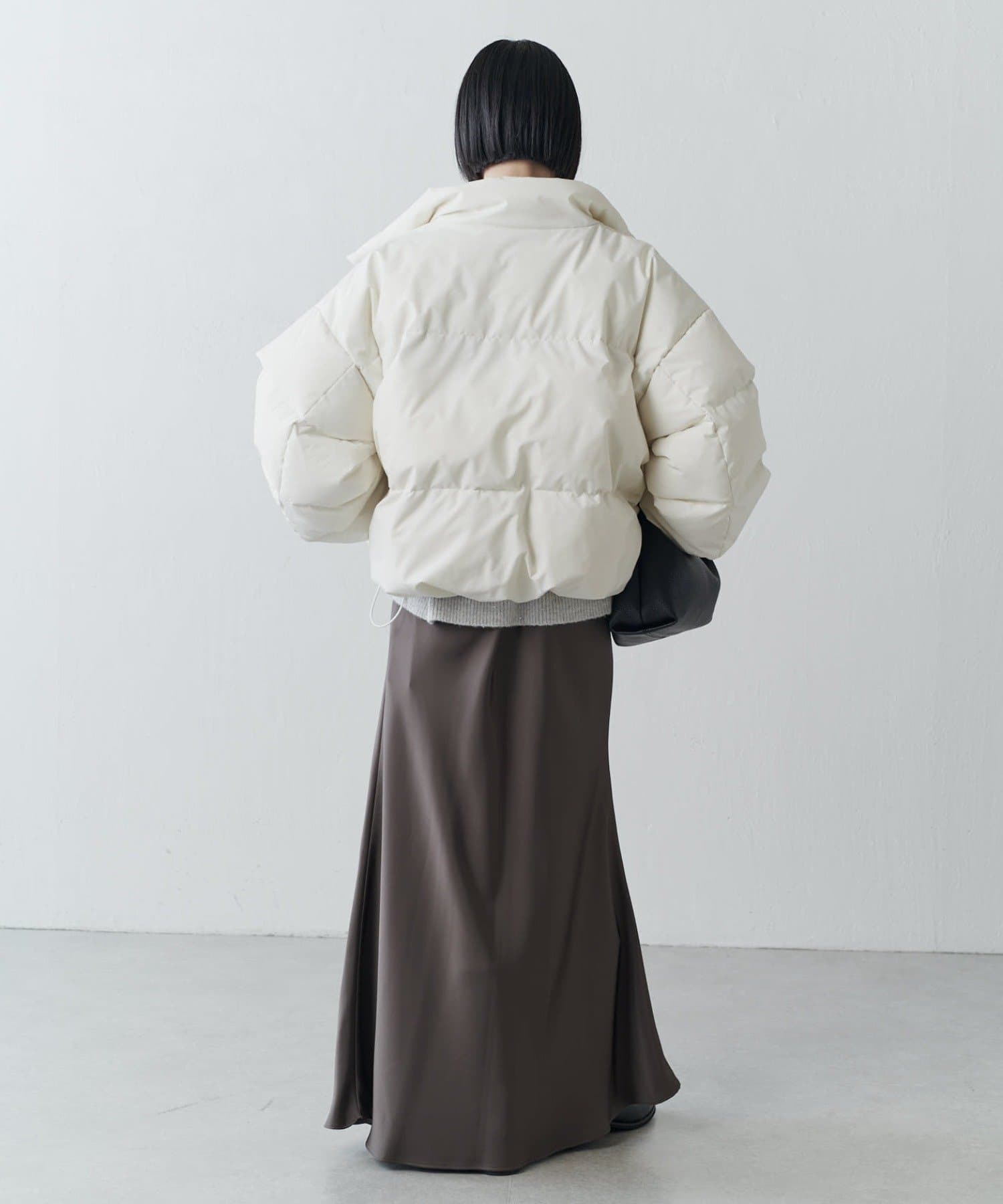 バランスの取れた丈感のダウンなので、スカートやデニム、ワイドスラックスと幅広いボトムスと相性が良いダウンとなっております。