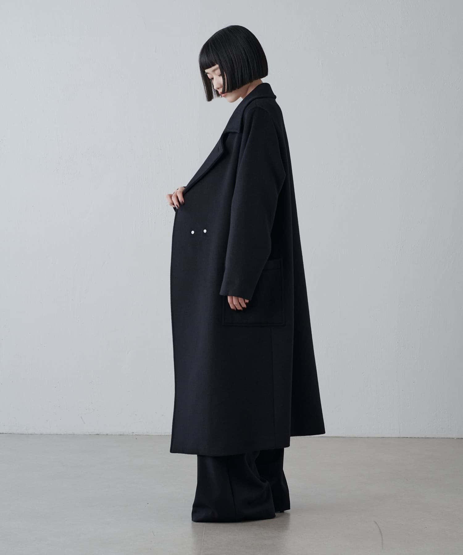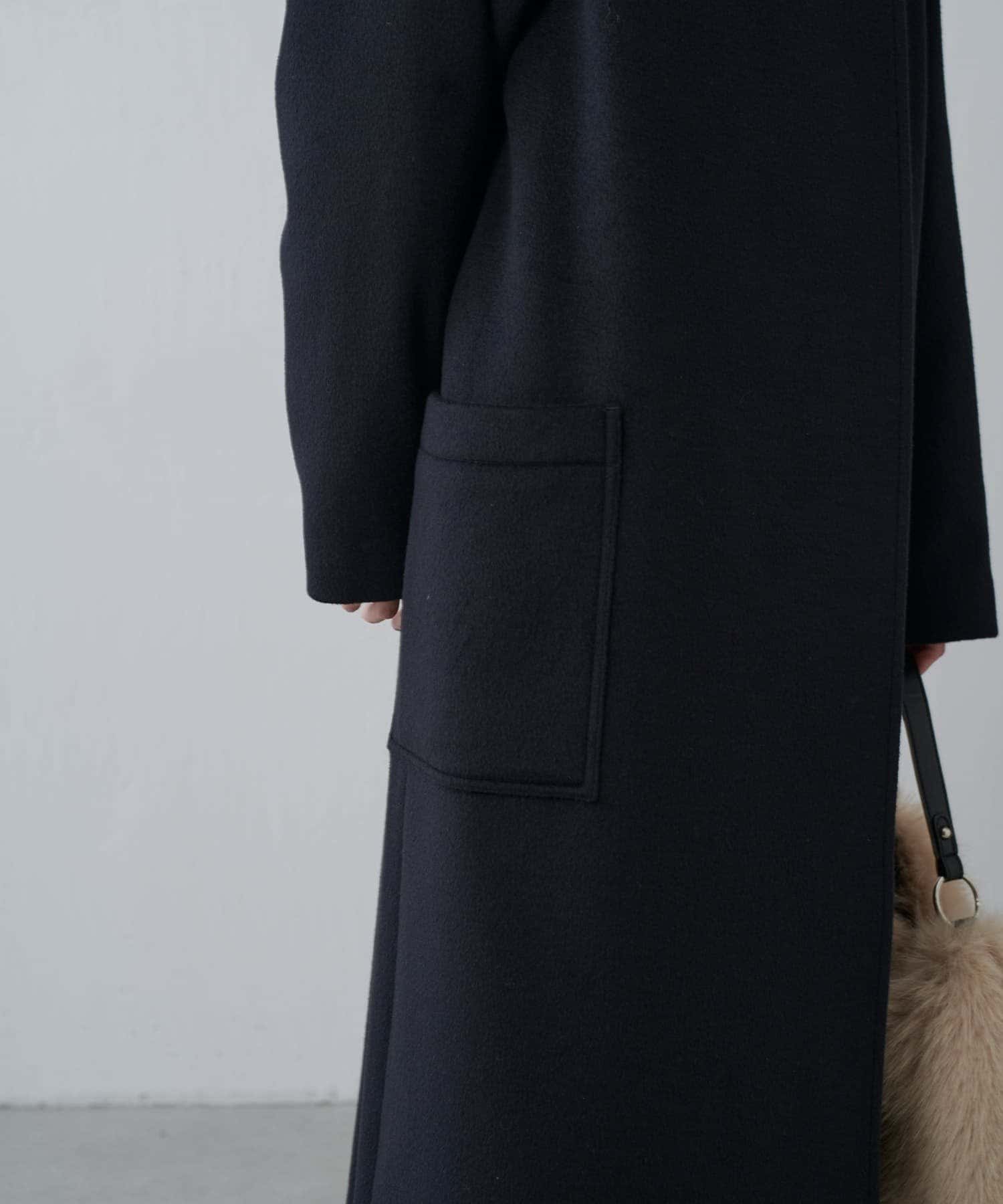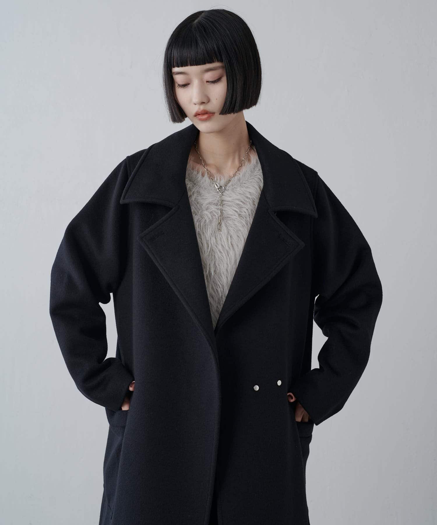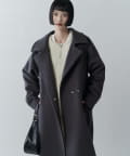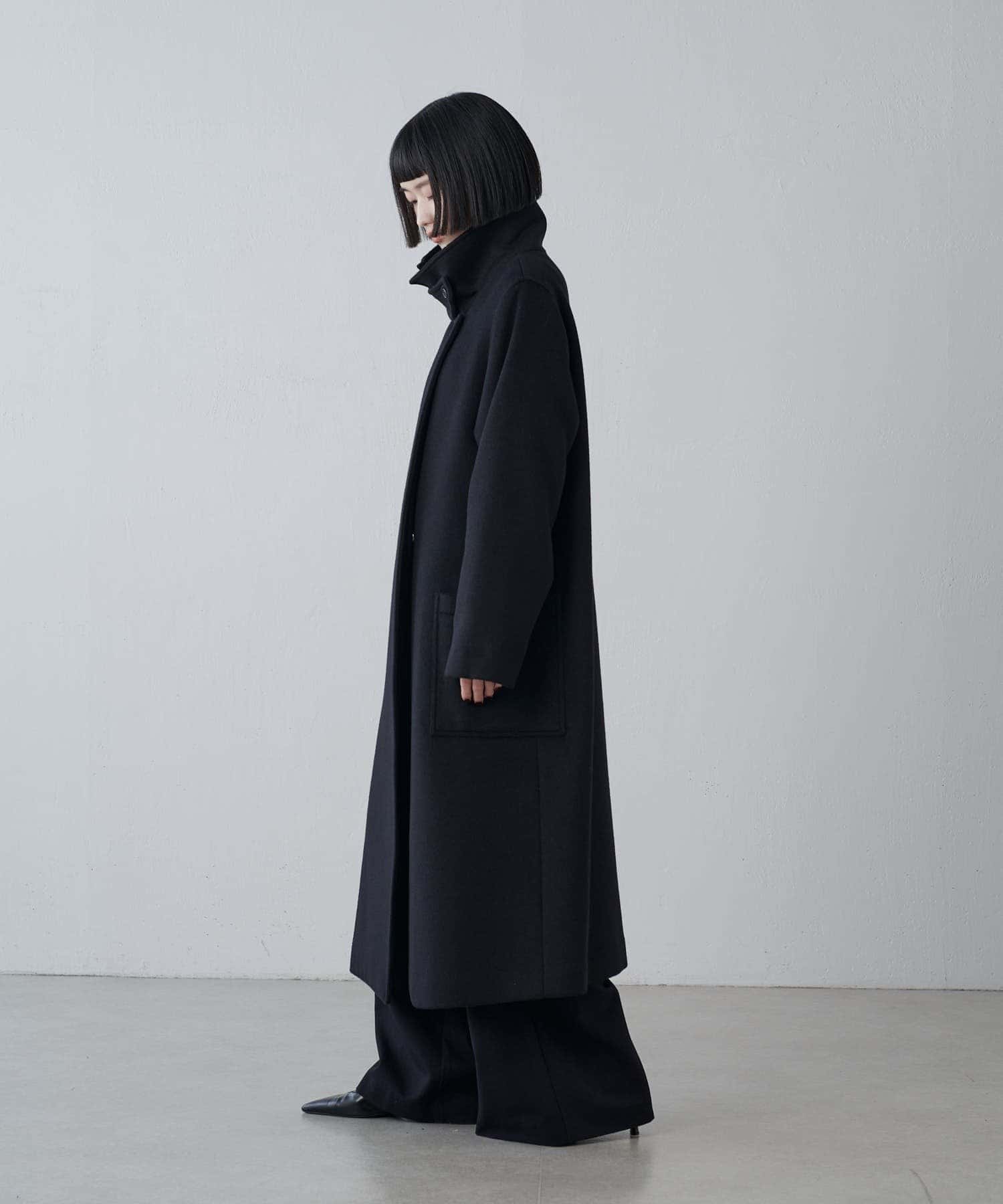襟部分を立ち上げてチンストラップを留めることで、ハイネックコートとしても使って頂けます。