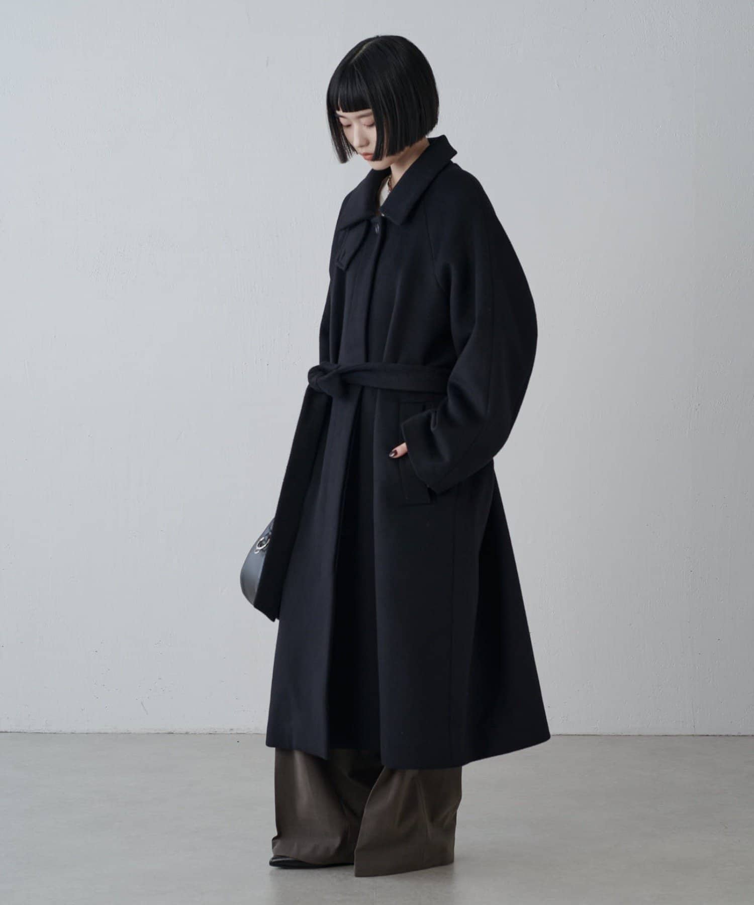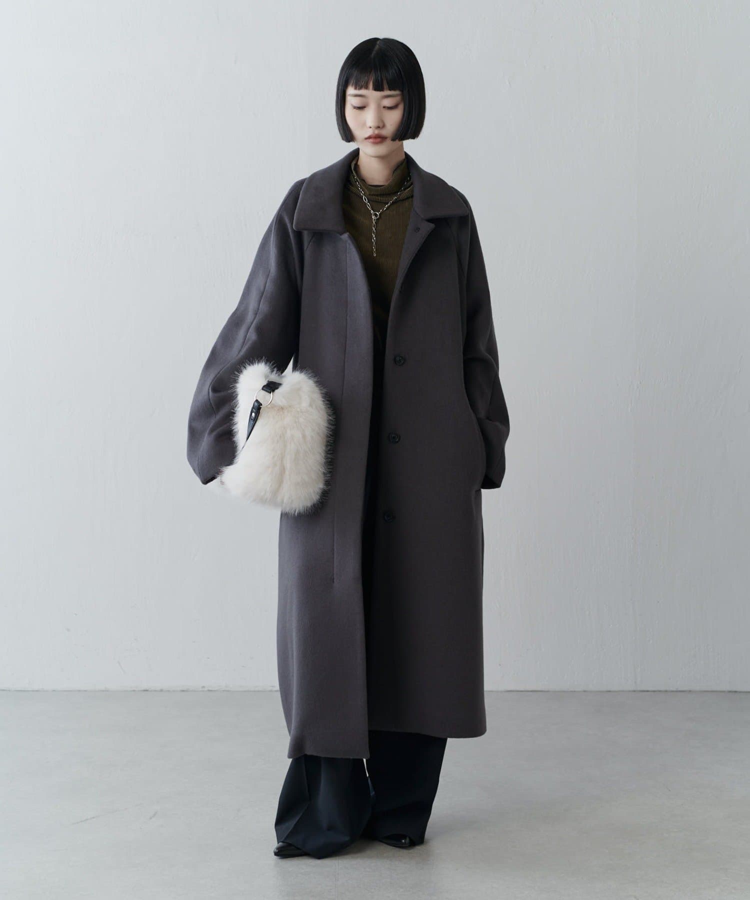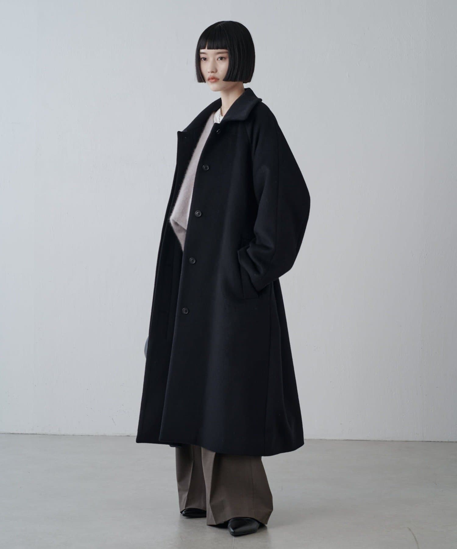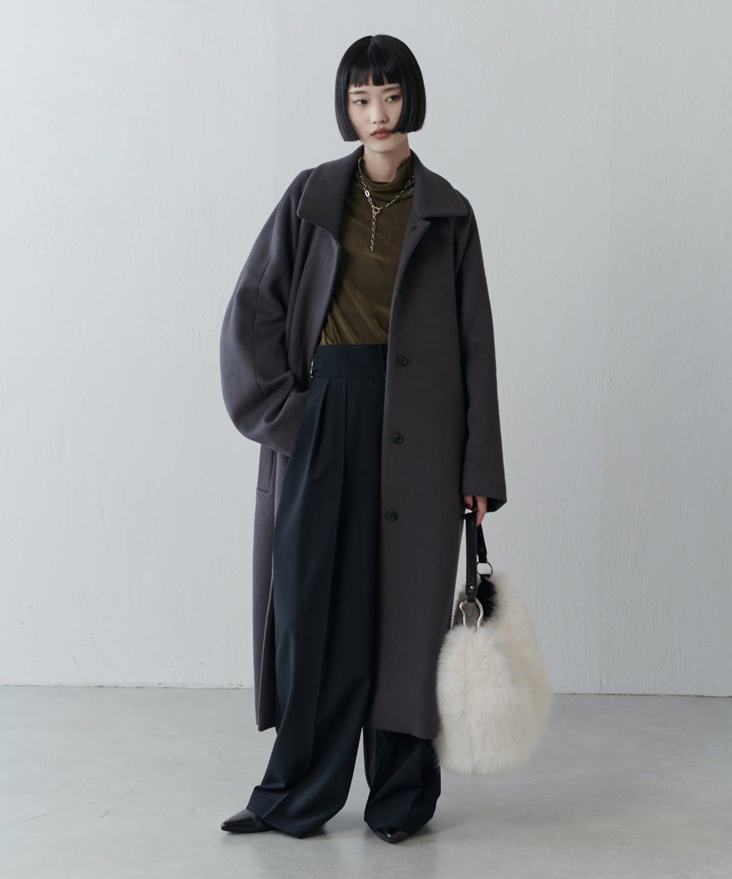 ボリューム感のある袖と、オーバーサイズでバサッと羽織れるサイズ感がほかにない高級感抜群のロングコート。