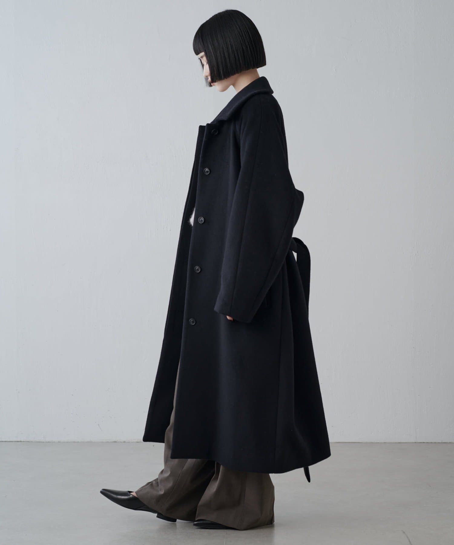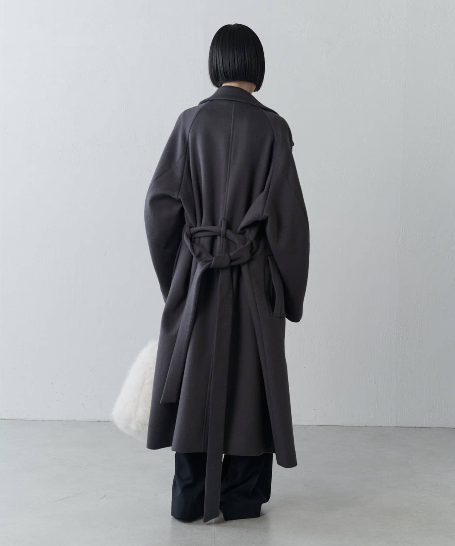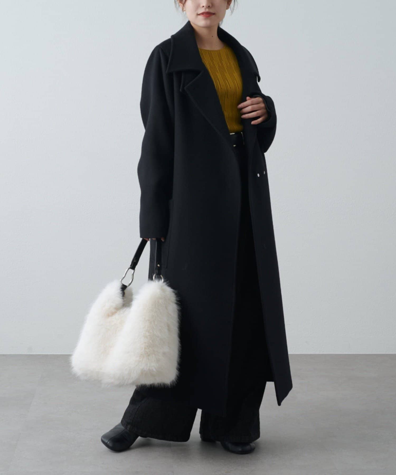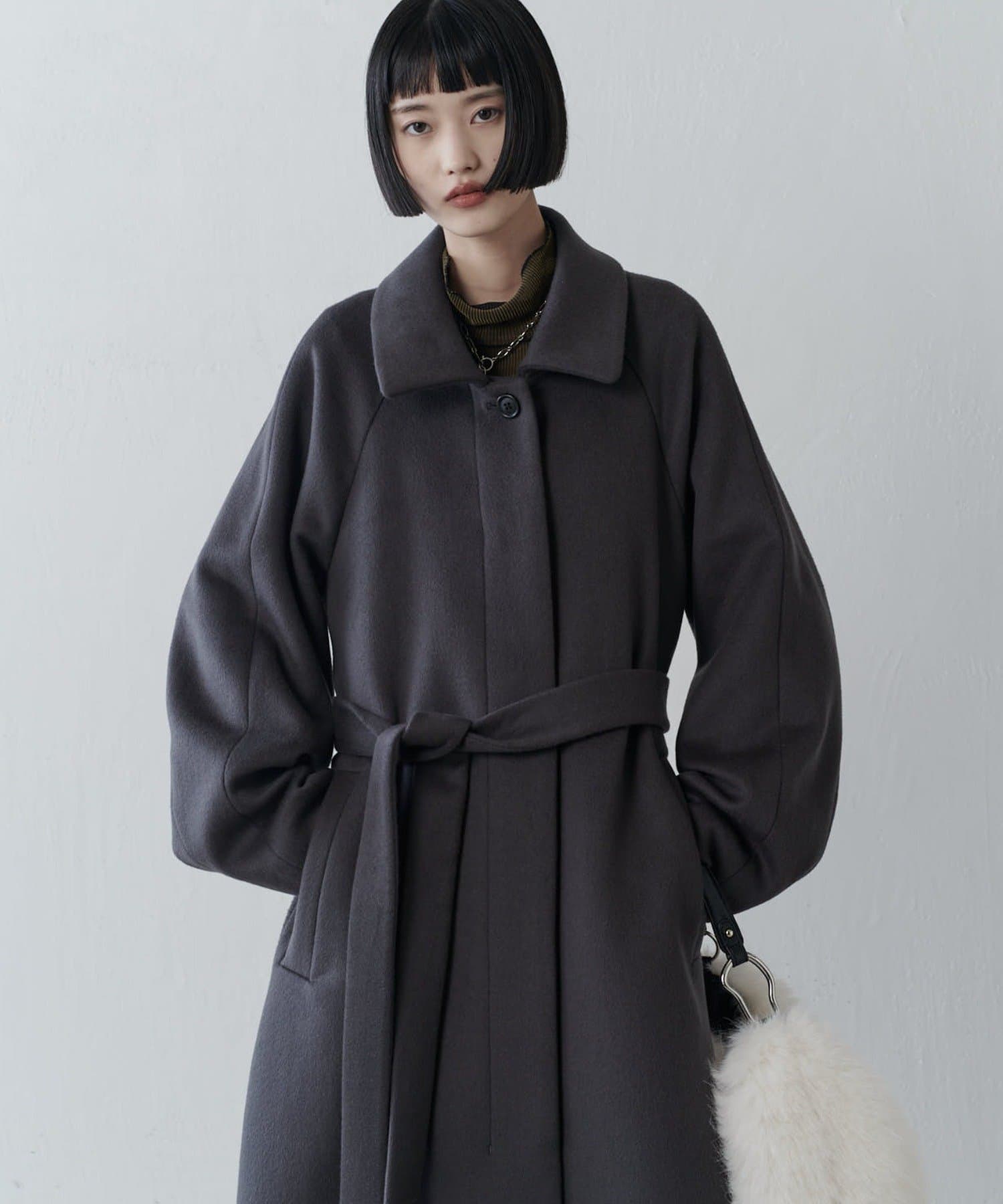 ボリューム感のある袖と、オーバーサイズでバサッと羽織れるサイズ感がほかにない高級感抜群のロングコート。