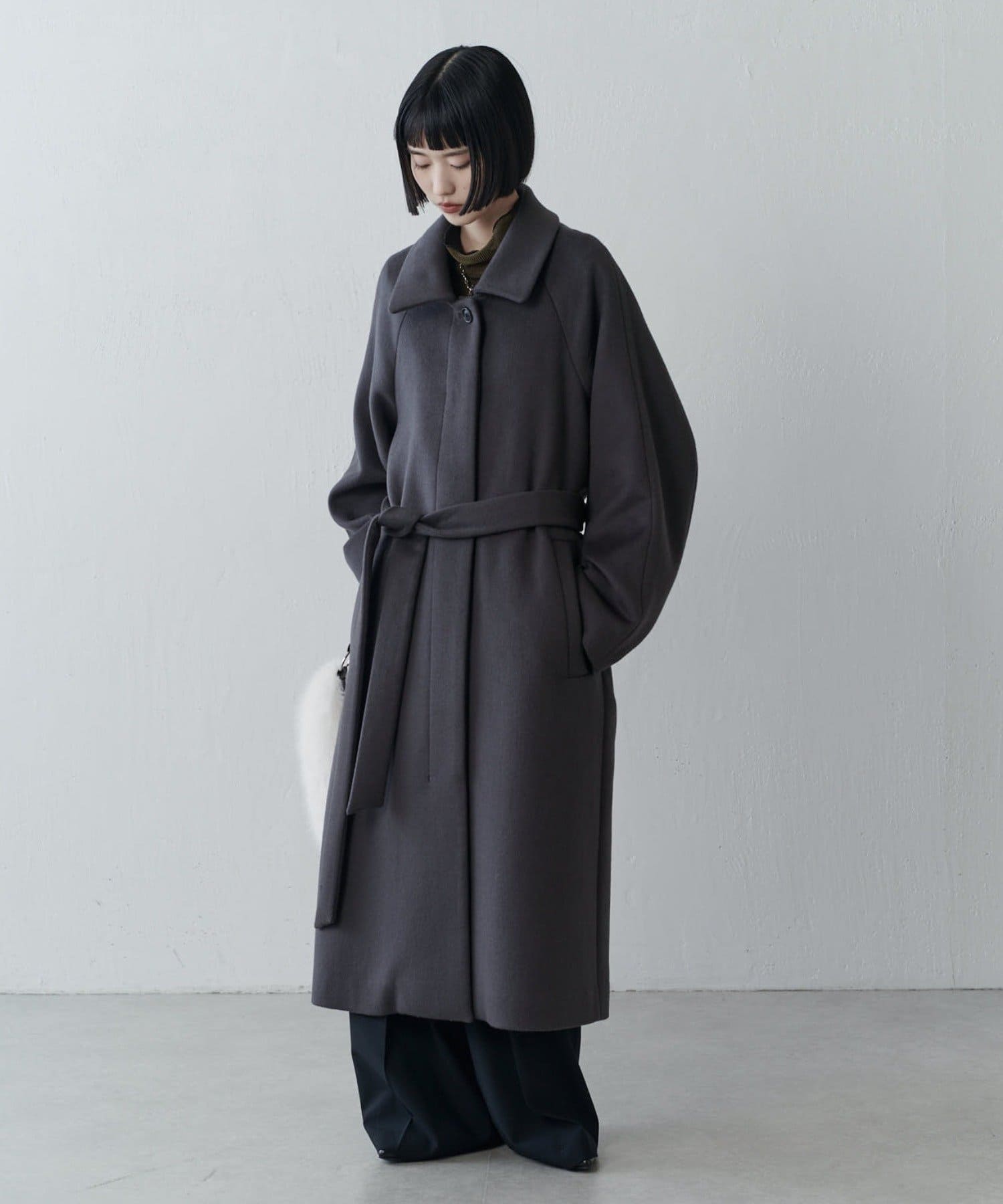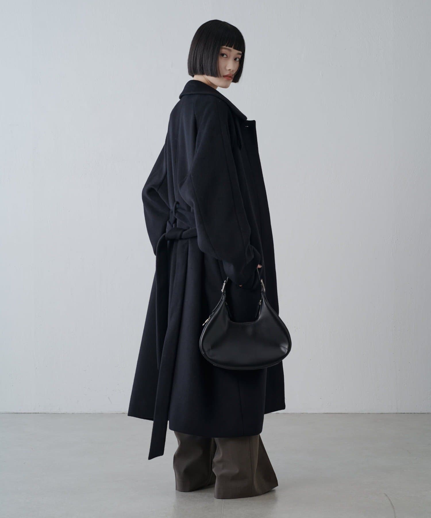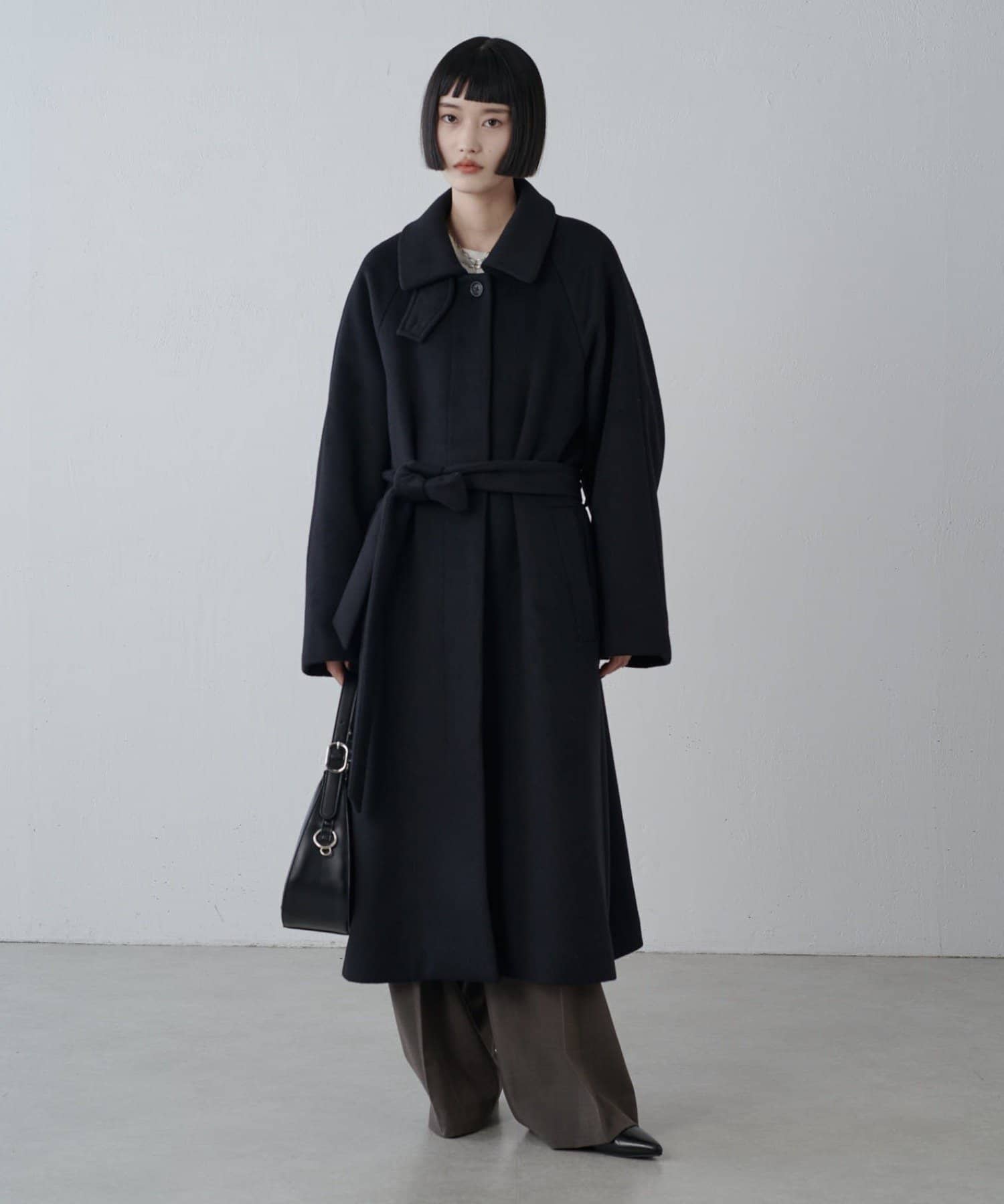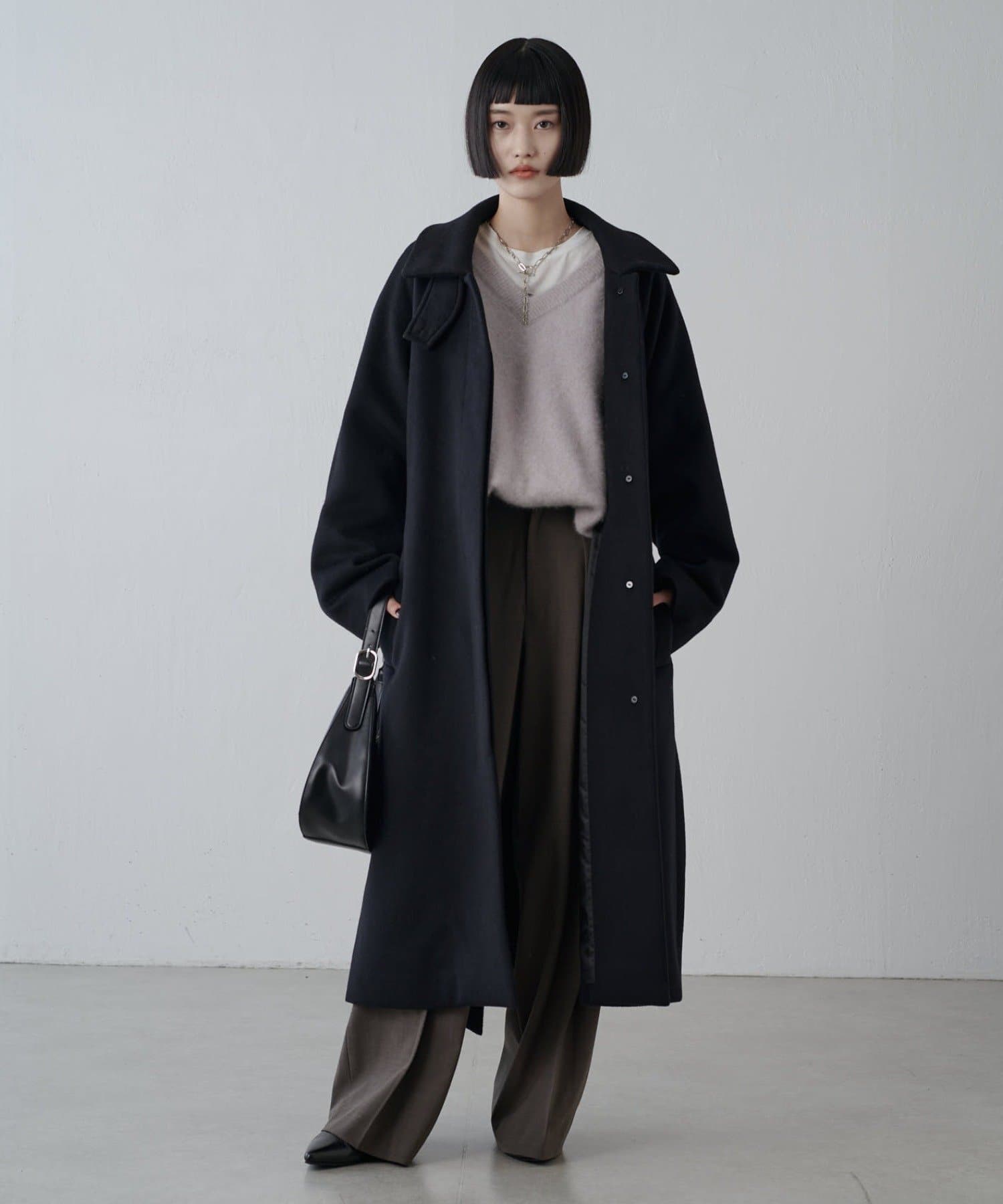 ボリューム感のある袖と、オーバーサイズでバサッと羽織れるサイズ感がほかにない高級感抜群のロングコート。