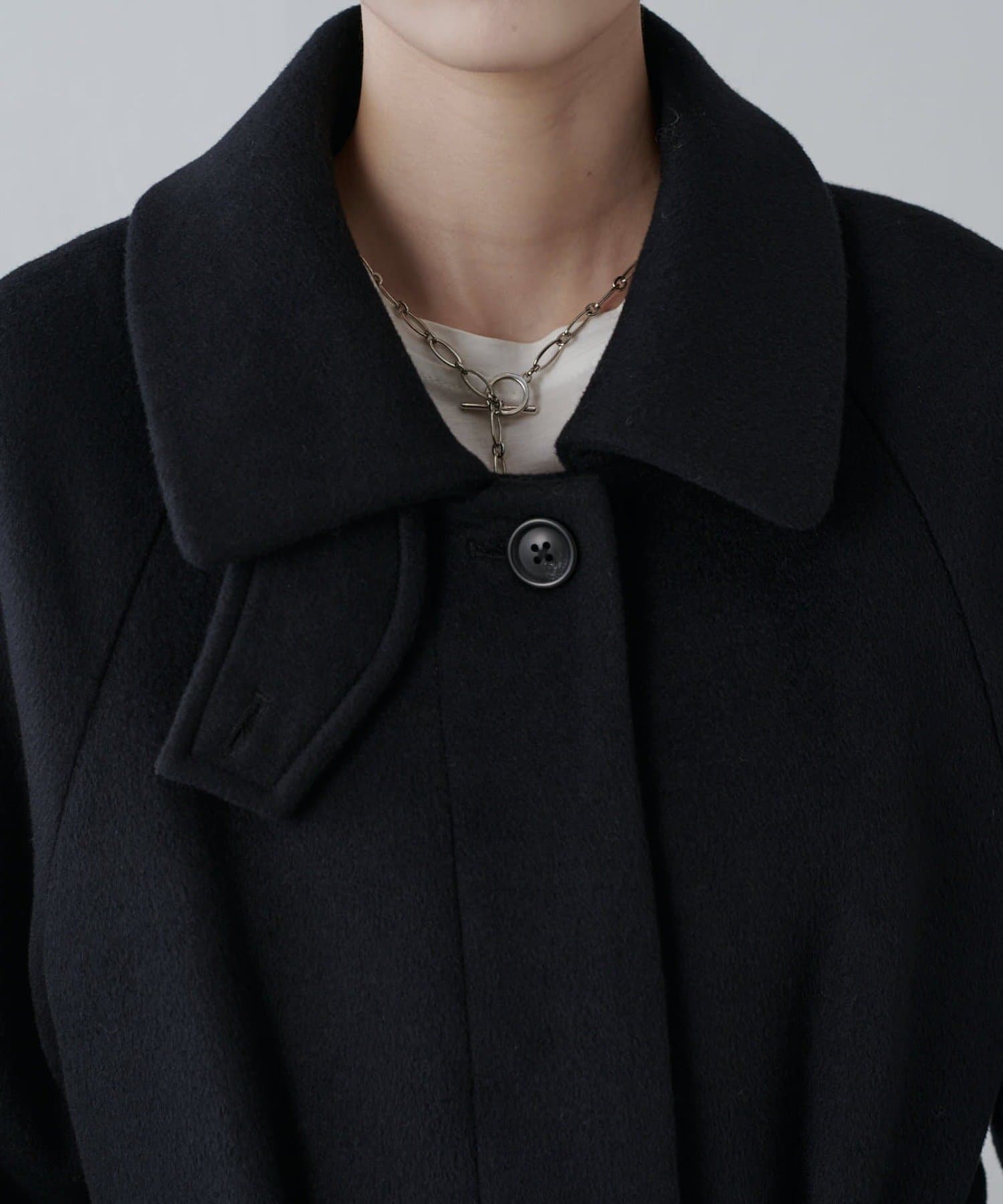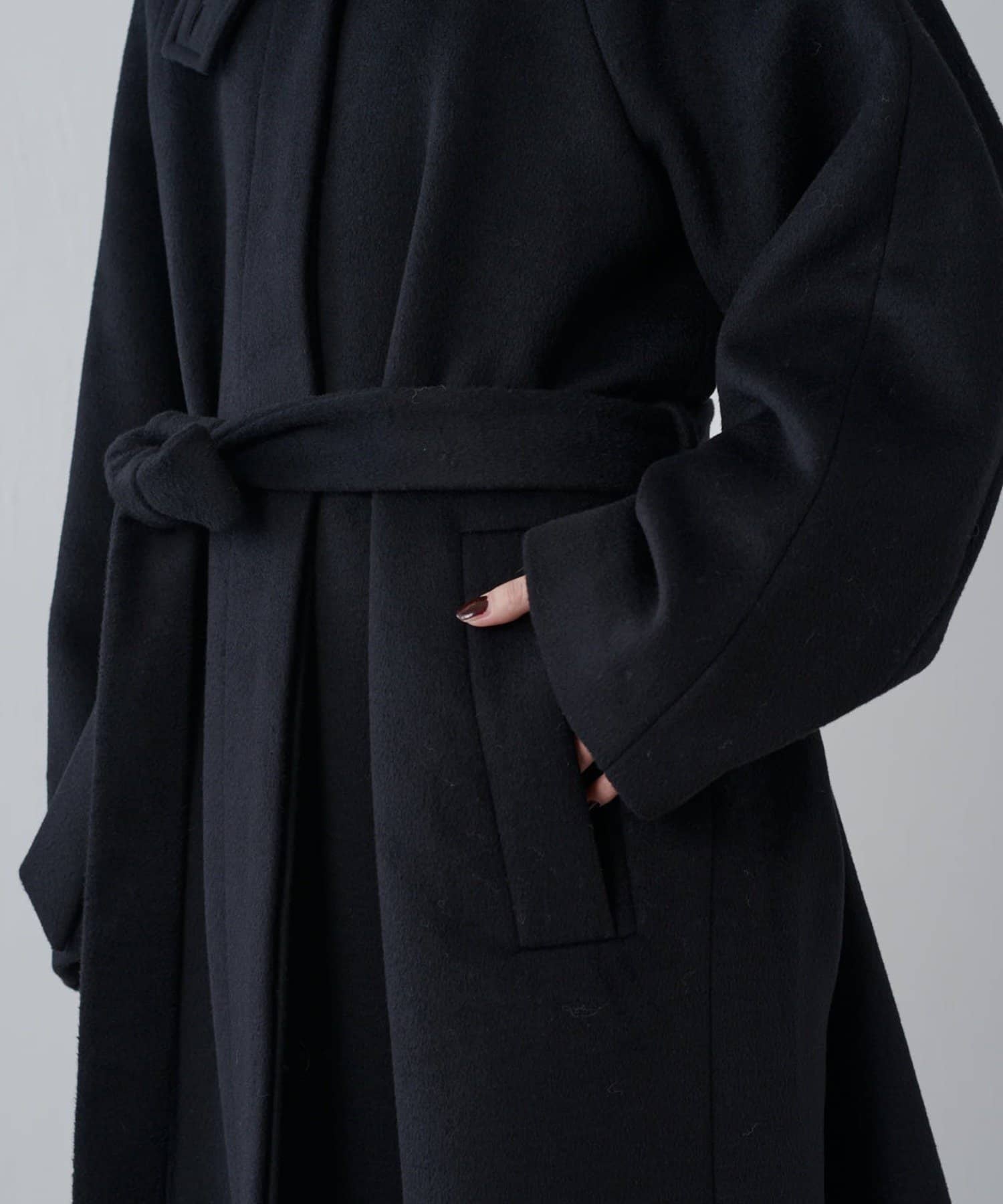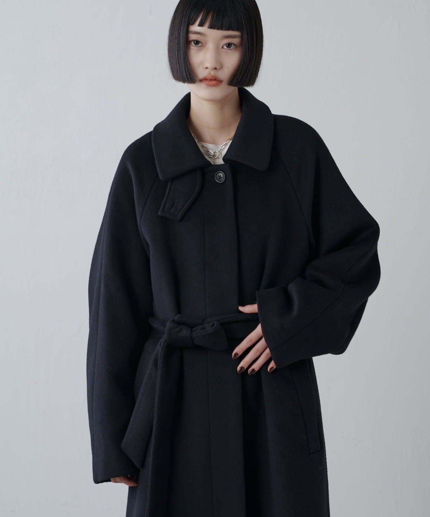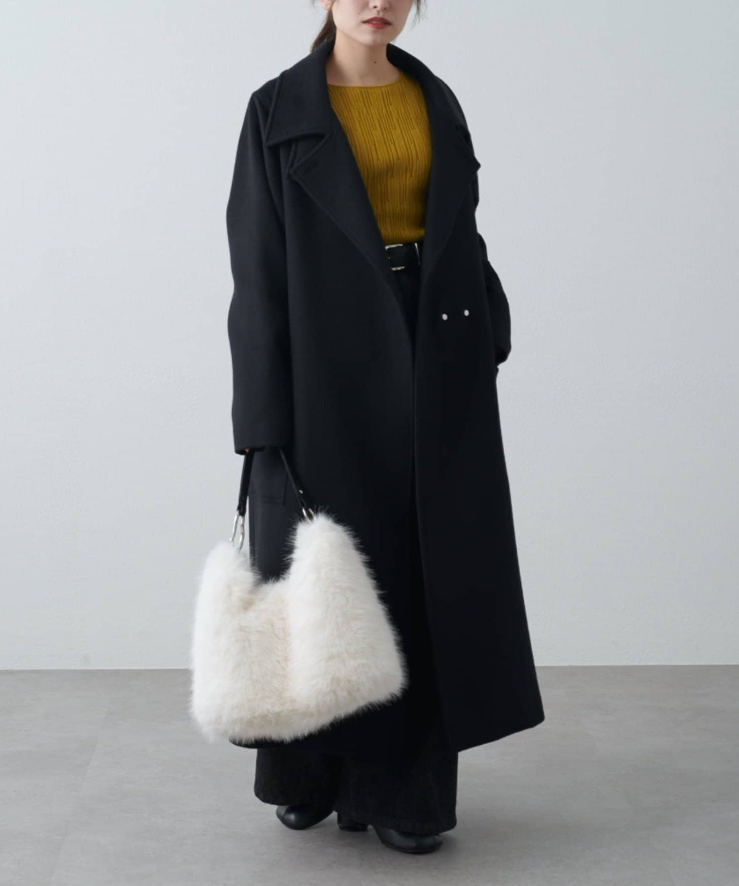ボリューム感のある袖と、オーバーサイズでバサッと羽織れるサイズ感がほかにない高級感抜群のロングコート。