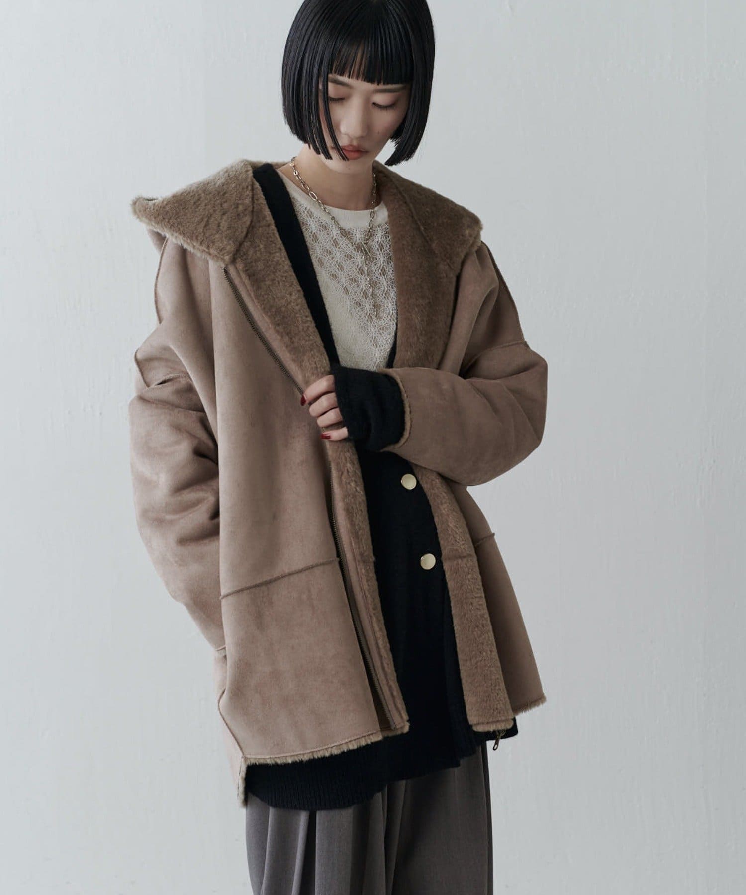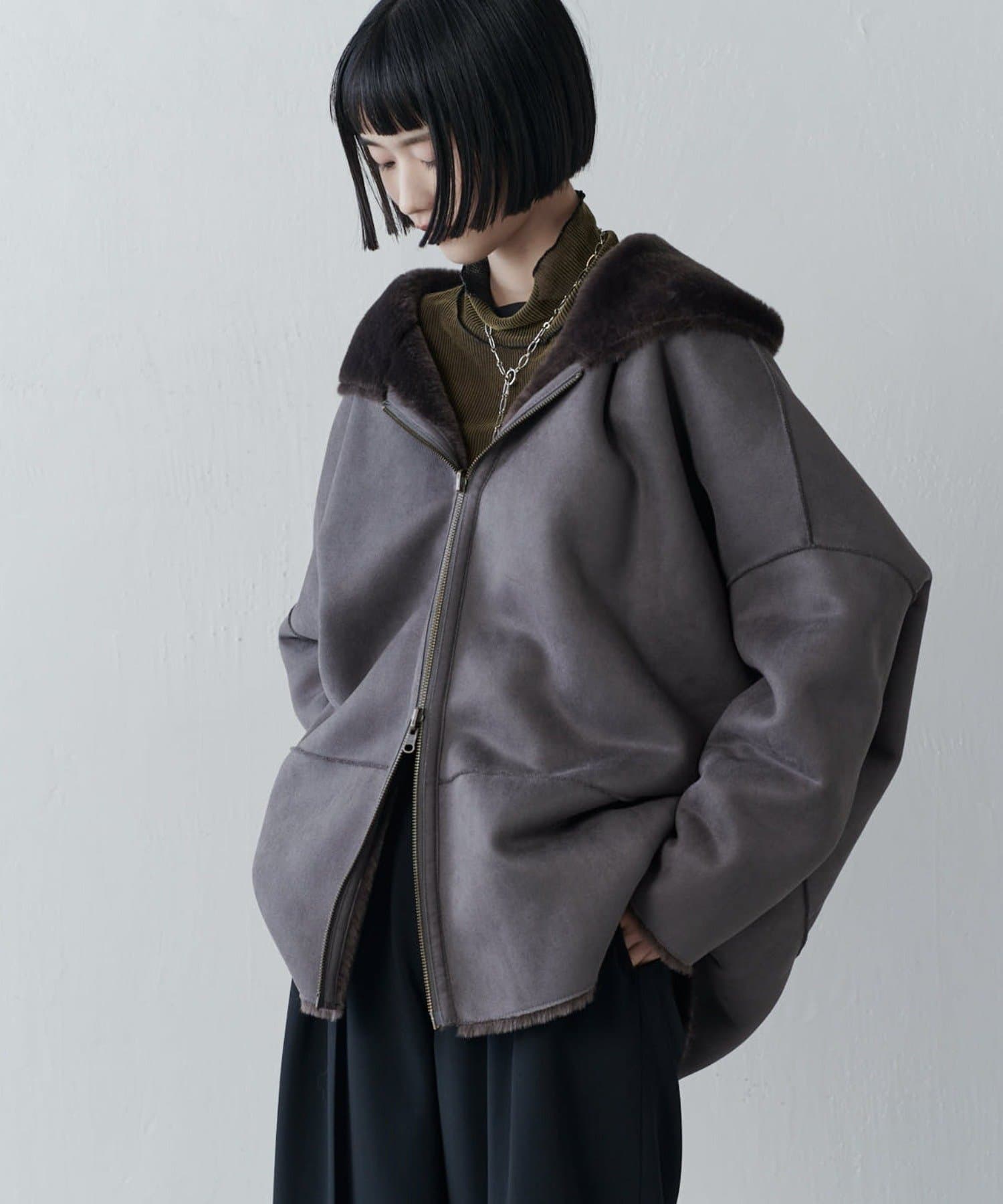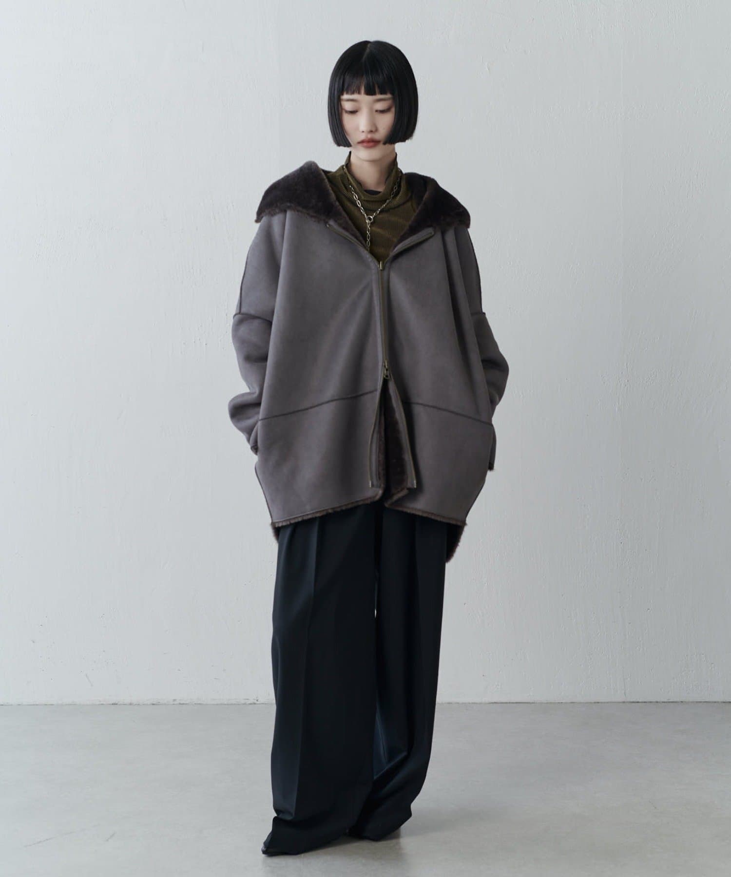 大人カジュアルスタイルにおすすめのフェイクムートンブルゾン。