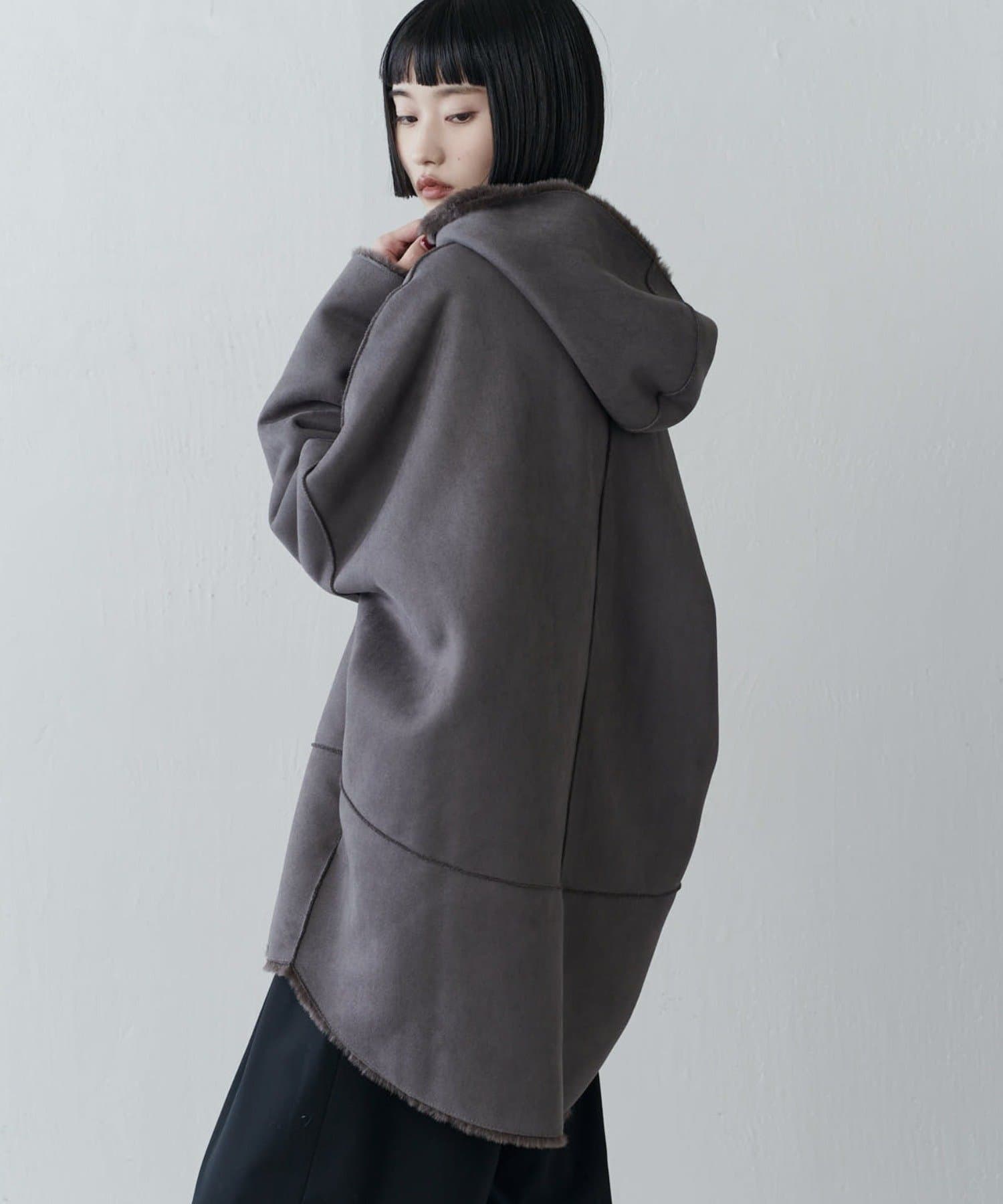 裾にかけてややコクーンシルエットに仕上げることスッキリと着こなせます。