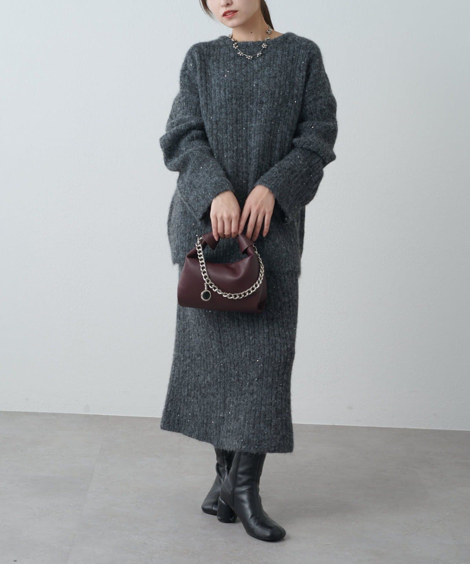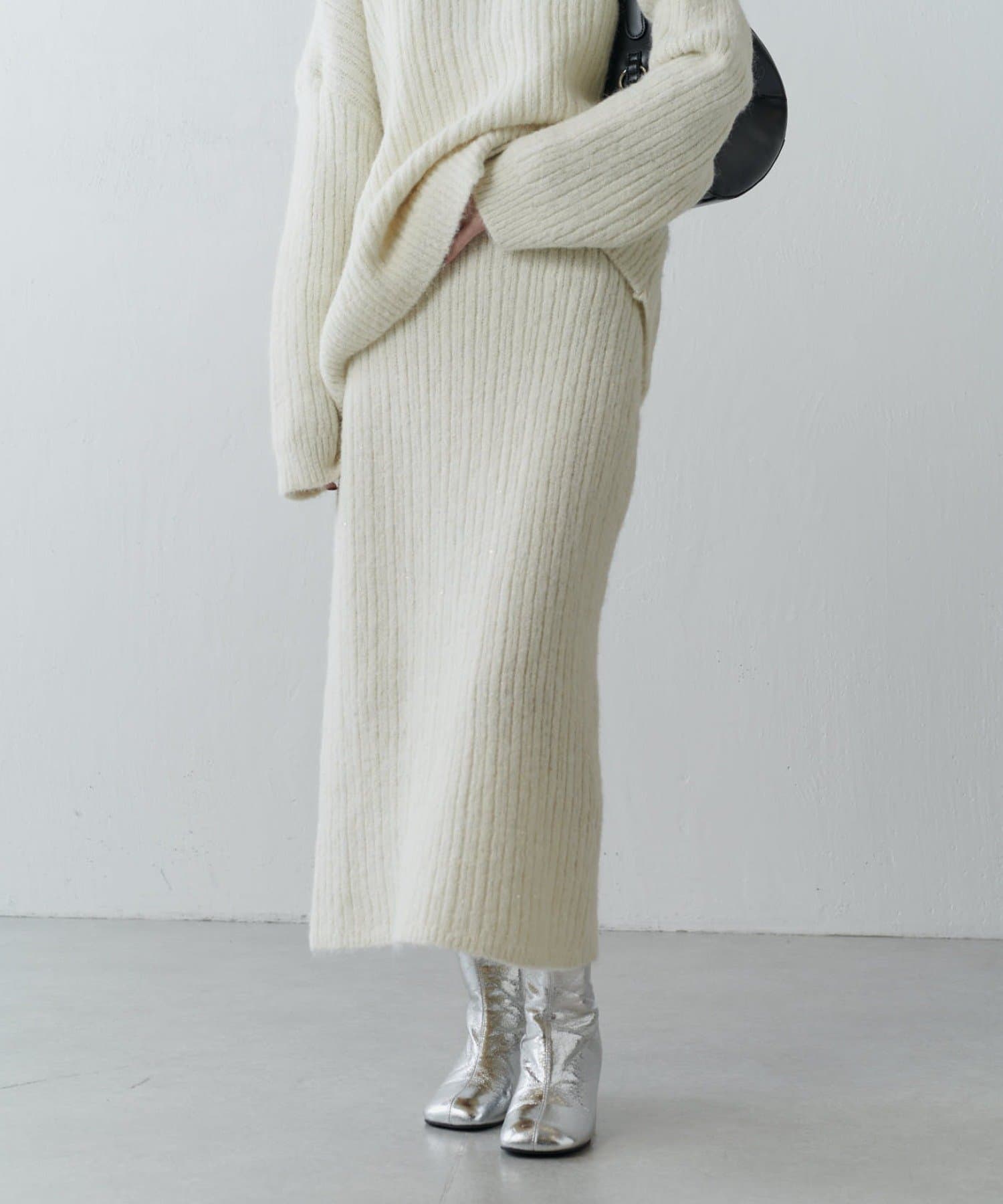 セットできるのはもちろん、ニットはデニム合わせもロングスカート合わせも可能です。