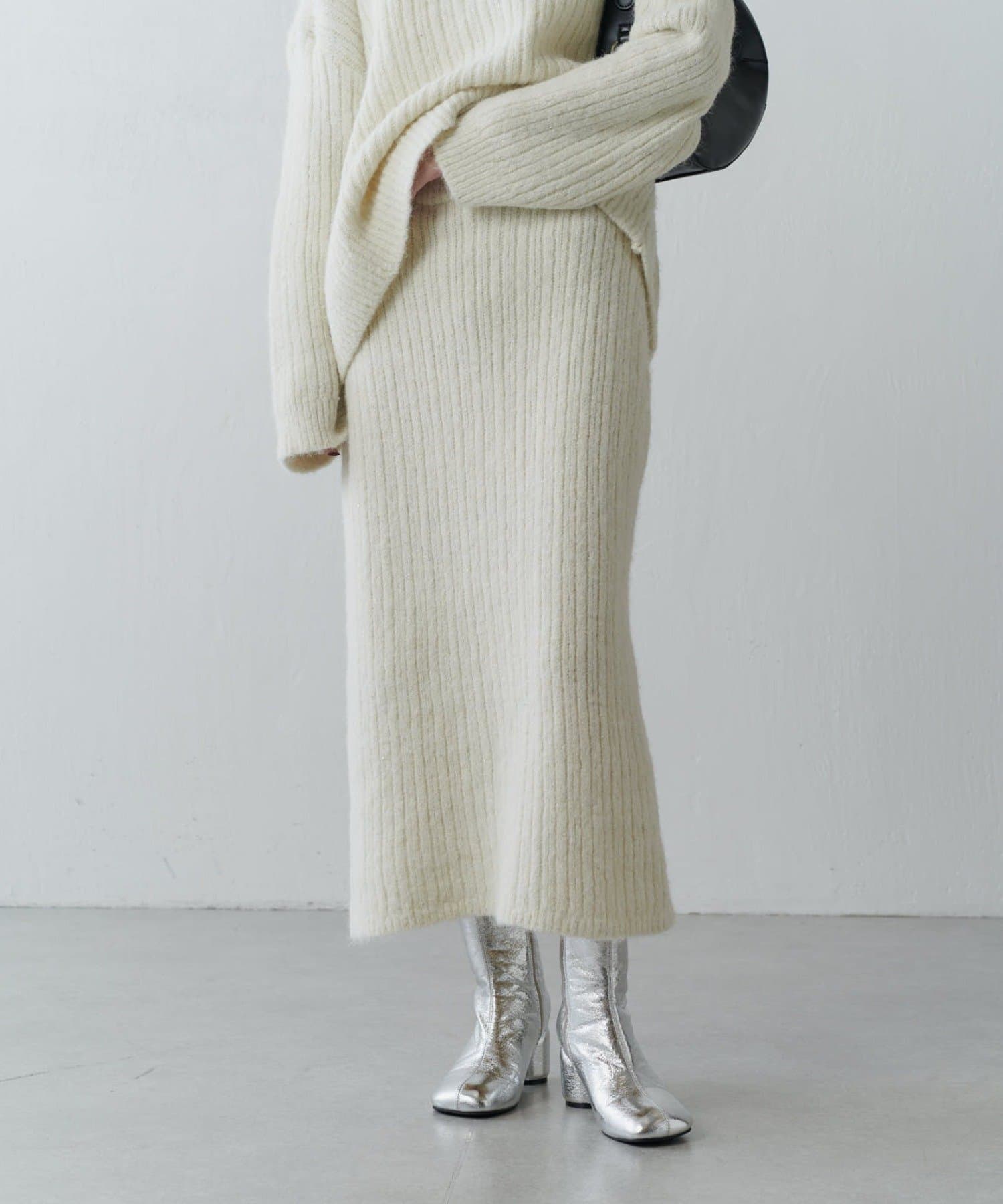 リラックス感があり、着ごちも抜群でゆったりなリブニットと、すっきりと下半身を綺麗に魅せてくれるスカートのバランスが良い