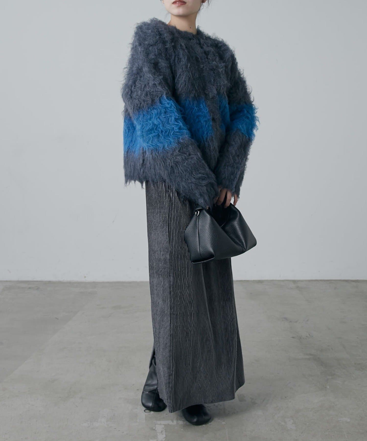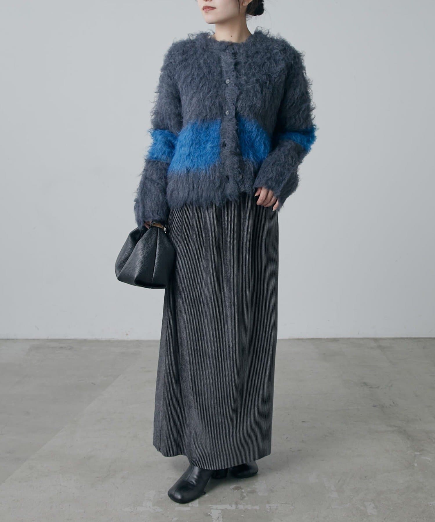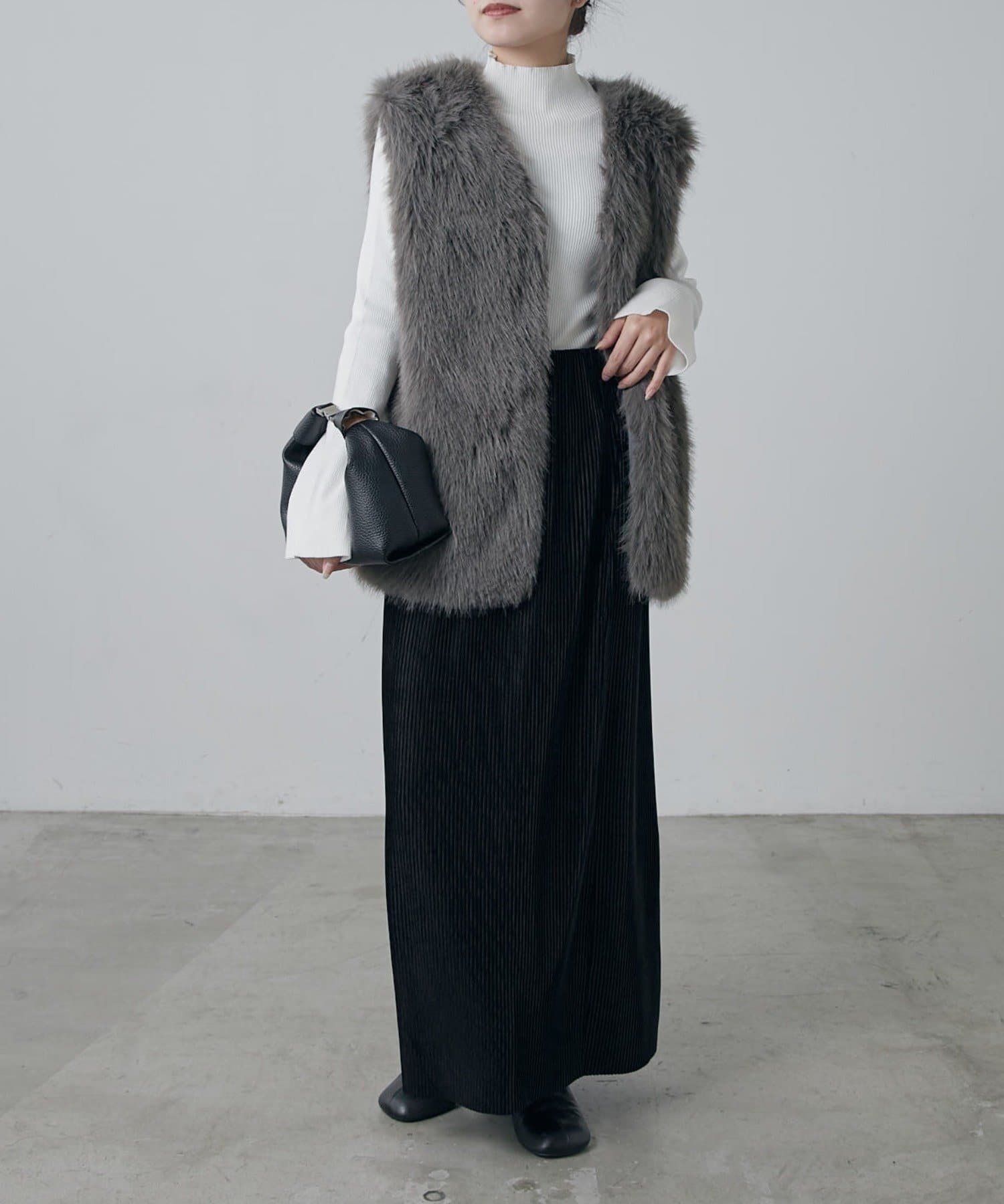 冬はシンプルなニットと合わせてもプリーツンデザインを生かし、コーデが完成します◎