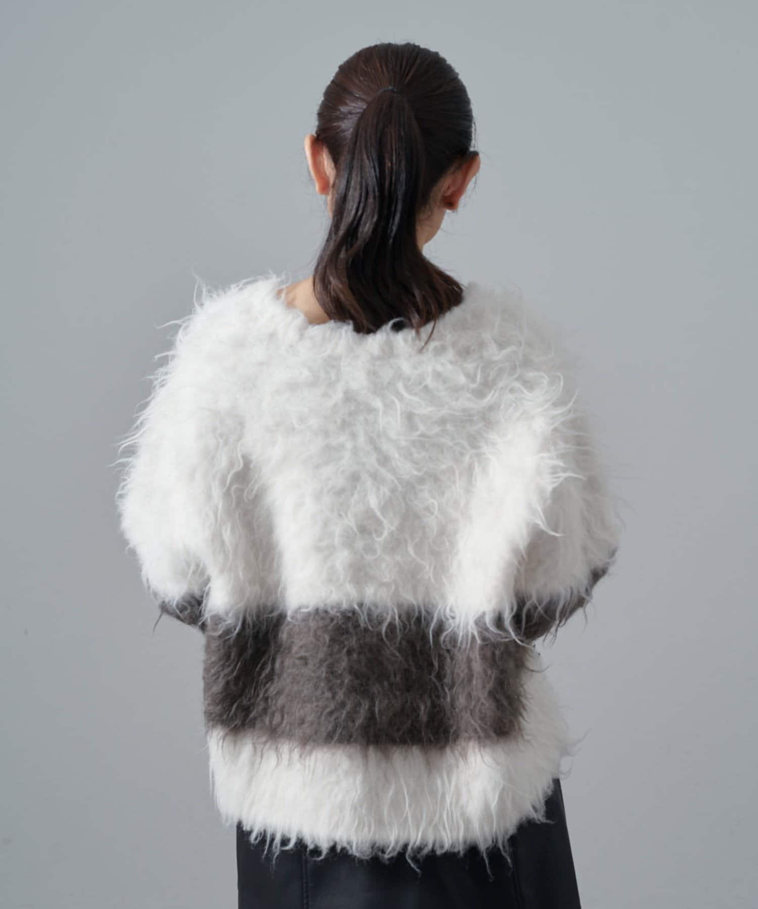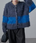 配色シャギーカーディガン