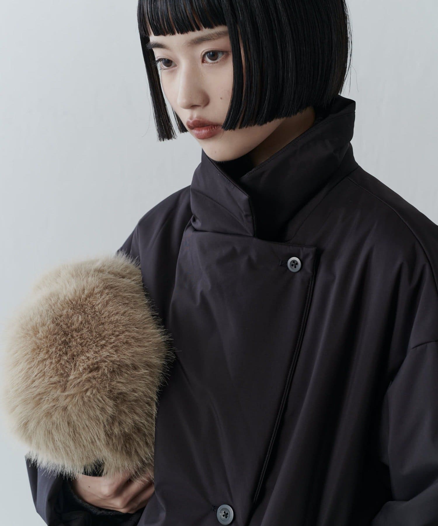 モダンなムード感もありながら大人すぎずカジュアルな雰囲気に仕上げたスタンドコート。