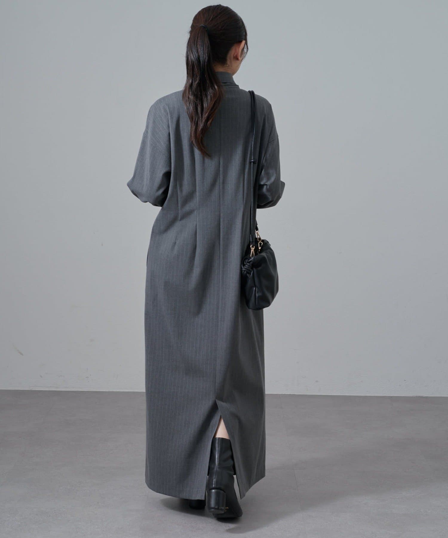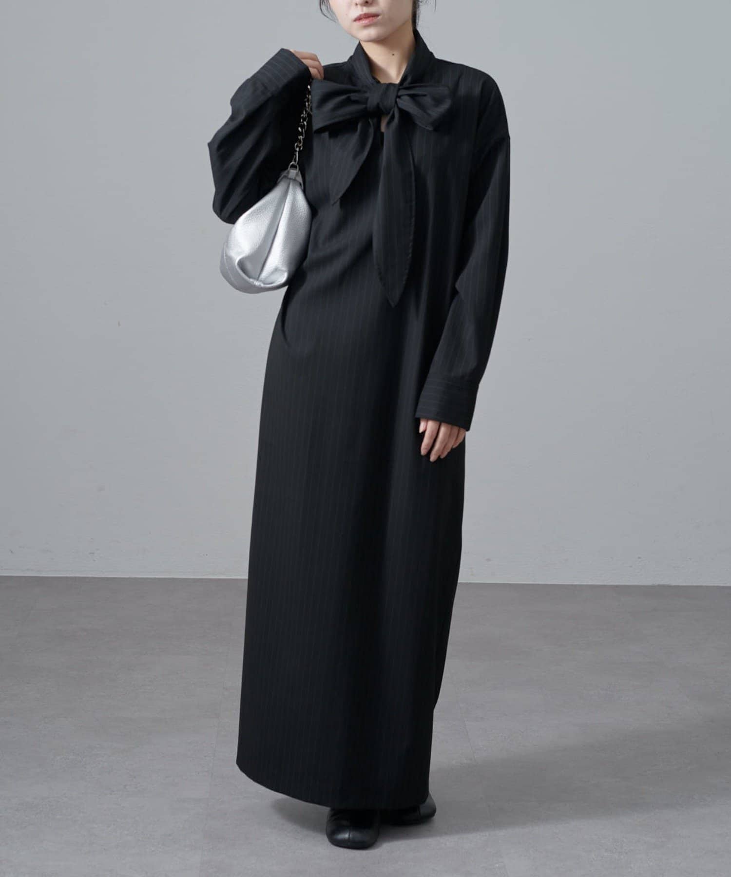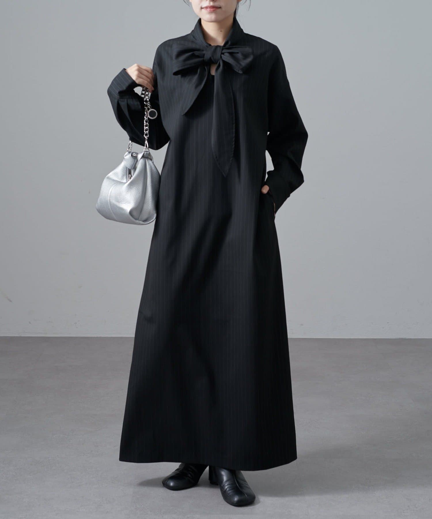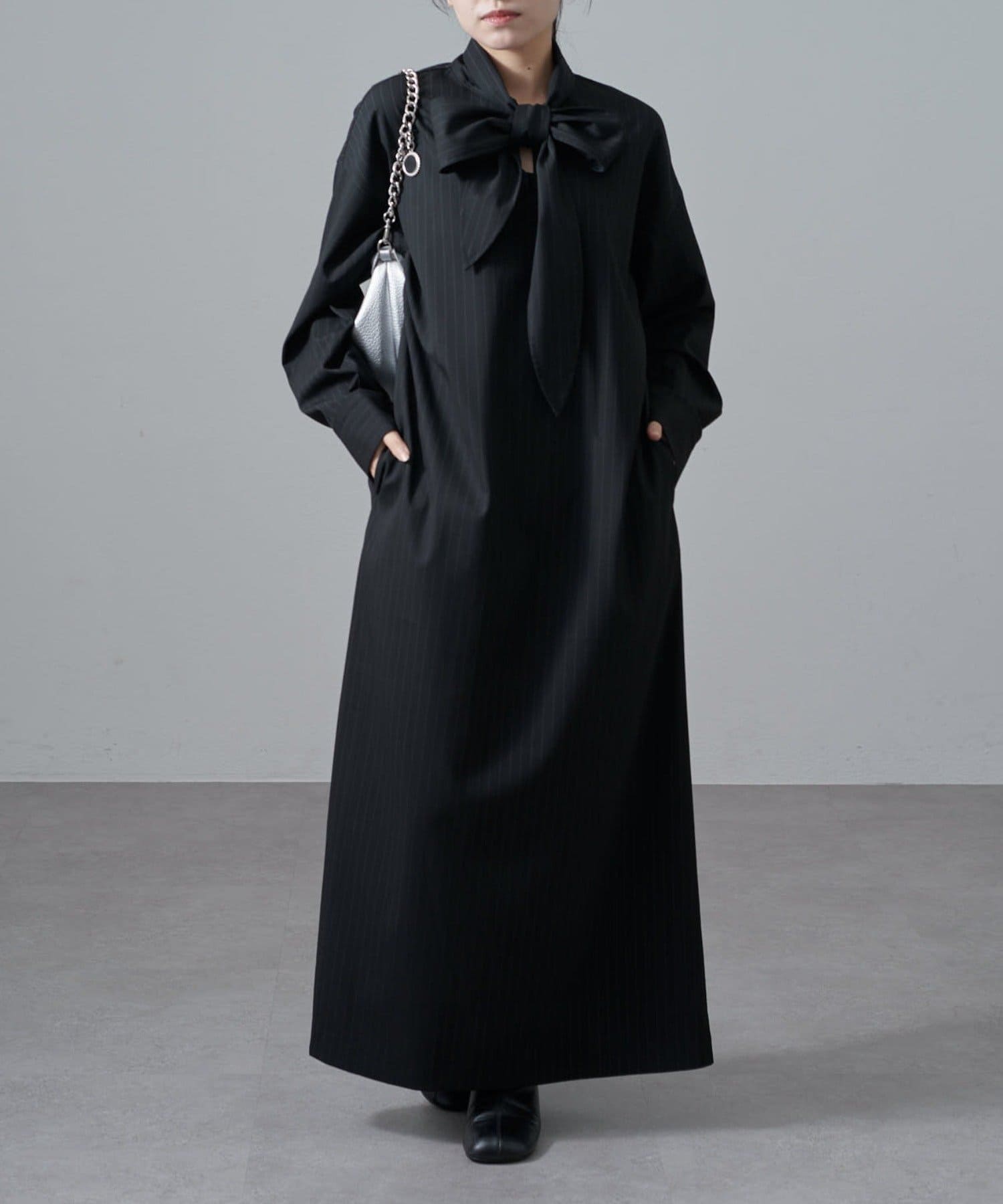 ハンサムな雰囲気で着られるボウタイ付きシャツワンピ♡