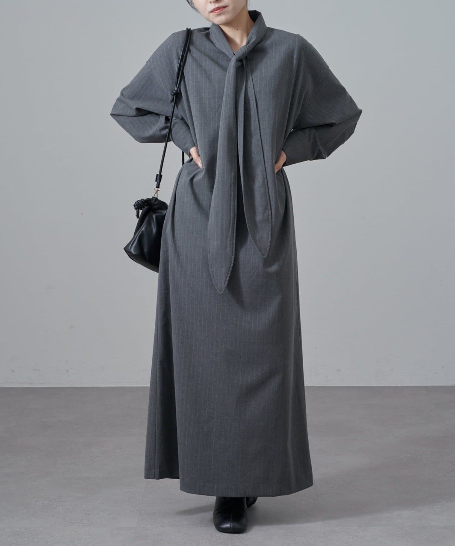 ハンサムな雰囲気で着られるボウタイ付きシャツワンピ♡