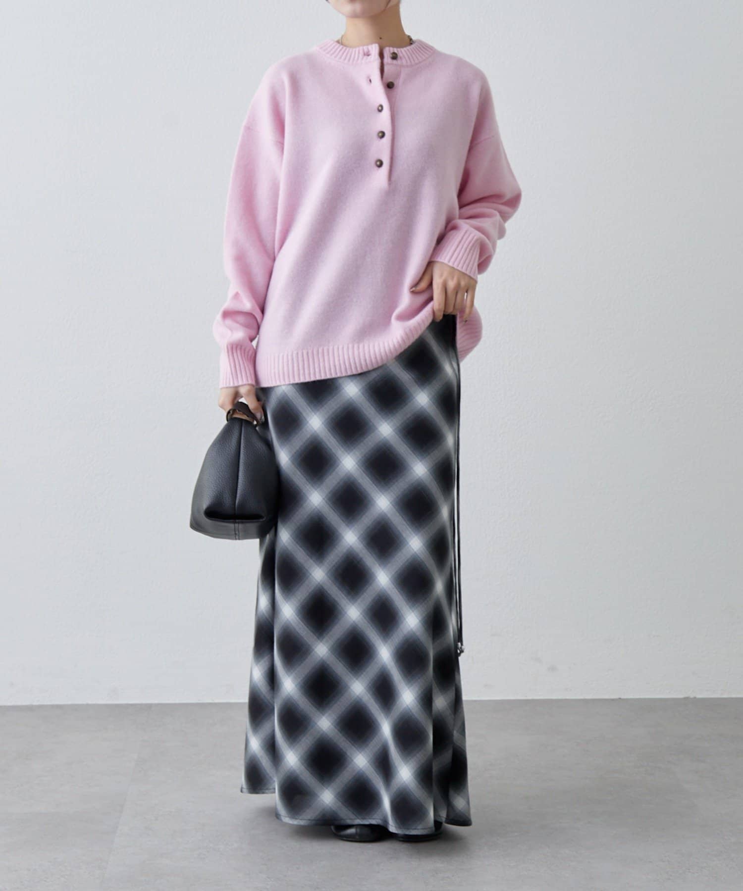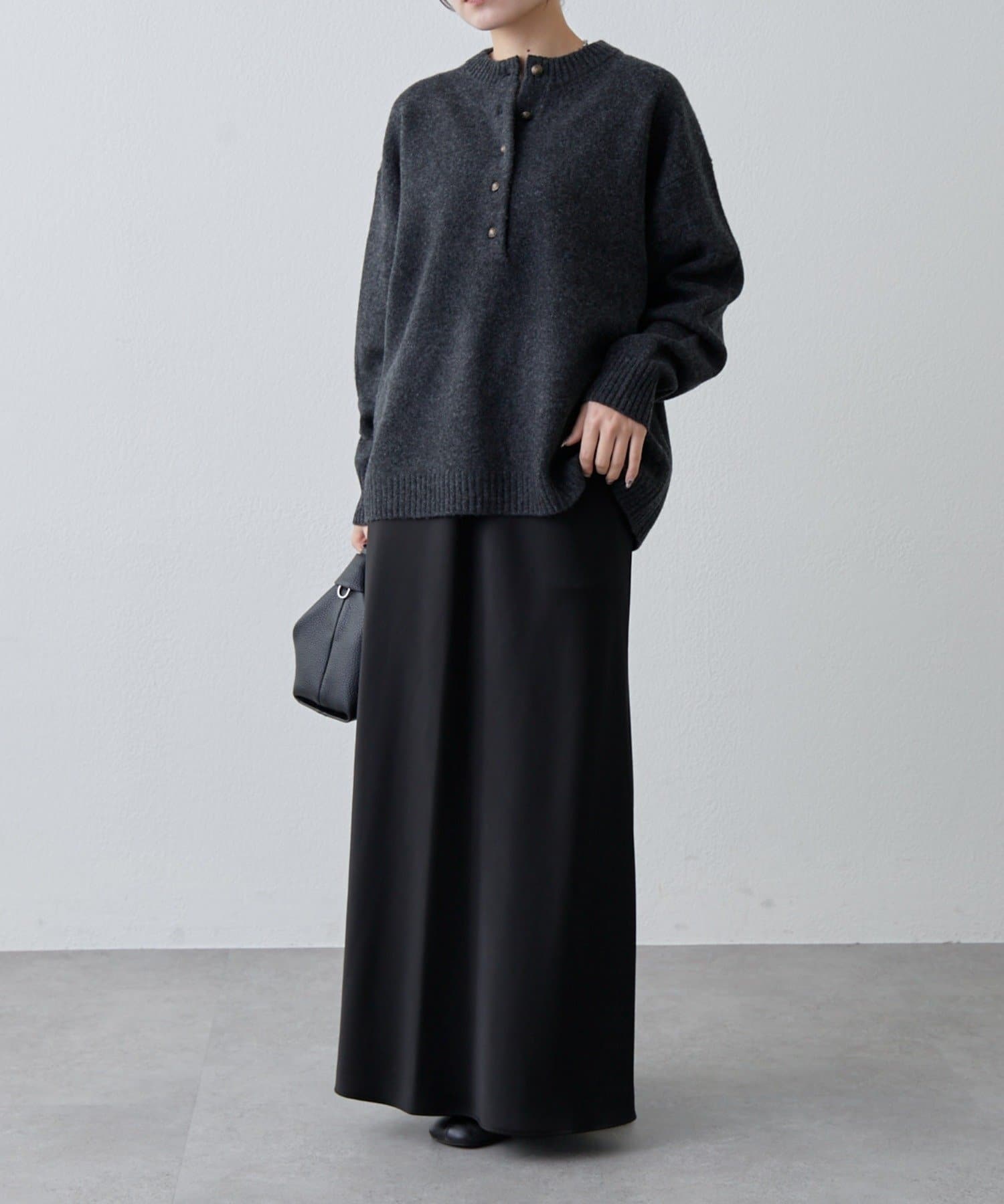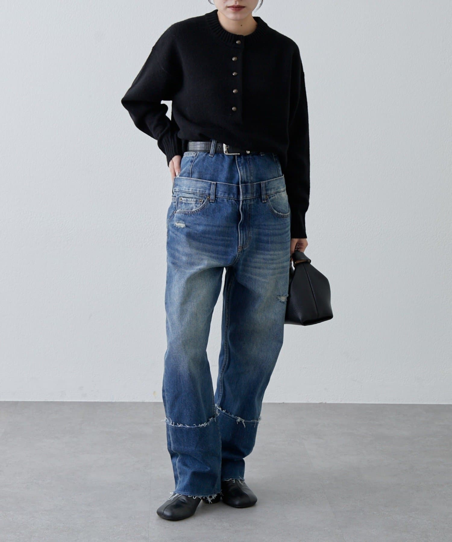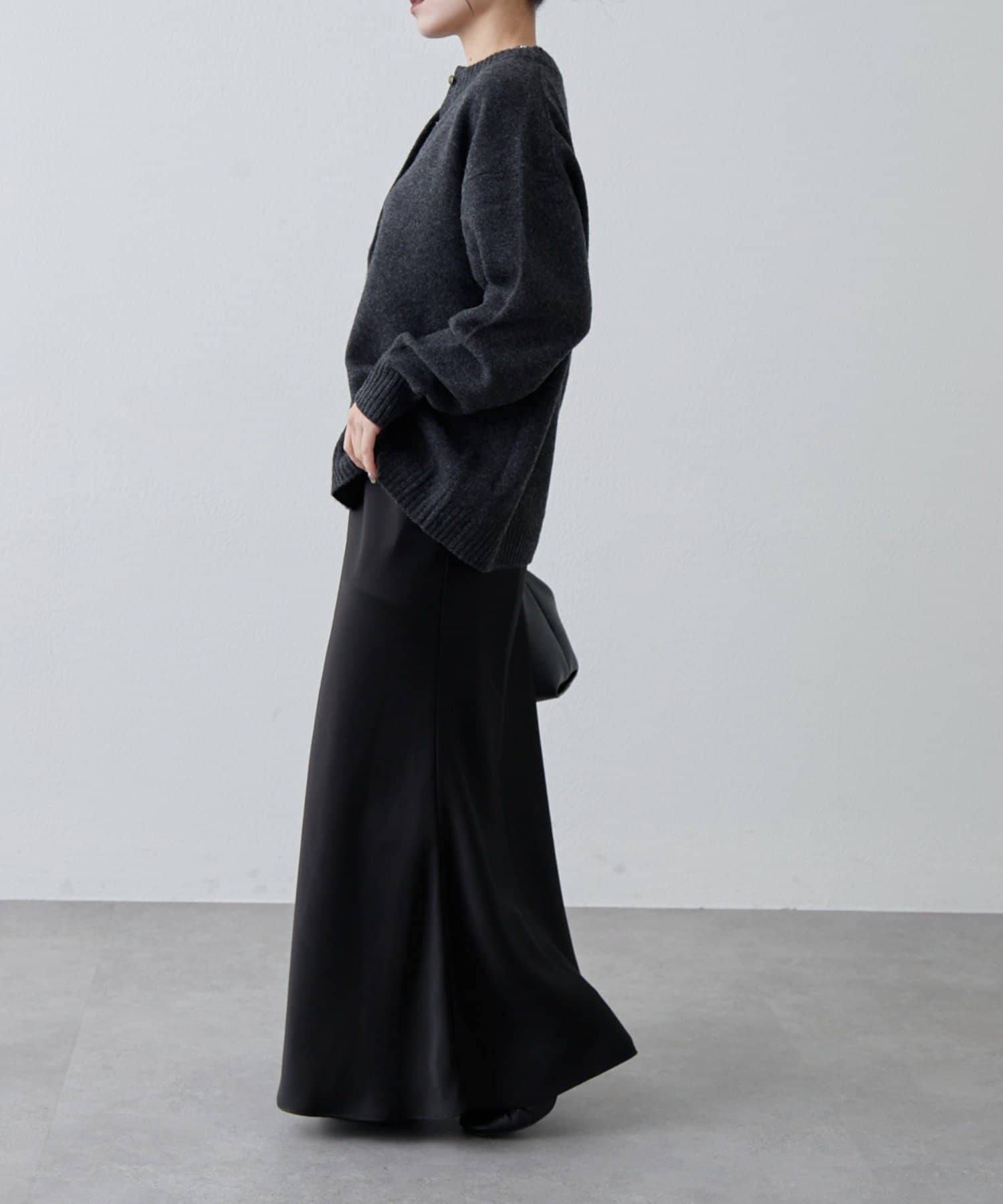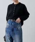 タイトスカートやスラックスと合わせれば、ボタンデザインとゴールドボタンが引き立ち、キレイ目、モードな雰囲気を演出。