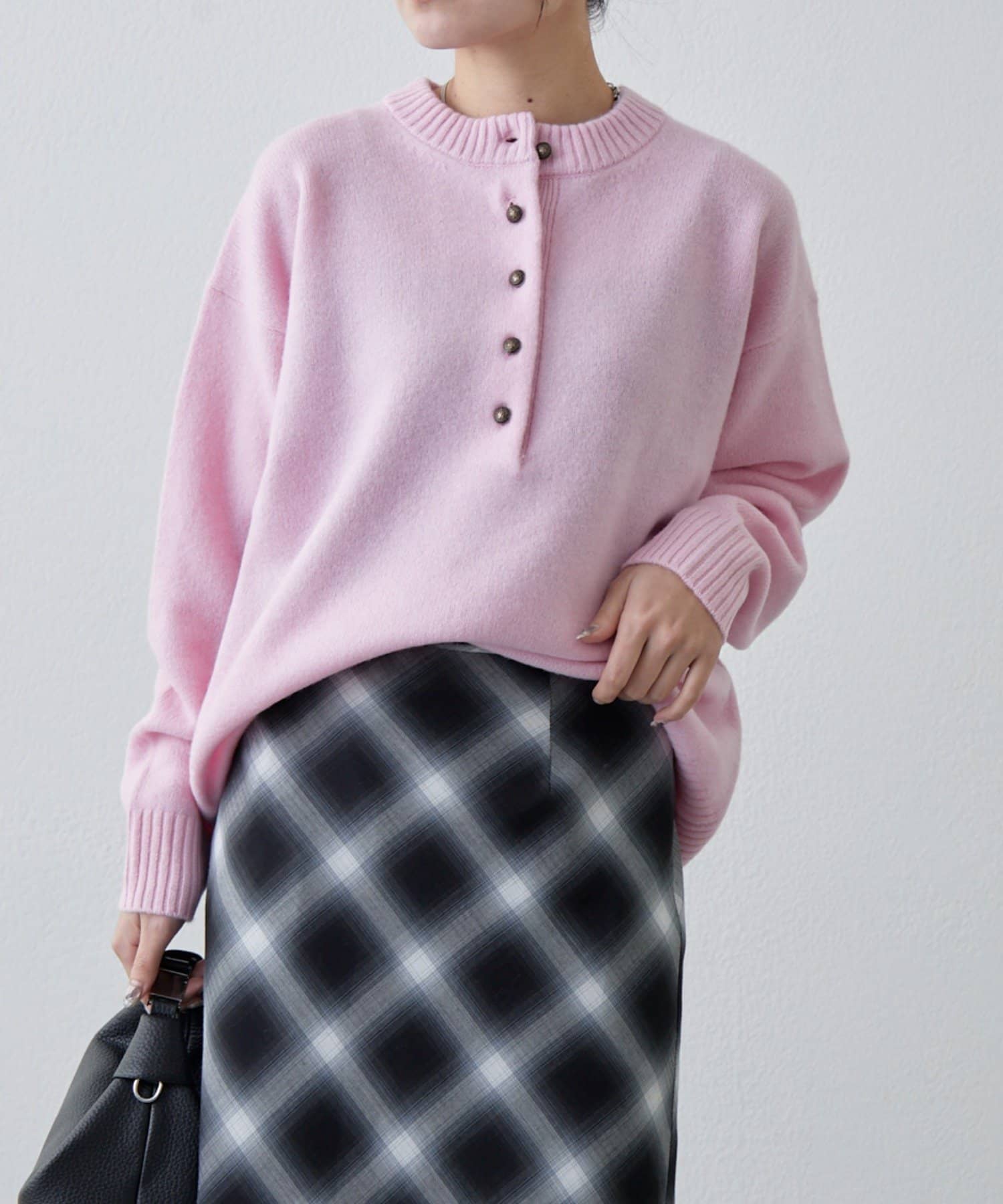 ふんわりとした毛足感のある素材を使用したニットプルオーバー。