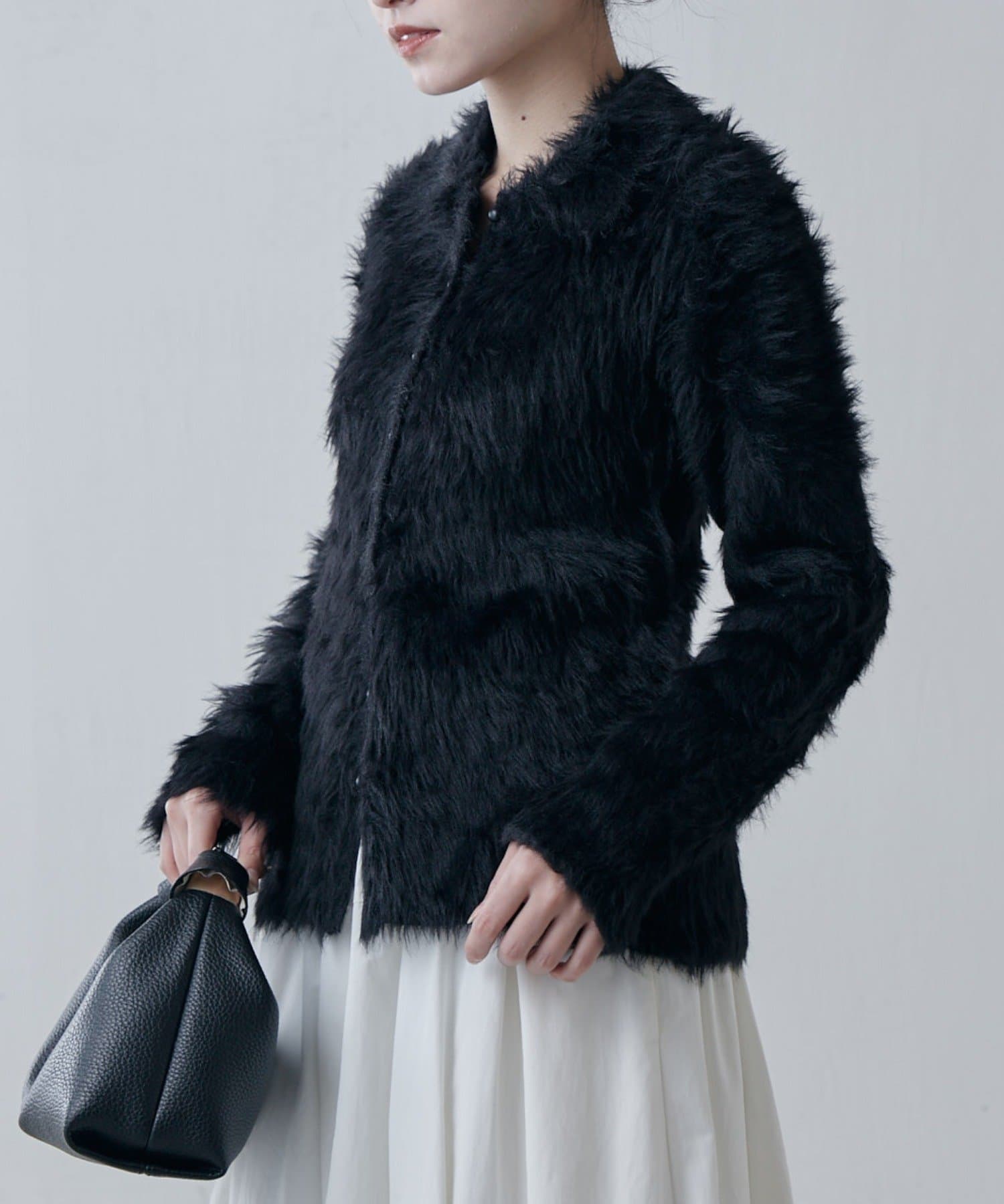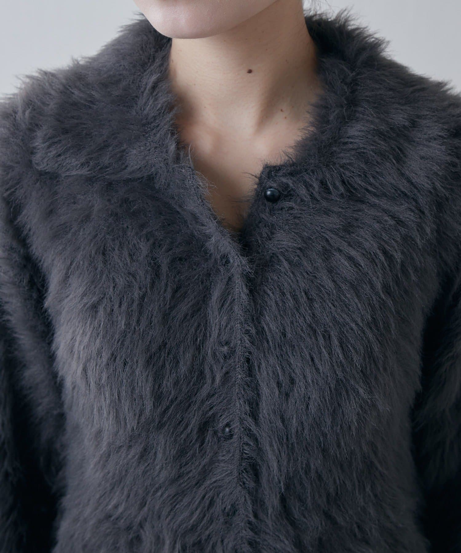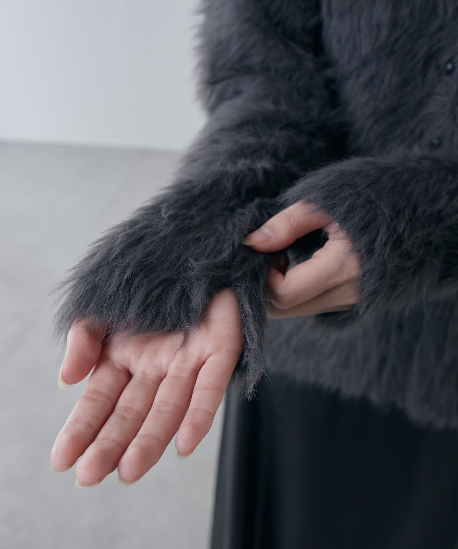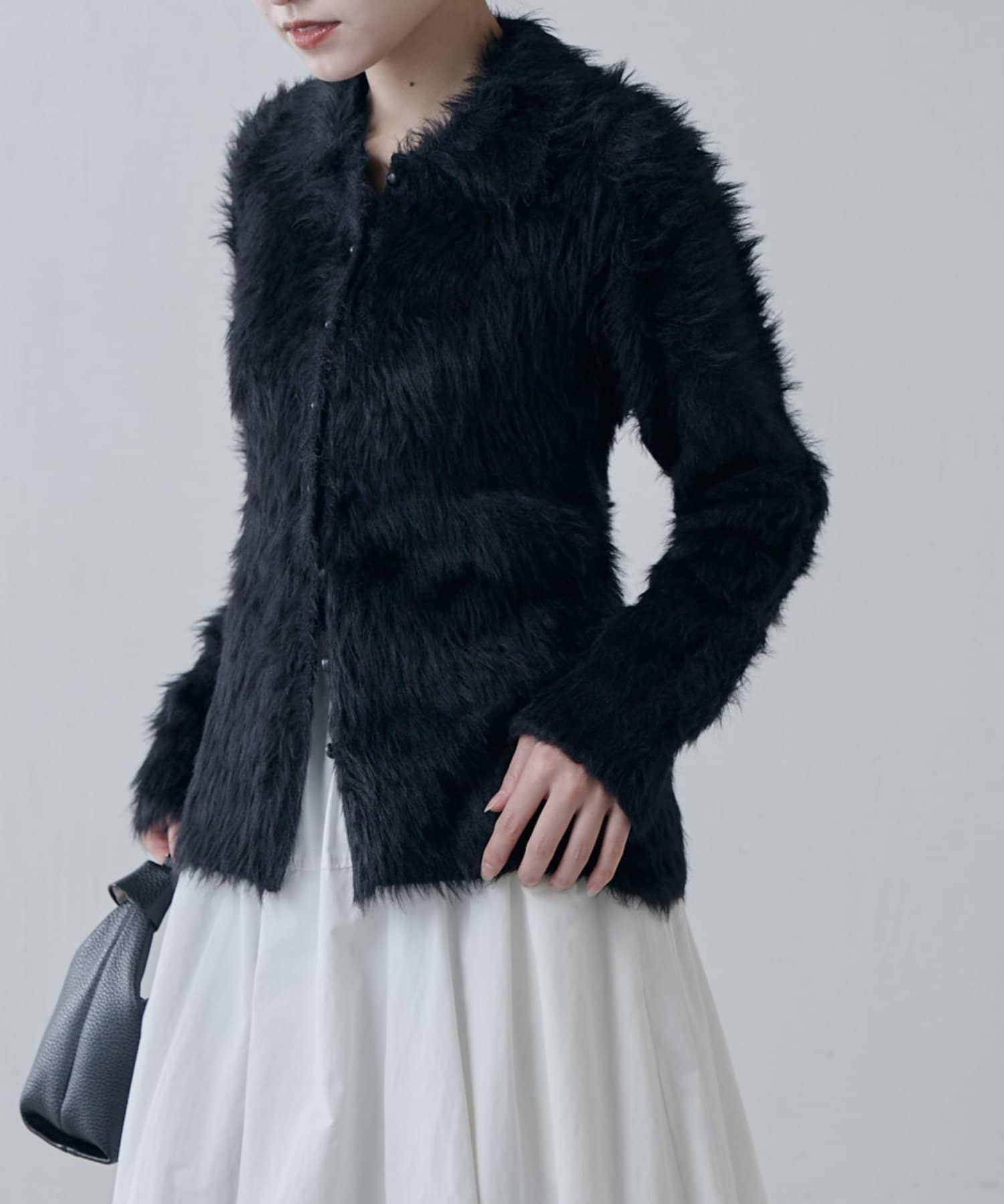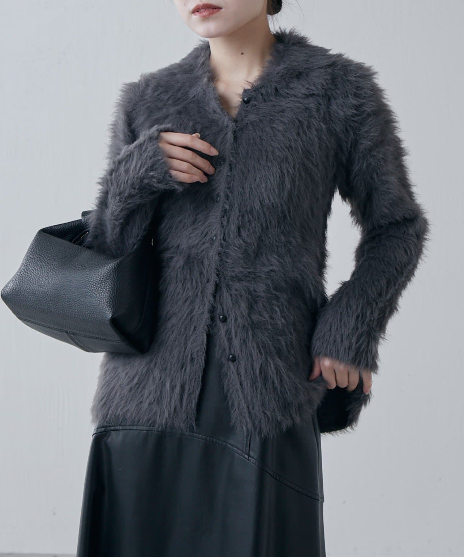 【スタイルアップ◎】シャギー衿付きニットカーディガン