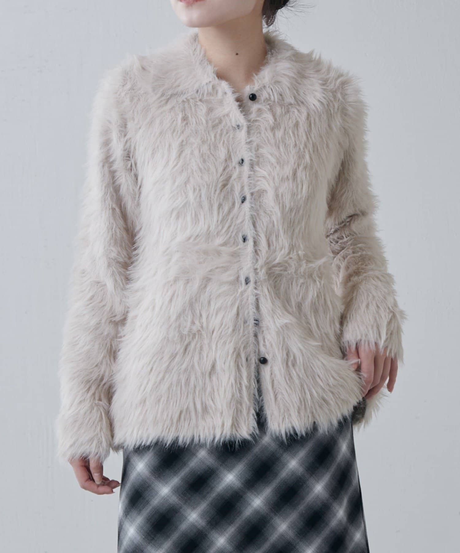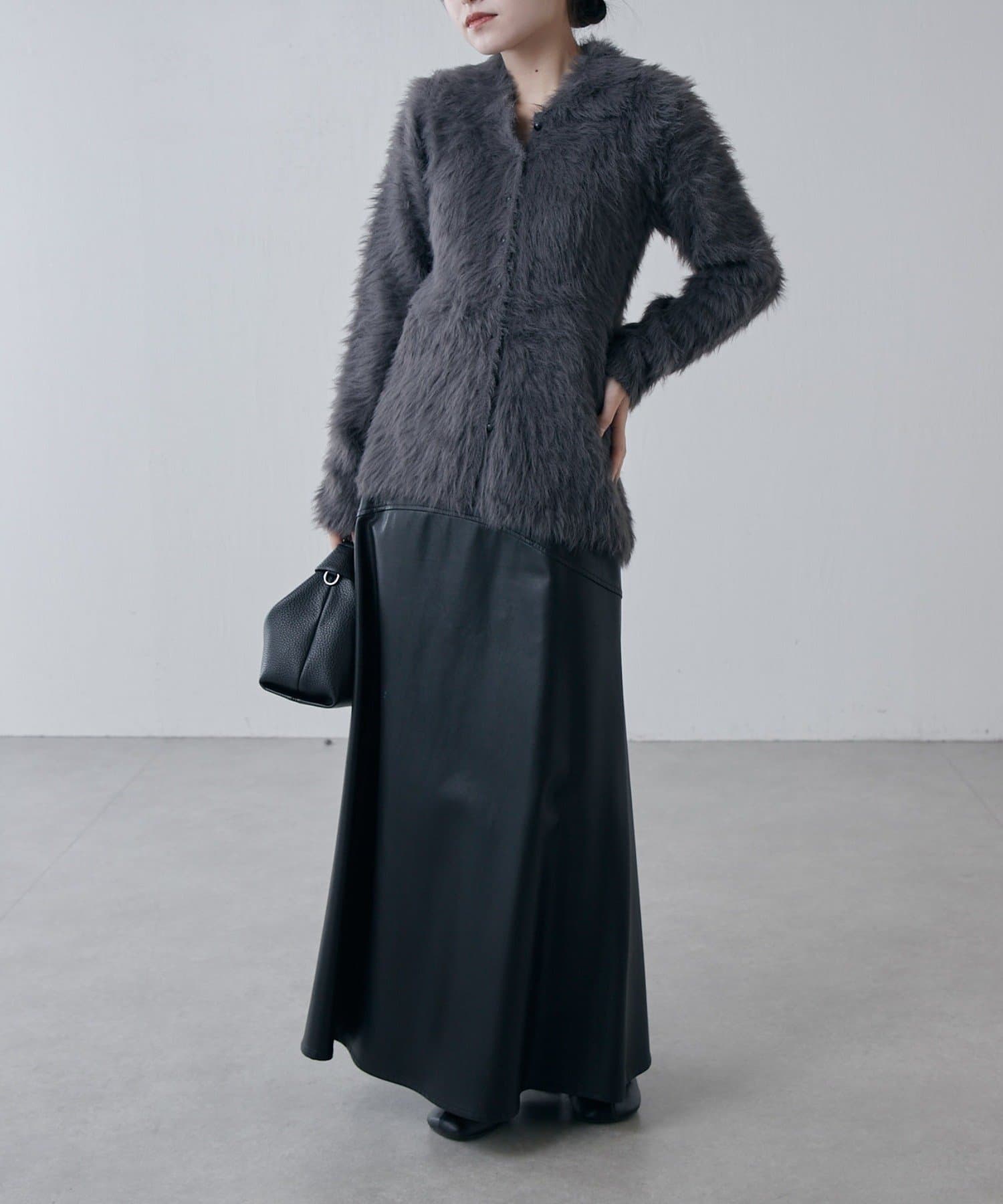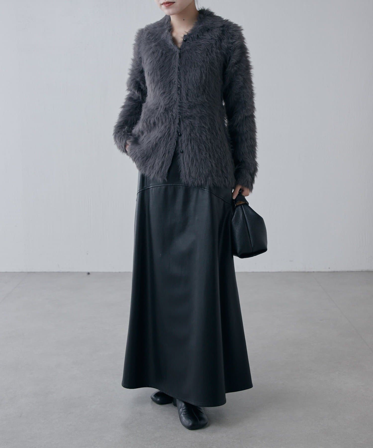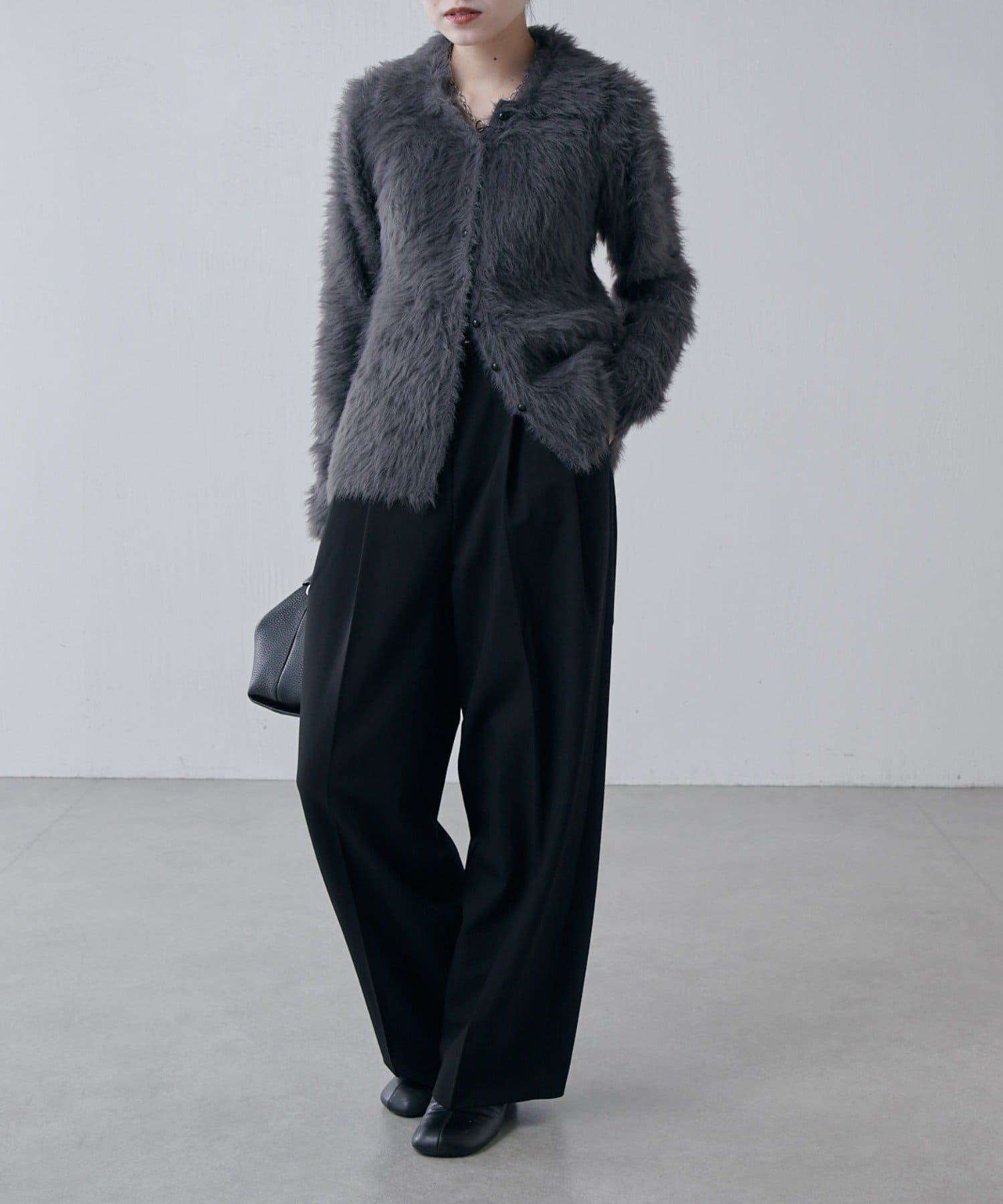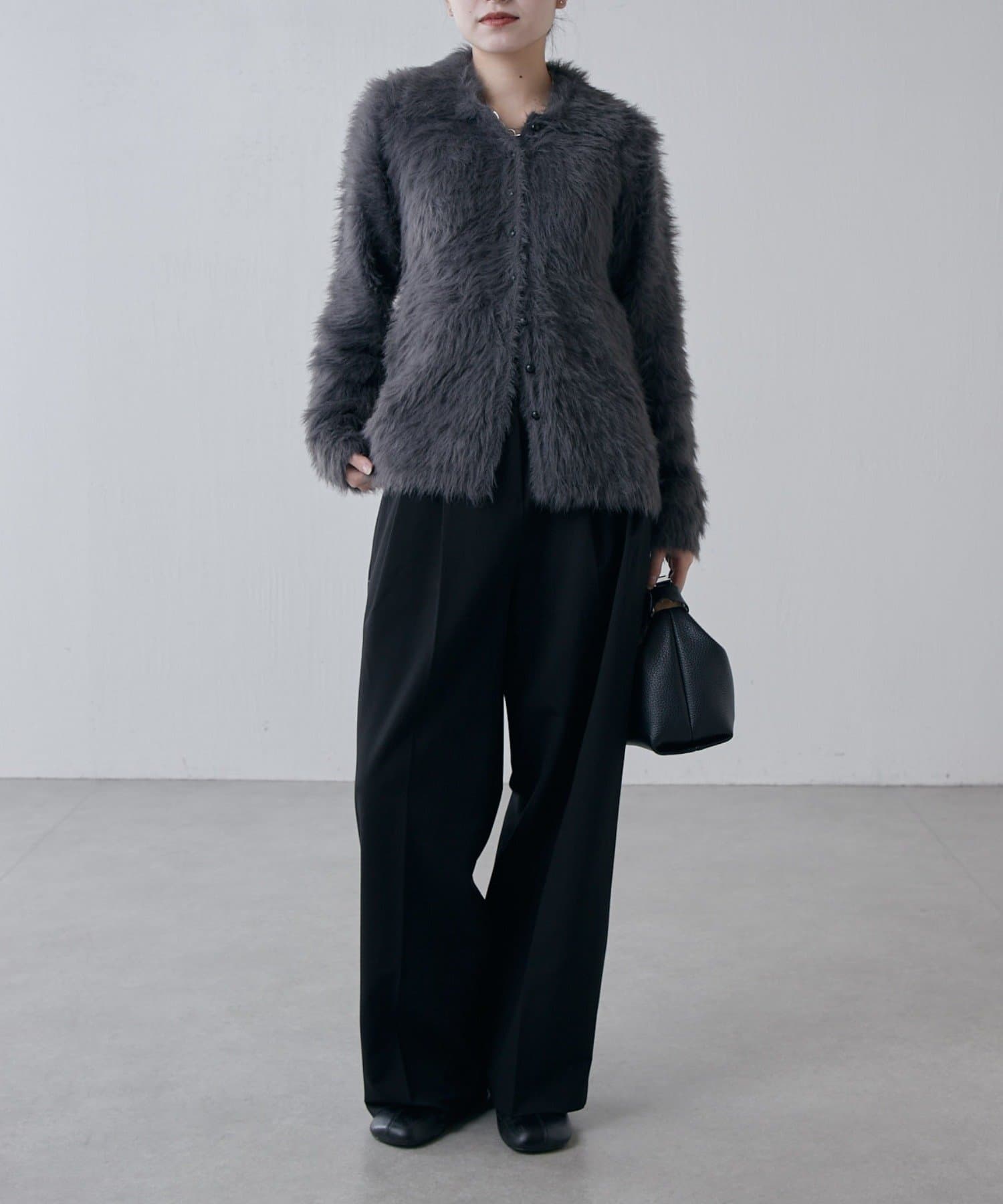 【スタイルアップ◎】シャギー衿付きニットカーディガン