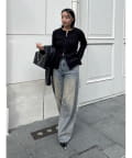 サイドに切替デザインポイントがあるので、コンパクトなサイジングのトップスを合わせたり、タックインをしたコーディネートがおすすめ。
