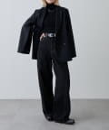 サイドに切替デザインポイントがあるので、コンパクトなサイジングのトップスを合わせたり、タックインをしたコーディネートがおすすめ。
