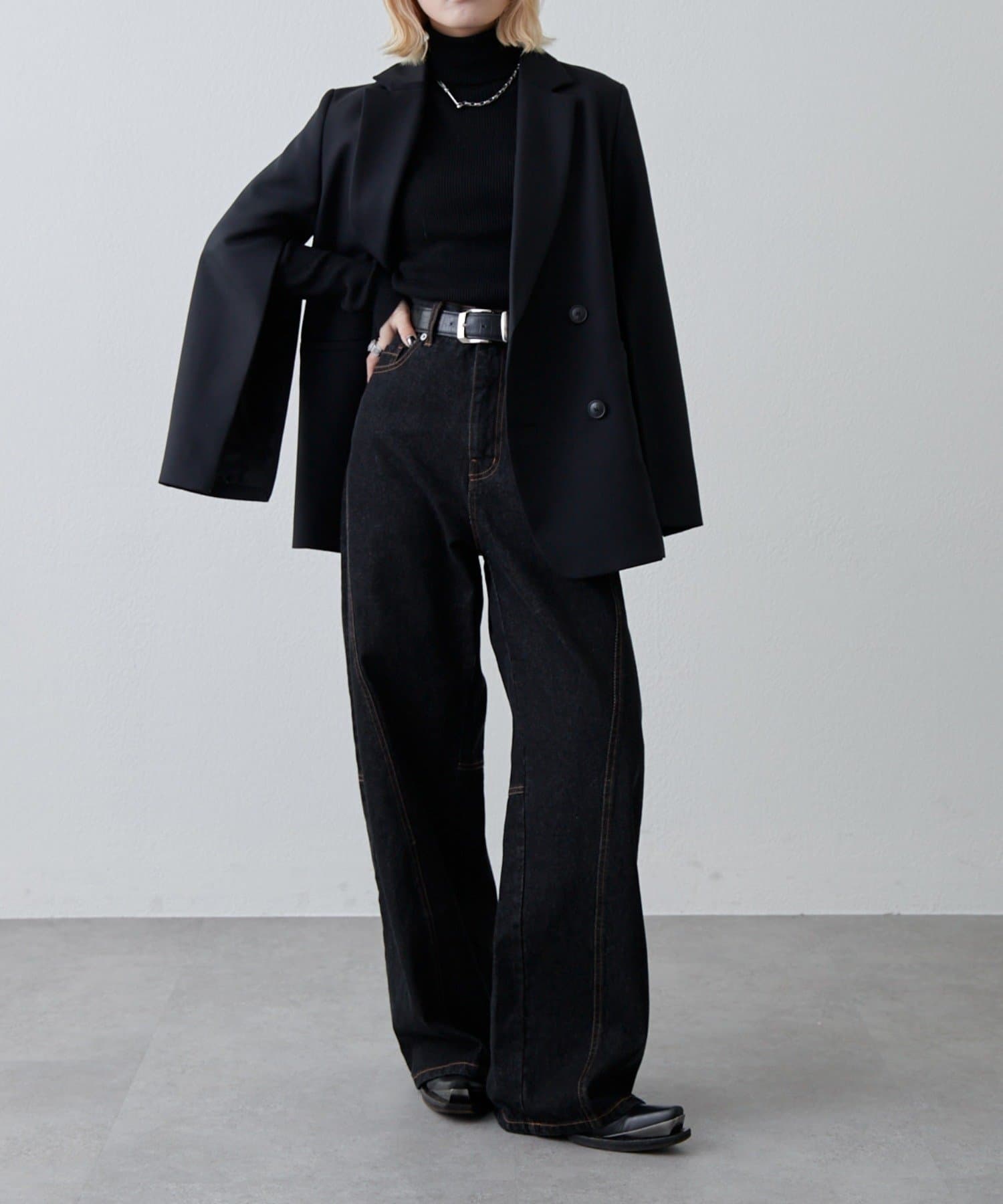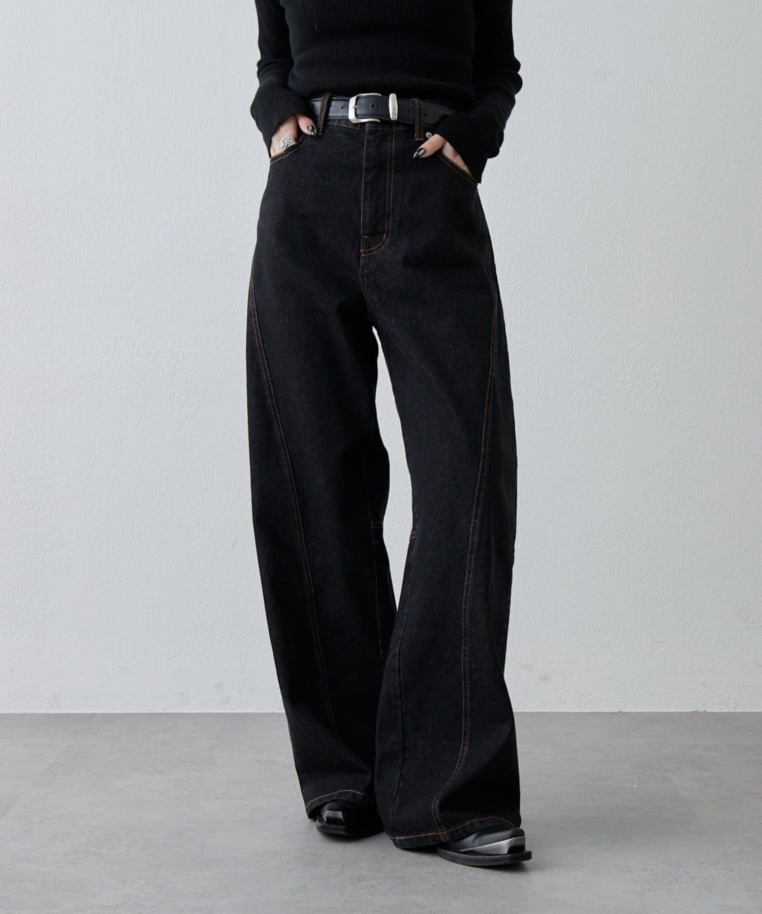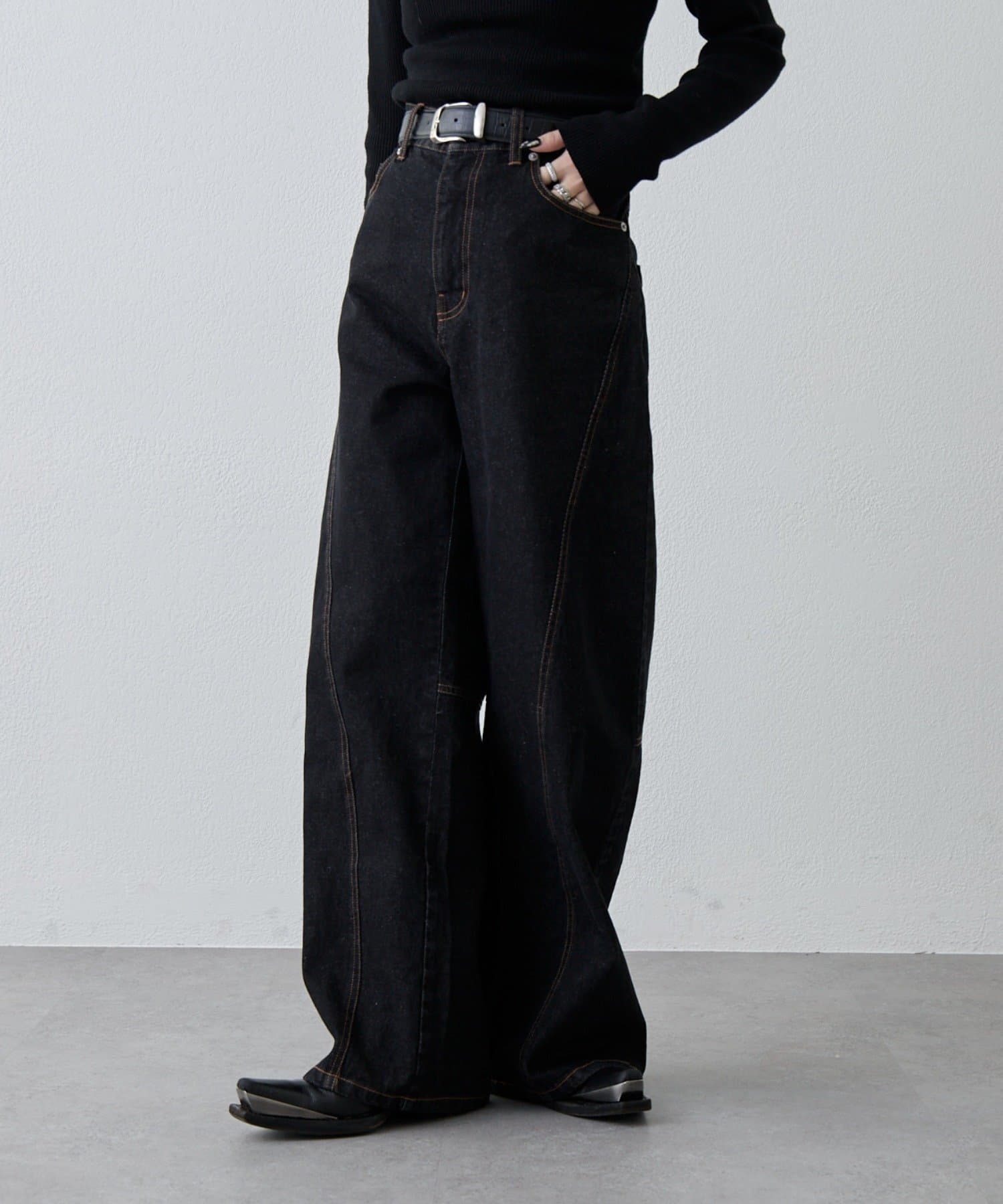 切替デザインワイドデニムパンツ
