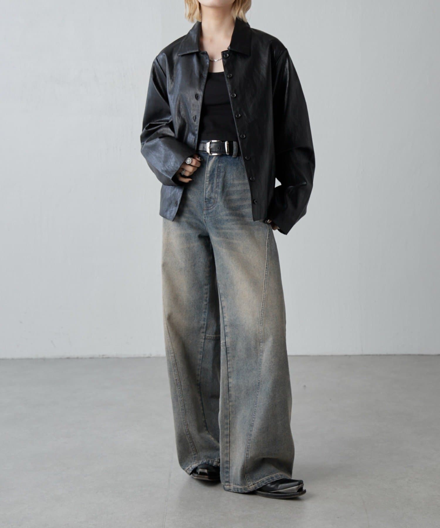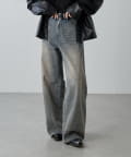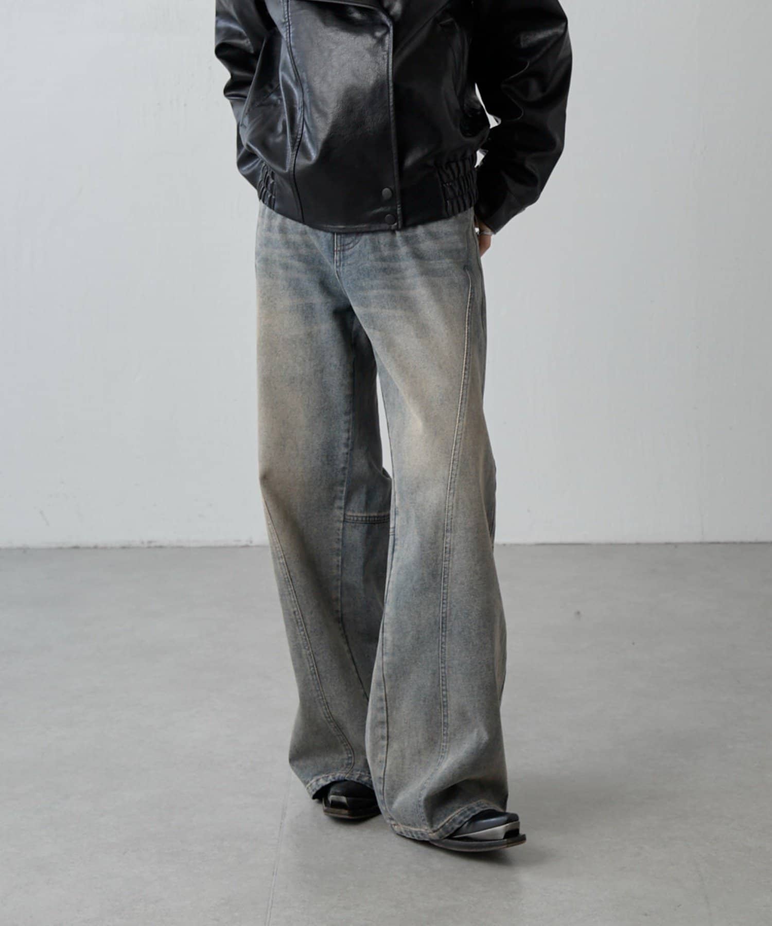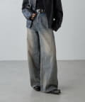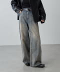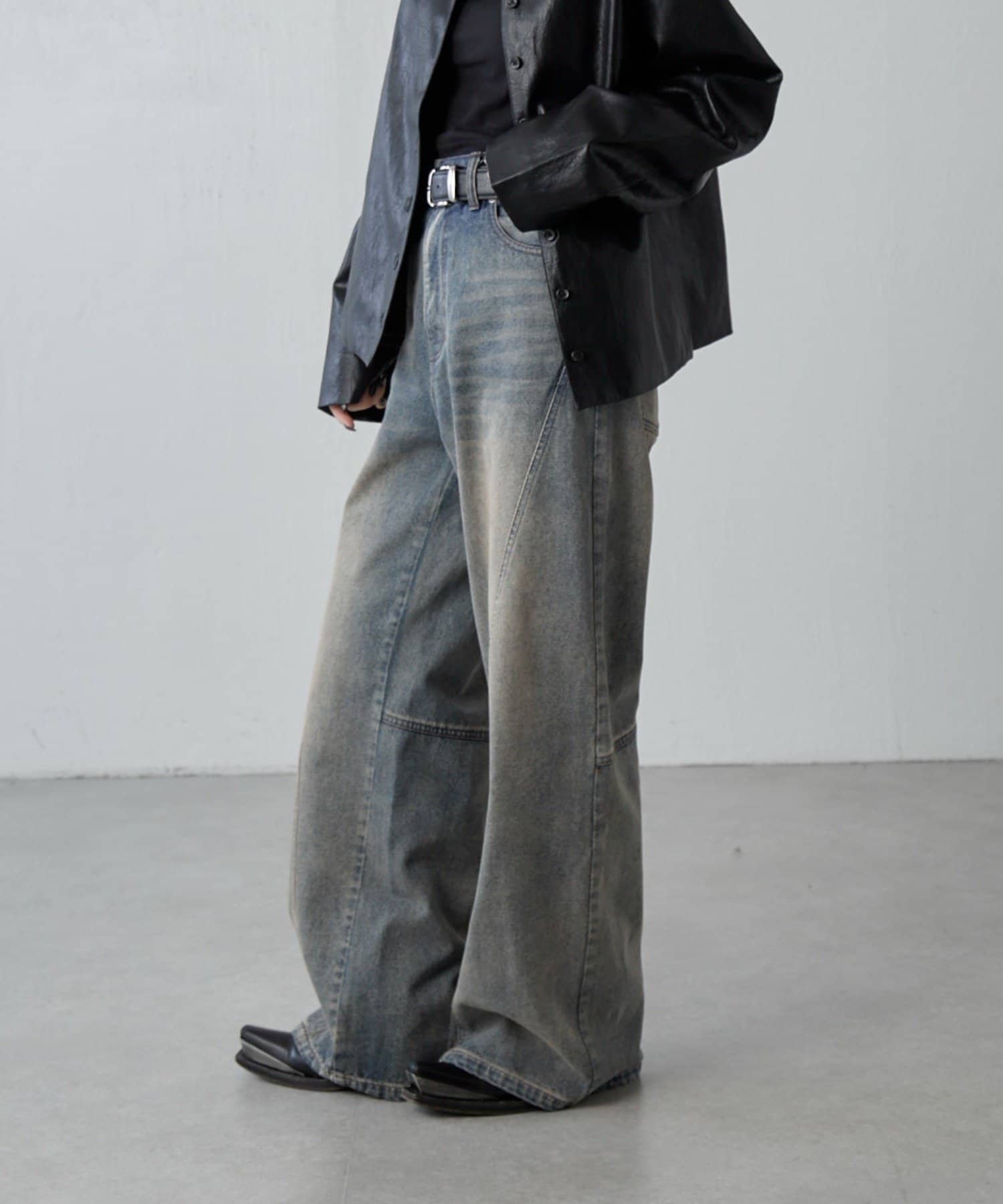ルーズ感のあるシルエットと絶妙なカラーが魅力。切替デザインでバックシルエットも映えるワイドデニム