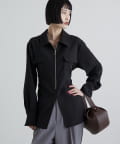 ・上品なポリエステル100%素材で仕立てた、なめらかな表面感のZIPシャツ。