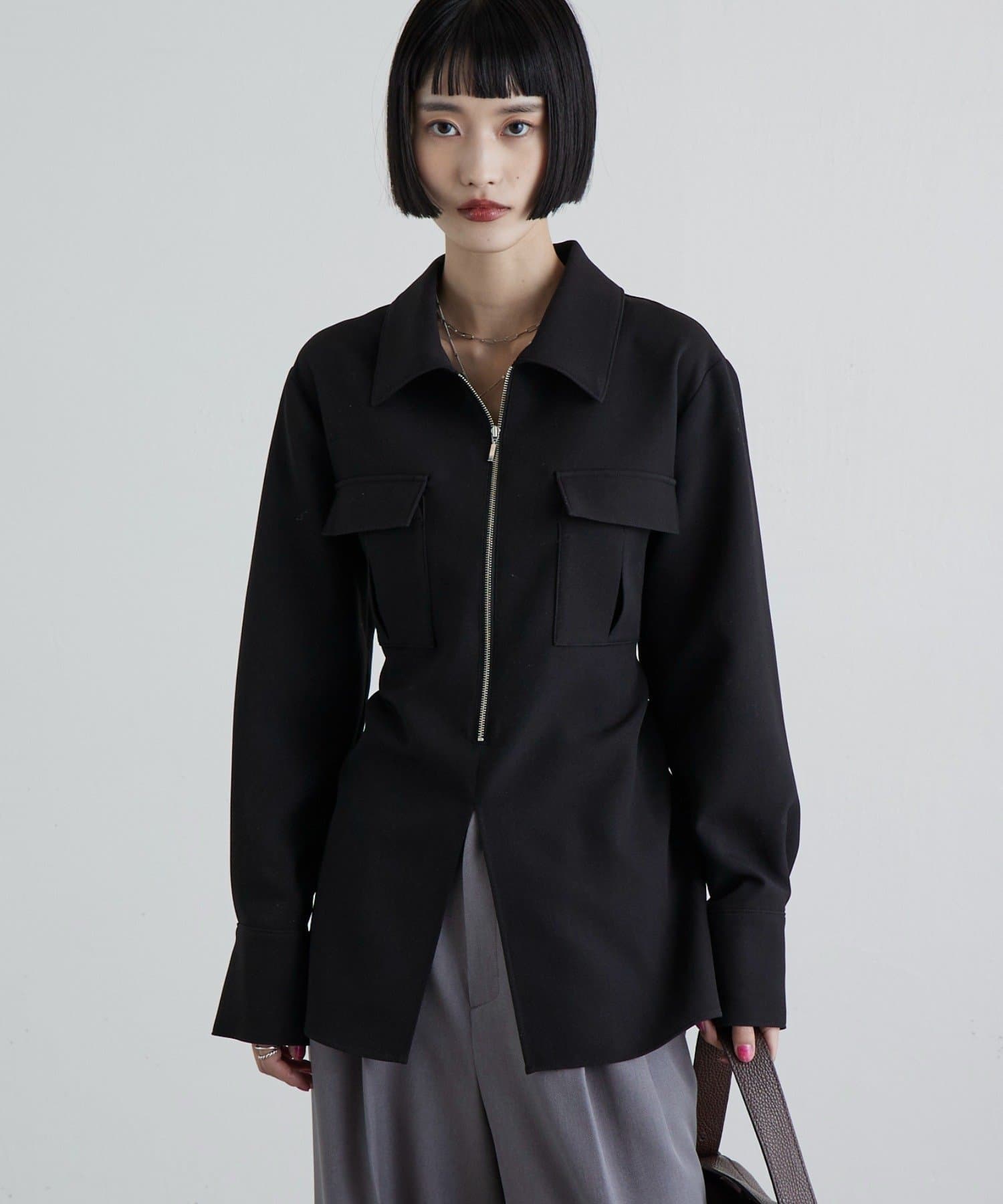 ・首元から胸元にかけてのジップと、フロントのポケットが存在感を引き立たせてくれるデザイン◎