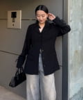 季節の変わり目の羽織りとしてはもちろん、フロントを閉じてトップスとして着用するのもおすすめ。