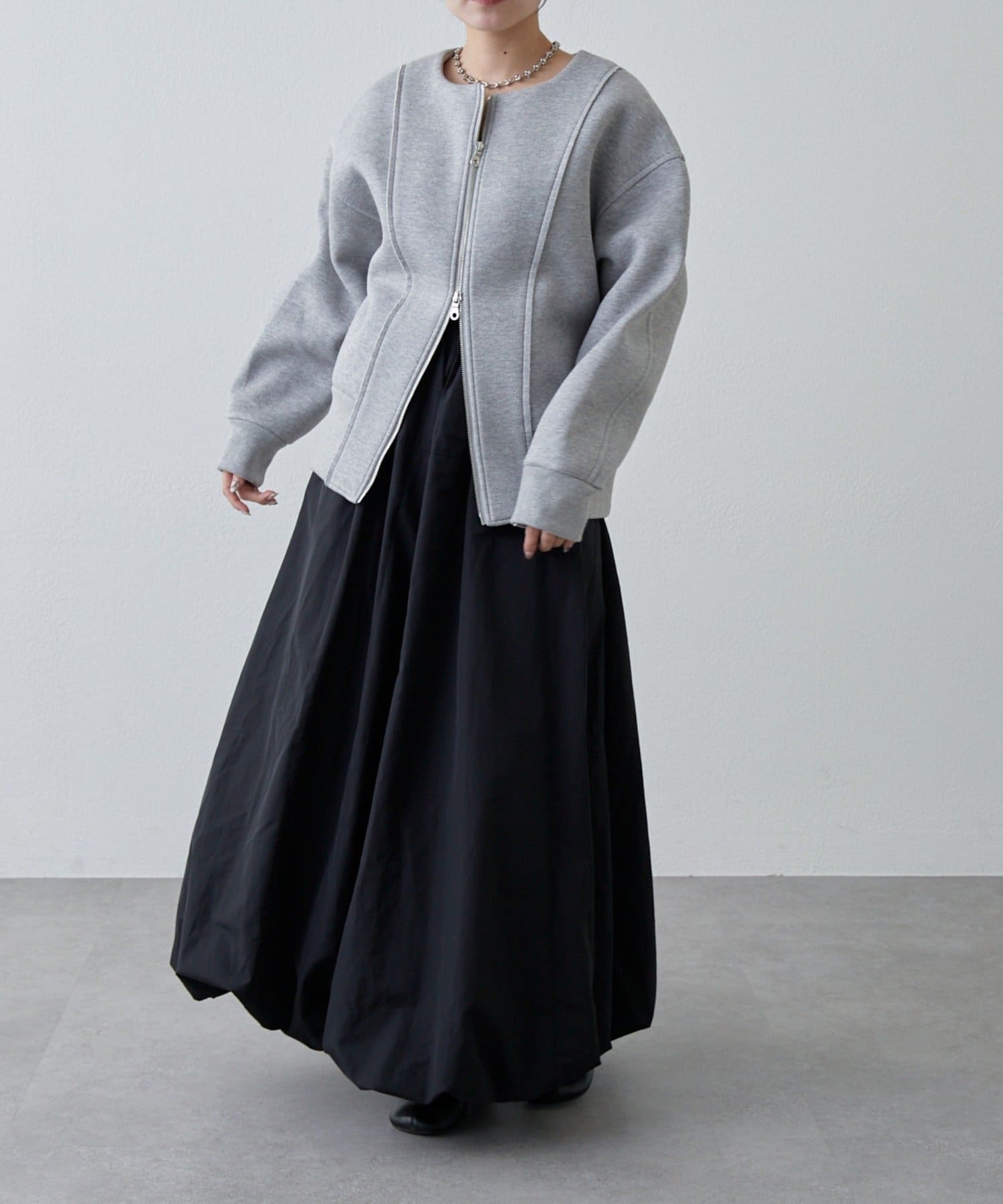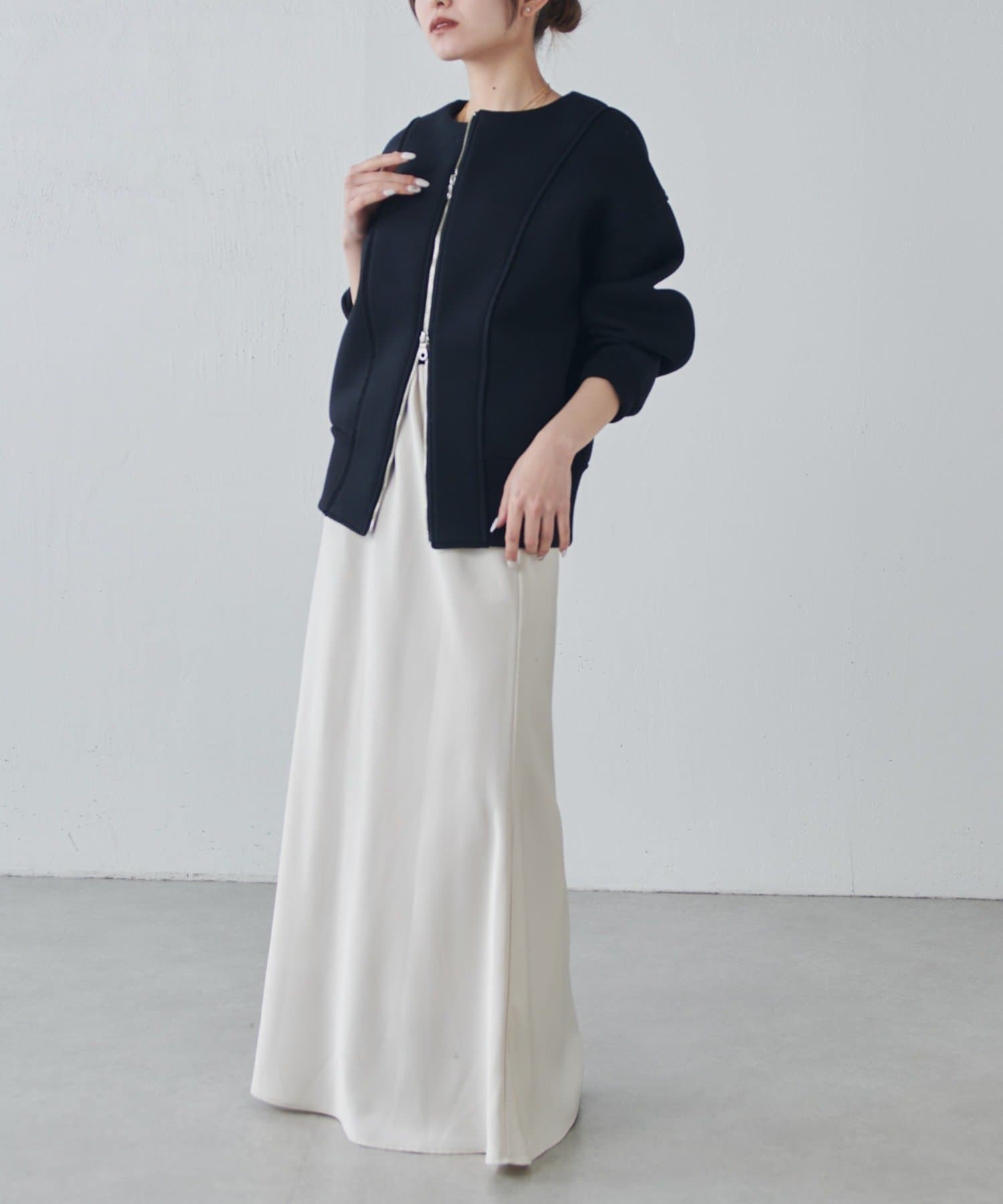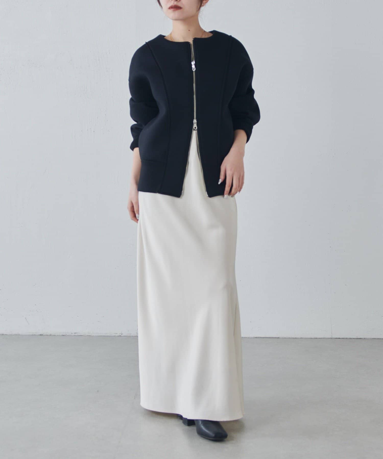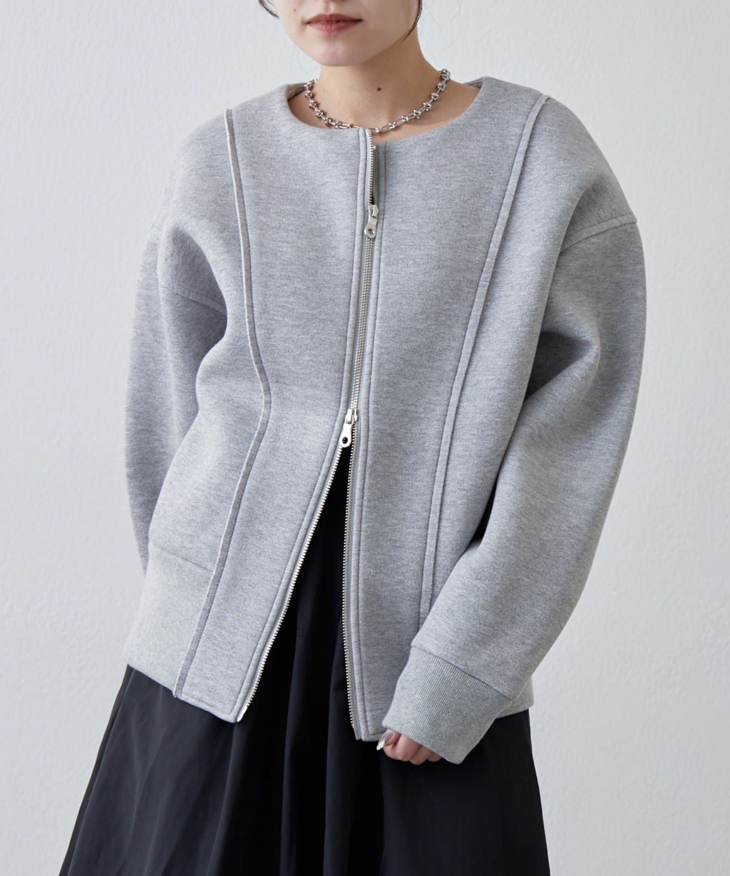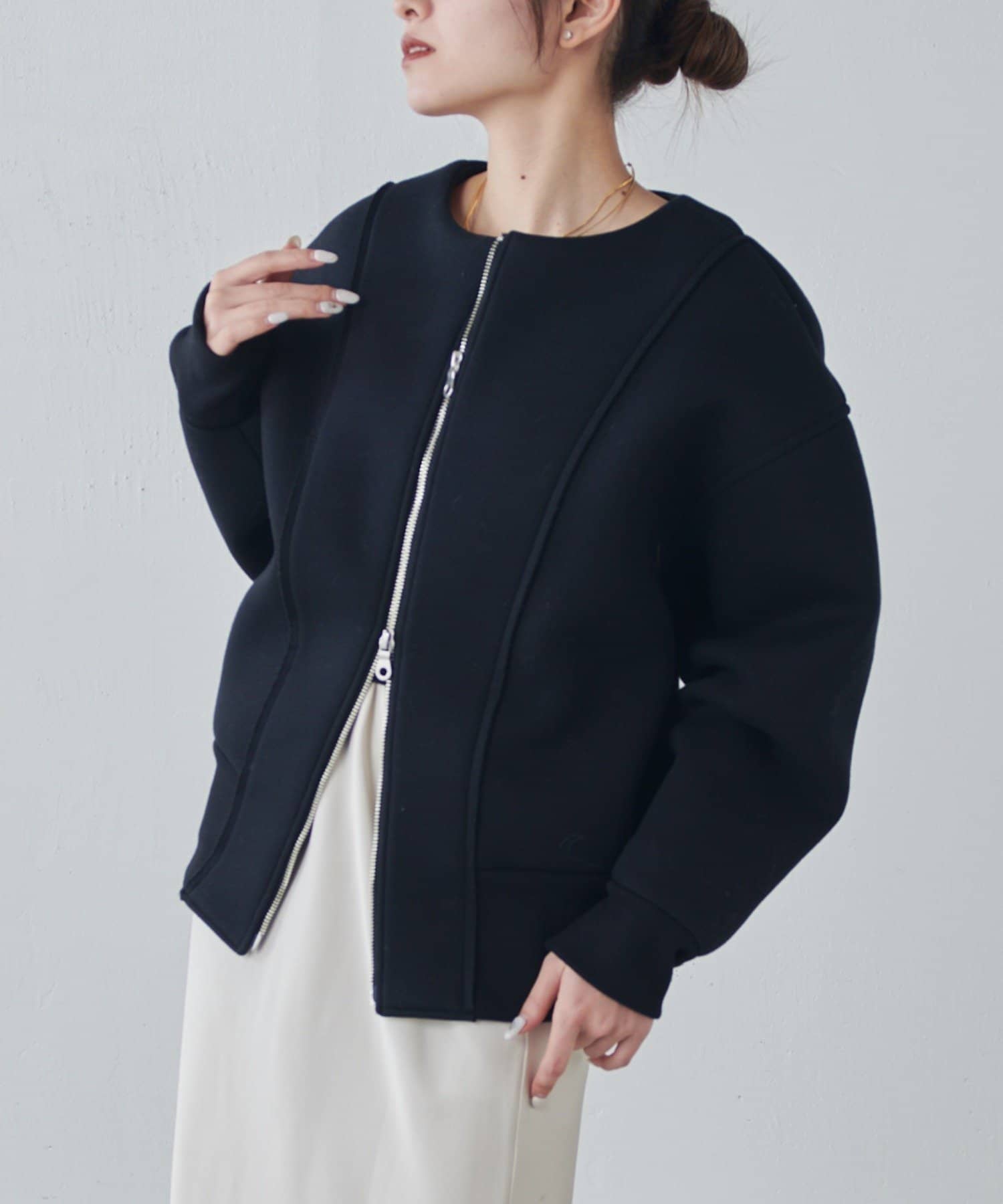 ・フロントのダブルジップは開け方次第で色んな着こなしが楽しめます。